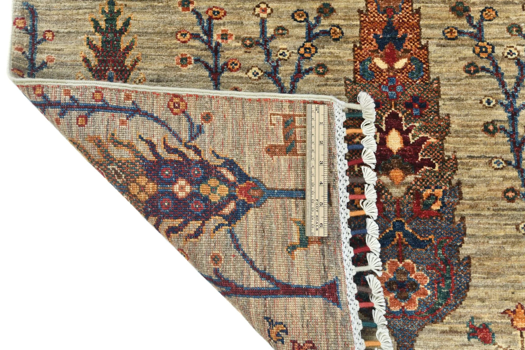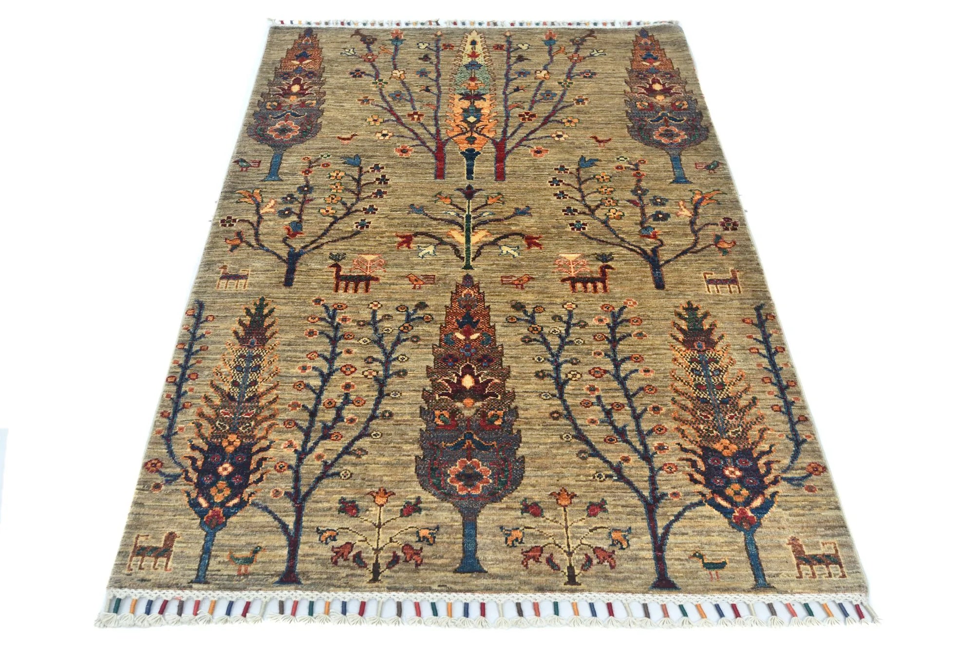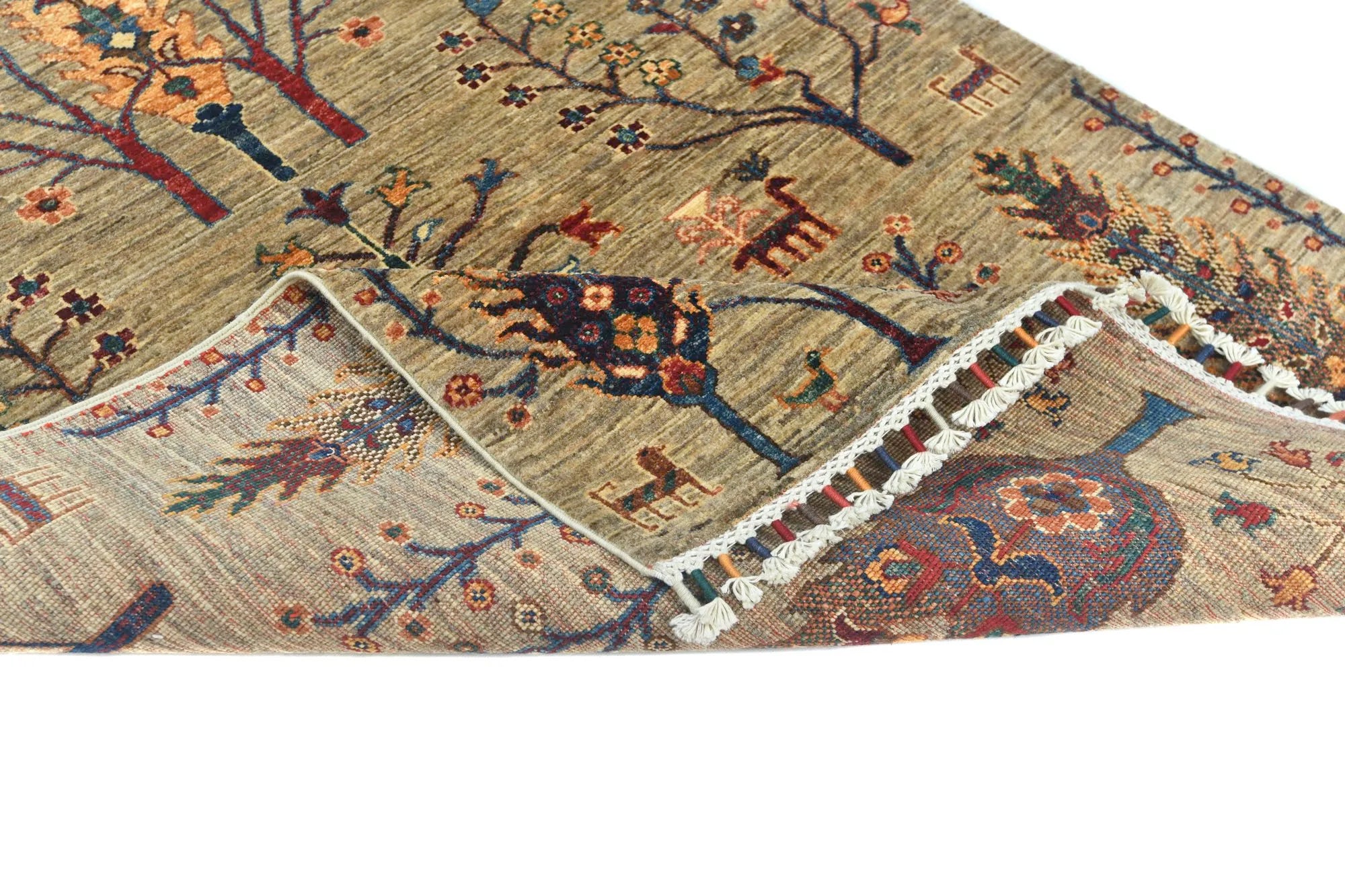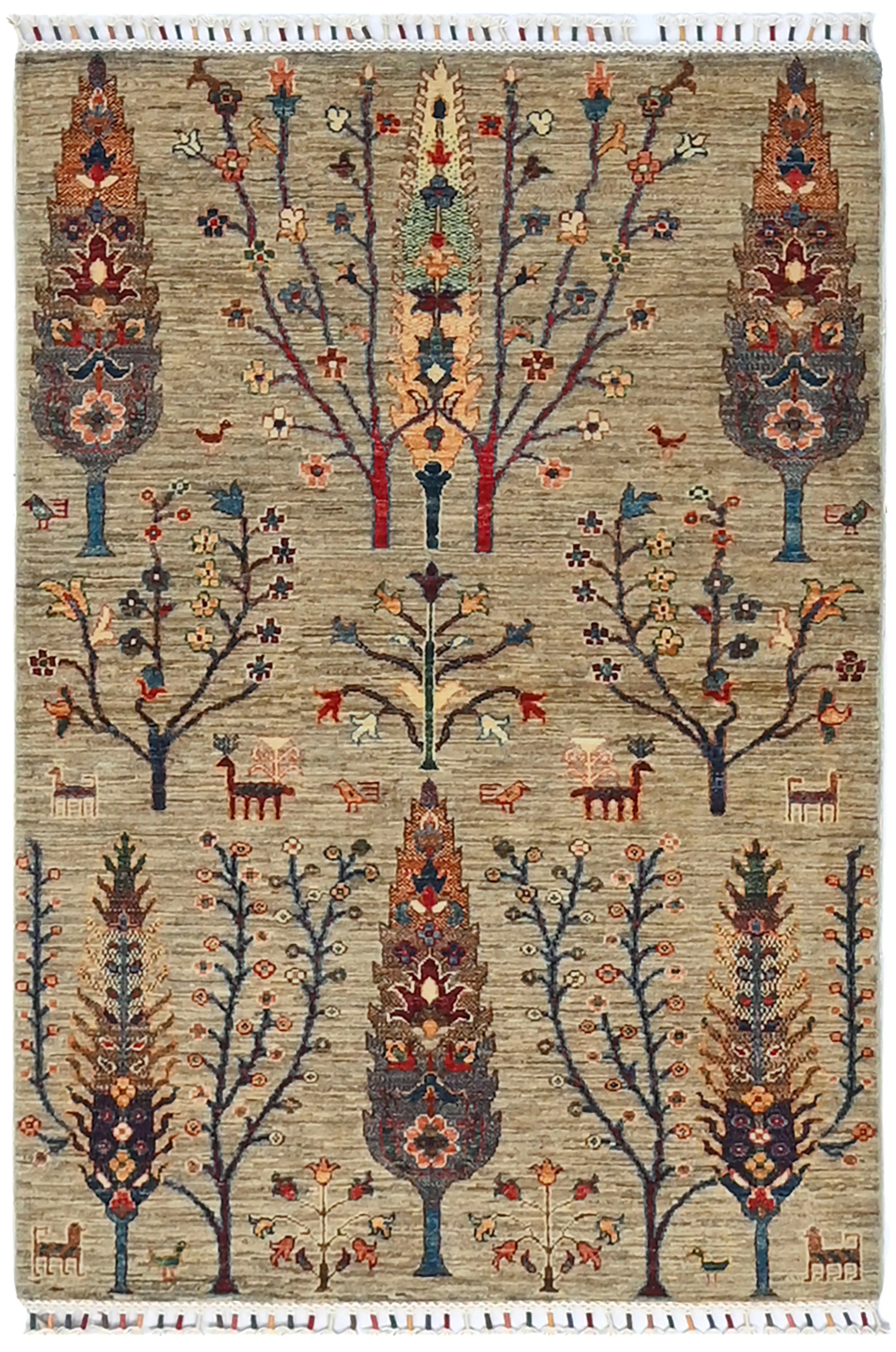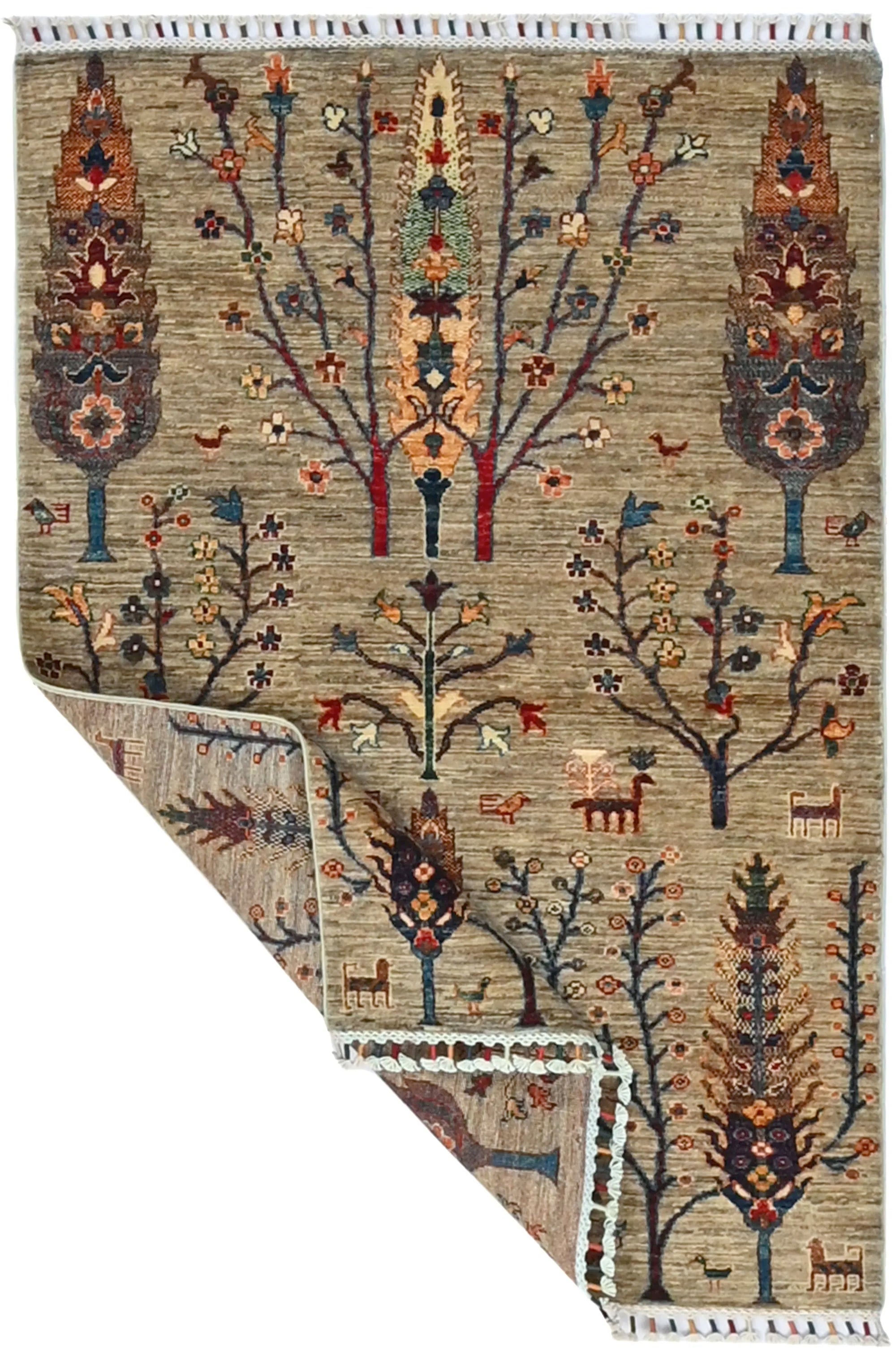 Gran is an exclusive, hand-knotted Khorjin-style rug from Afghanistan, featuring a design inspired by the organic patterns of pine wood grains. The bright, cheerful colors combined with the artistic composition make this rug ideal for anyone looking for a vibrant, modern and expressive interior piece. Made from 100% hand-spun wool and dyed entirely with natural vegetable dyes, this rug offers a warm, authentic look with a beautiful natural sheen. Every knot is tied by hand by skilled Afghan artisans, ensuring a dense, durable and long-lasting rug of superior quality. The Gran rug fits perfectly in modern and classic interiors alike and serves beautifully as a statement piece in living rooms, bedrooms or workspaces. A stunning blend of traditional craftsmanship and contemporary design — for those who want a rug that truly stands out.