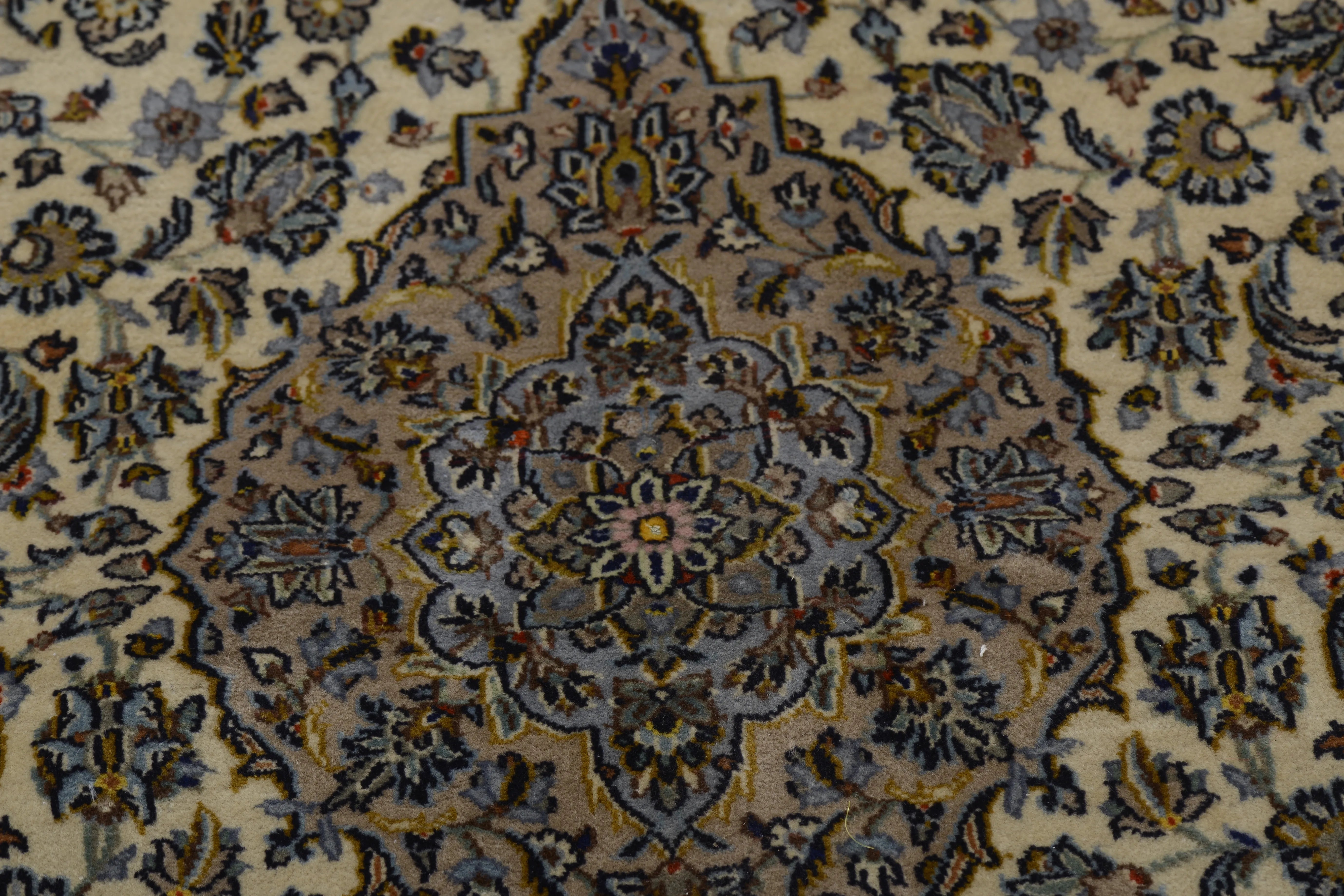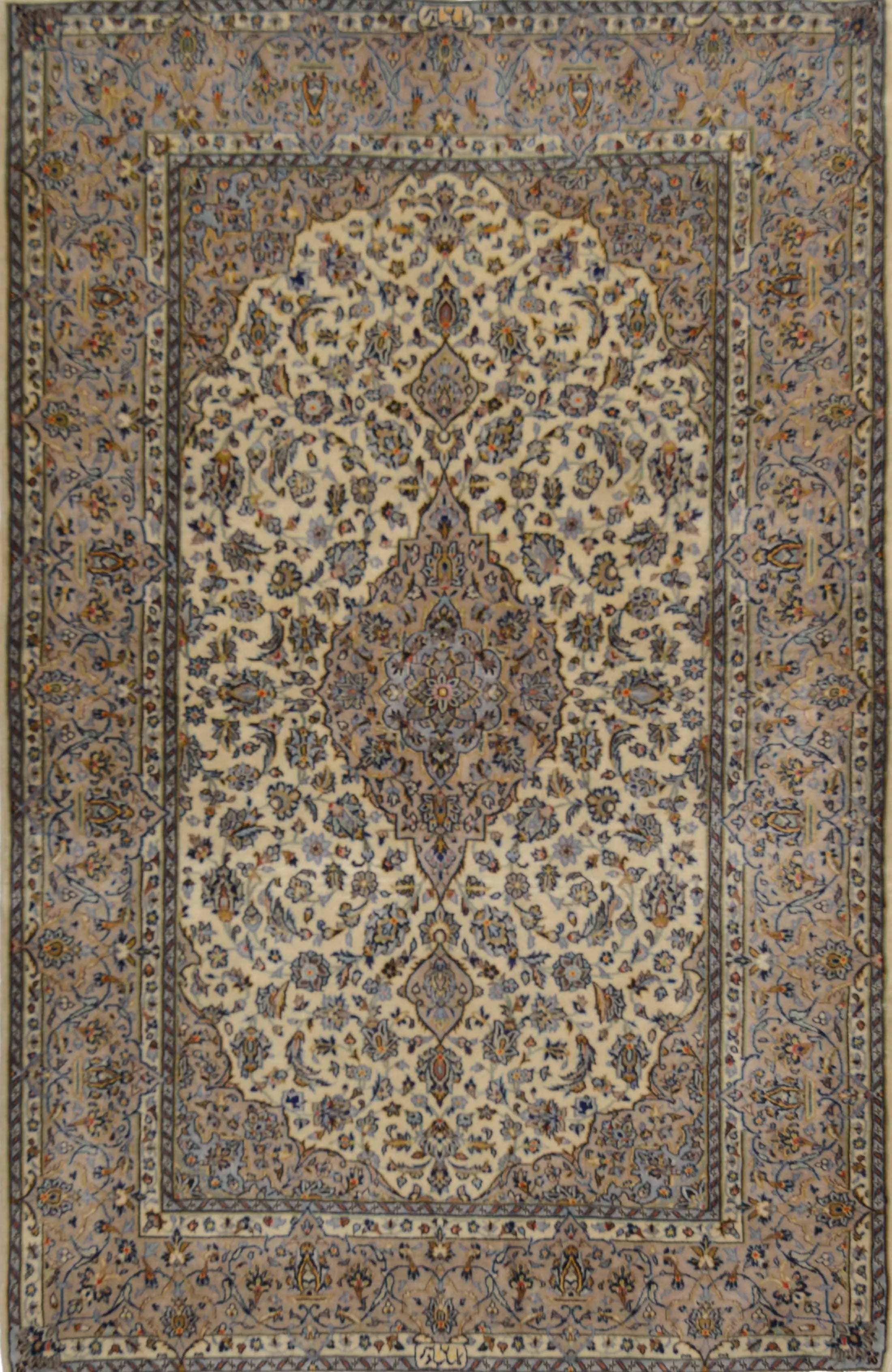 Kashan (or Keshan) rugs are truly an e x ample of the finest in Persian rug artistry. They offer a combination of beauty, durability, and cultural value. If you're considering purchasing a Kashan rug, you can be sure that you're investing in a piece of Iranian culture and history that will bring joy and beauty for many years to come. Kashan rugs are hand-knotted with great precision and adhere to traditional weaving techniques that have developed over centuries. The rugs are known for their high knot density and intricate details. Kashan rugs often feature comple x patterns including large central medallions, flowers, arabesques, and stylized plant motifs. The patterns are often symmetrical and have a harmonious design that reflects traditional Persian art. The most commonly used colors in Kashan rugs are red, blue, ivory, and beige. These colors are often combined to create a rich and contrasting palette. The colors are traditionally made with natural dyes, giving them their deep and lasting appearance. Most Kashan rugs are made from high-quality wool, which provides a soft and durable surface. Some of the more e x clusive ones may also contain silk to add e x tra luster and richness in detail. The base of the rugs is usually made of cotton, which provides stability and structure to the rug. Kashan rugs are known for their high knot density, which makes them dense and durable. This high knot density allows for the creation of very detailed patterns and contributes to the rug's longevity. Kashan rugs are available in a variety of sizes, from small prayer rugs to large room-sized rugs. They are popular both for home use and as decorative items in public spaces. Kashan rugs are an important part of Iran's cultural heritage and represent a long tradition of artistic e x pression and craftsmanship. They are often an e x pression of local culture and aesthetics and are considered a form of artwork. Many Kashan rugs have historically been made for royal courts and wealthy merchants, which marks them as symbols of lu x ury and status. They are still highly sought after both as collectibles and for decoration in e x clusive settings. Kashan rugs are often e x pensive due to their high quality and aesthetic value.