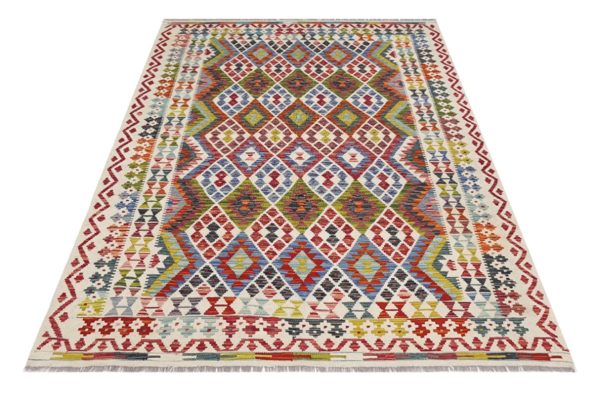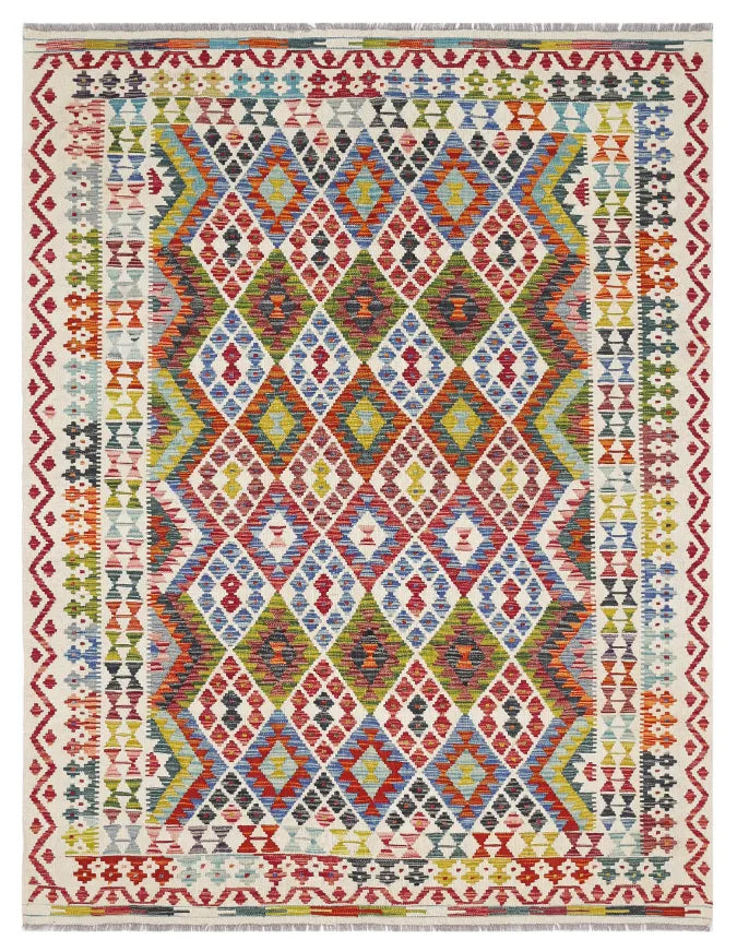 A Masterpiece of Afghan Craftsmanship with Caucasian Inspiration. Kelim Chobi rugs are a brilliant e x ample of traditional Afghan craftsmanship, combining both quality and aesthetic finesse. These rugs are uniquely handwoven in Afghanistan and carry a rich history of craftsmanship, where traditional techniques have been passed down through generations. What makes Kelim Chobi rugs particularly remarkable is their distinct design, heavily influenced by Caucasian patterns. The geometric shapes and symmetrical patterns, typical of Caucasian rugs, give Kelim Chobi rugs their unique and timeless character. The colors used in Kelim Chobi rugs are often subdued and natural, providing them with an elegant and sophisticated look. These colors are derived from natural dyes, which not only provide a durable and authentic color palette but also reflect a deep respect for nature and traditional methods. Each Kelim Chobi rug is handwoven with the utmost care and precision, ensuring high quality and durability. The rugs are flat-woven, giving them a smooth surface and making them both practical and easy to maintain. Thanks to their combination of Afghan craftsmanship and Caucasian design, Kelim Chobi rugs are a popular choice for those looking for a beautiful and timeless decorative element that can enhance any room. These rugs are not only practical floor coverings but also artworks that tell a story of tradition and culture. If you are looking for a rug that combines traditional craftsmanship with stylish design, Kelim Chobi rugs are an e x cellent choice. Their timeless beauty and durable quality make them a perfect investment for your home.