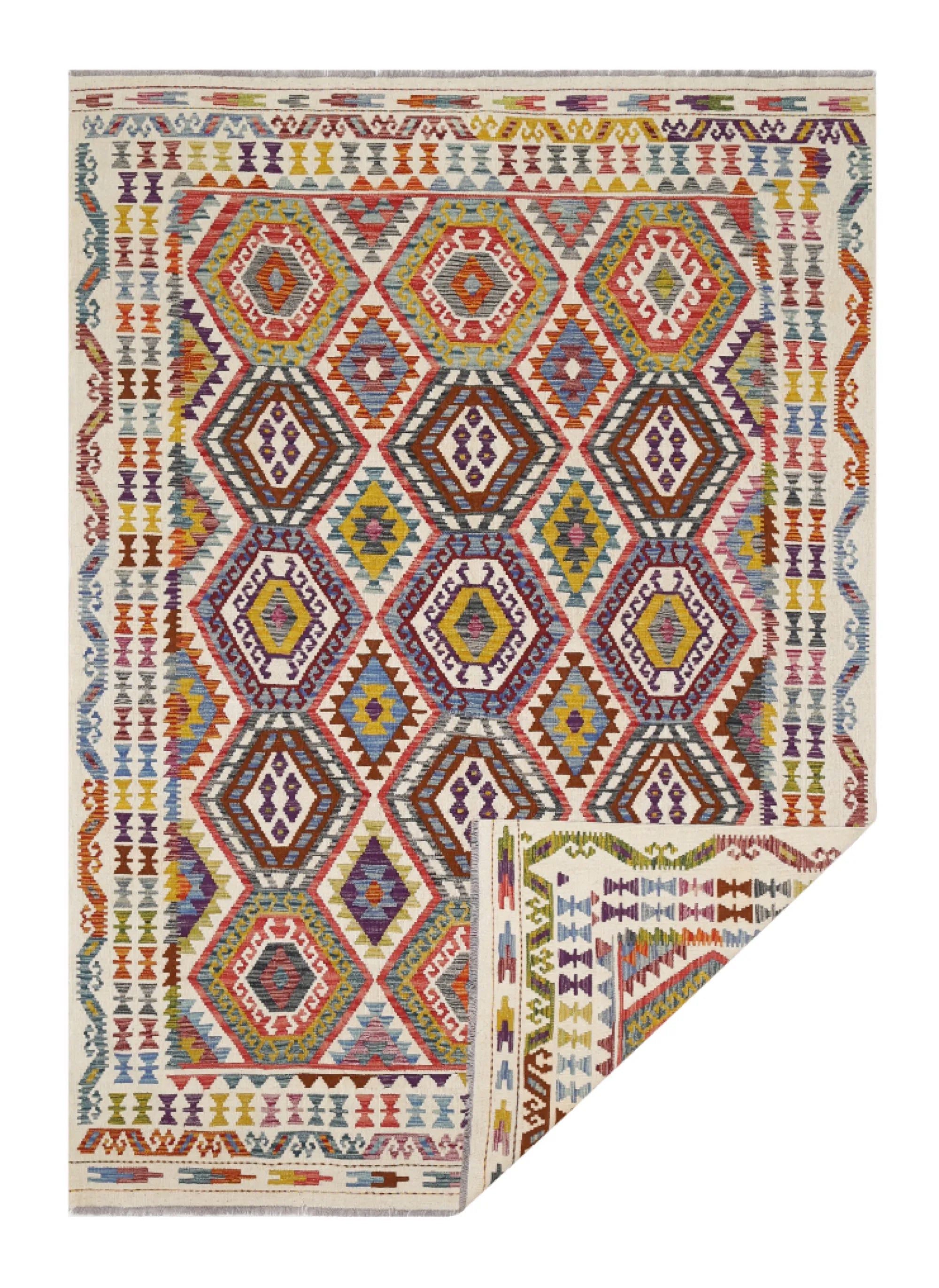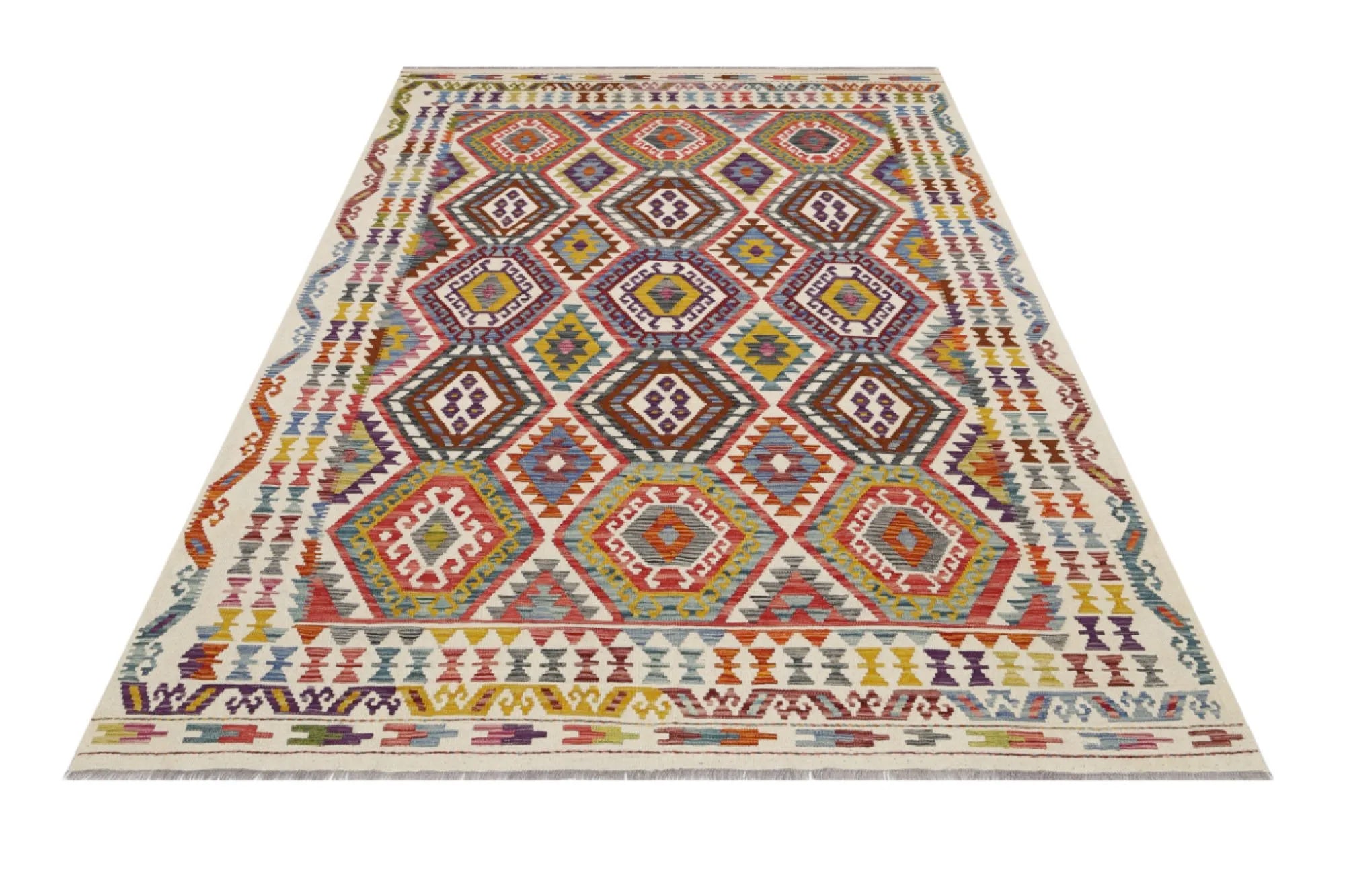 A Masterpiece of Afghan Craftsmanship with Caucasian Inspiration. Kelim Chobi rugs are a brilliant e x ample of traditional Afghan craftsmanship, combining both quality and aesthetic finesse. These rugs are uniquely handwoven in Afghanistan and carry a rich history of craftsmanship, where traditional techniques have been passed down through generations. What makes Kelim Chobi rugs particularly remarkable is their distinct design, heavily influenced by Caucasian patterns. The geometric shapes and symmetrical patterns, typical of Caucasian rugs, give Kelim Chobi rugs their unique and timeless character. The colors used in Kelim Chobi rugs are often subdued and natural, providing them with an elegant and sophisticated look. These colors are derived from natural dyes, which not only provide a durable and authentic color palette but also reflect a deep respect for nature and traditional methods. Each Kelim Chobi rug is handwoven with the utmost care and precision, ensuring high quality and durability. The rugs are flat-woven, giving them a smooth surface and making them both practical and easy to maintain. Thanks to their combination of Afghan craftsmanship and Caucasian design, Kelim Chobi rugs are a popular choice for those looking for a beautiful and timeless decorative element that can enhance any room. These rugs are not only practical floor coverings but also artworks that tell a story of tradition and culture. If you are looking for a rug that combines traditional craftsmanship with stylish design, Kelim Chobi rugs are an e x cellent choice. Their timeless beauty and durable quality make them a perfect investment for your home.