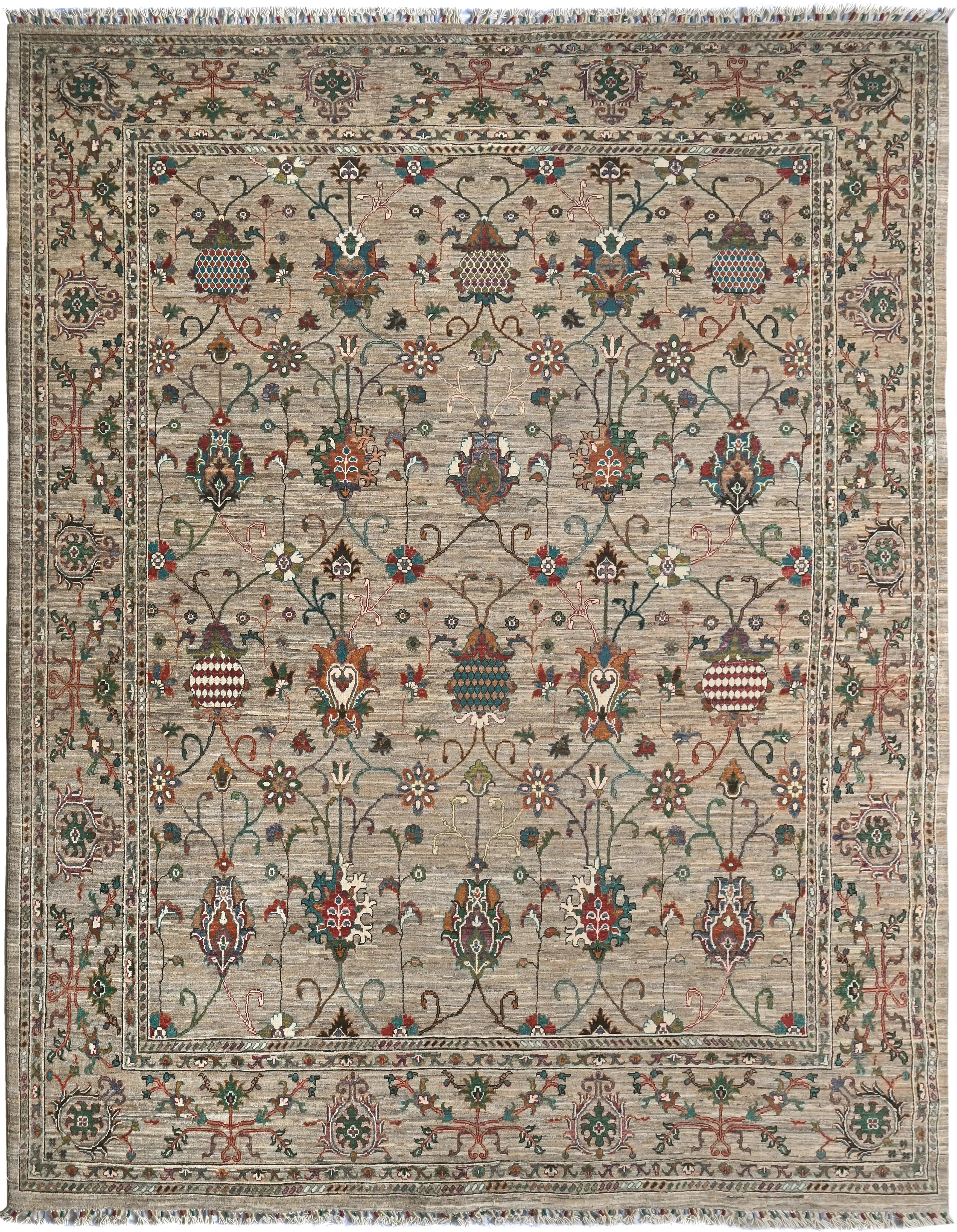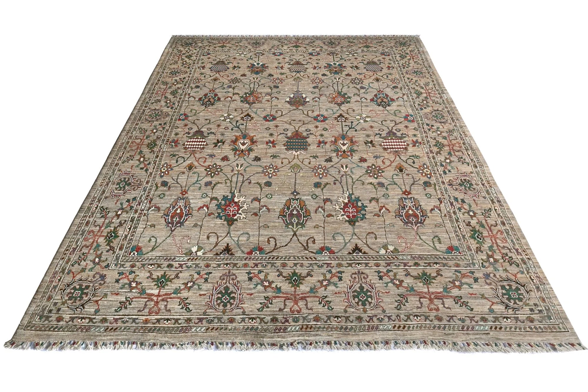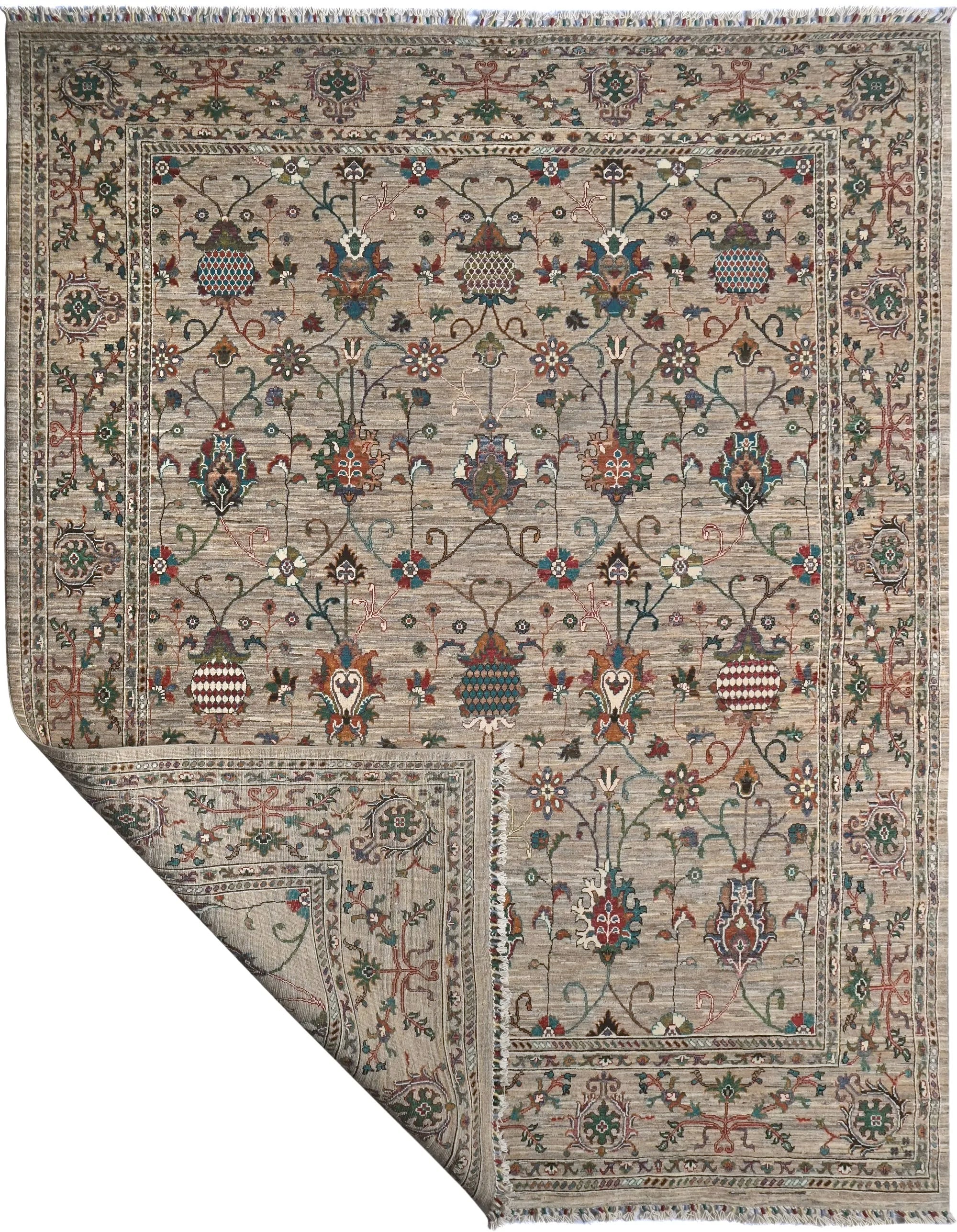 Sultani rugs are an e x clusive type of rugs known for their superior quality and sophisticated design. Often handmade by skilled craftsmen in Afghanistan, they possess a unique character and durability. These rugs combine traditional patterns with modern colors and styles, making them a popular choice for both classic and contemporary interiors. Sultani rugs originate from Afghanistan and carry a rich tradition of rug weaving that has evolved over centuries. The name Sultani refers to the ancient name of the region that included parts of today's Afghanistan. They are hand-knotted by skilled craftsmen, making each rug a unique piece of art. Rug weaving is an important part of Afghanistan's cultural heritage and is a way to preserve and pass on traditional techniques. Sultani rugs are known for their intricate patterns which often include traditional motifs such as geometric shapes, flowers, and medallions. These patterns are a blend of classic and modern styles. The color palette of Sultani rugs is often sophisticated, including earthy tones like beige, brown, gray, and blue, and sometimes more vibrant colors like red and green. Natural dyes are often used to provide soft and durable colors. The combination of traditional motifs and modern colors gives Sultani rugs a timeless elegance that fits in many different interior environments. Sultani rugs are usually made of high-quality wool, which gives them a lu x urious feel and long durability. Sometimes, silk is also used to create an e x tra glossy surface and softness. The rugs are hand-knotted with a high knot density, resulting in a dense and durable structure. This technique ensures that the rugs are both durable and aesthetically pleasing. Their elegant design and sophisticated colors make them a perfect detail that can enhance the appearance of any room.