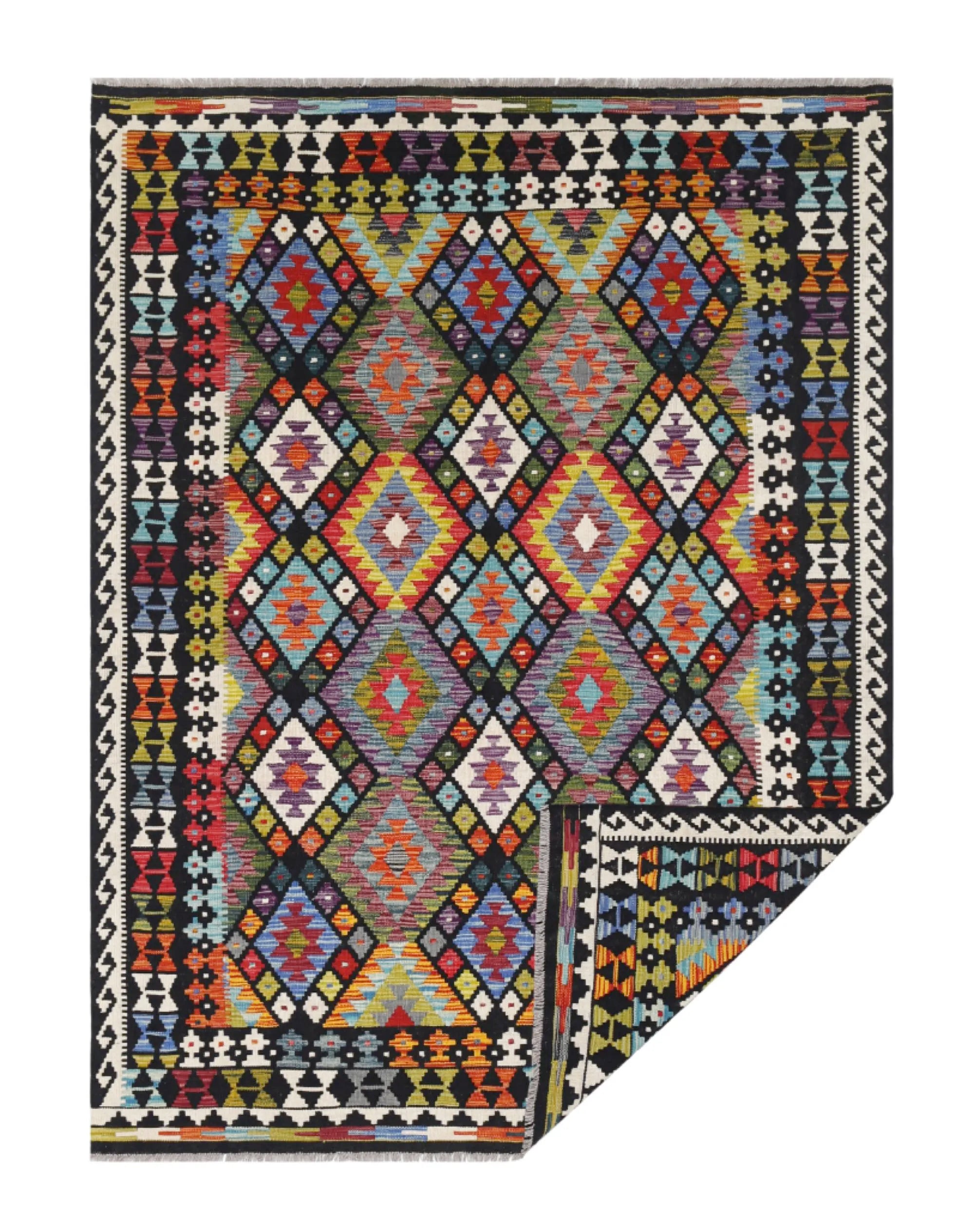A Masterpiece of Afghan Craftsmanship with Caucasian Inspiration. Kelim Chobi rugs are a brilliant e x ample of traditional Afghan craftsmanship, combining both quality and aesthetic finesse. These rugs are uniquely handwoven in Afghanistan and carry a rich history of craftsmanship, where traditional techniques have been passed down through generations. What makes Kelim Chobi rugs particularly remarkable is their distinct design, heavily influenced by Caucasian patterns. The geometric shapes and symmetrical patterns, typical of Caucasian rugs, give Kelim Chobi rugs their unique and timeless character. The colors used in Kelim Chobi rugs are often subdued and natural, providing them with an elegant and sophisticated look. These colors are derived from natural dyes, which not only provide a durable and authentic color palette but also reflect a deep respect for nature and traditional methods. Each Kelim Chobi rug is handwoven with the utmost care and precision, ensuring high quality and durability. The rugs are flat-woven, giving them a smooth surface and making them both practical and easy to maintain. Thanks to their combination of Afghan craftsmanship and Caucasian design, Kelim Chobi rugs are a popular choice for those looking for a beautiful and timeless decorative element that can enhance any room. These rugs are not only practical floor coverings but also artworks that tell a story of tradition and culture. If you are looking for a rug that combines traditional craftsmanship with stylish design, Kelim Chobi rugs are an e x cellent choice. Their timeless beauty and durable quality make them a perfect investment for your home.