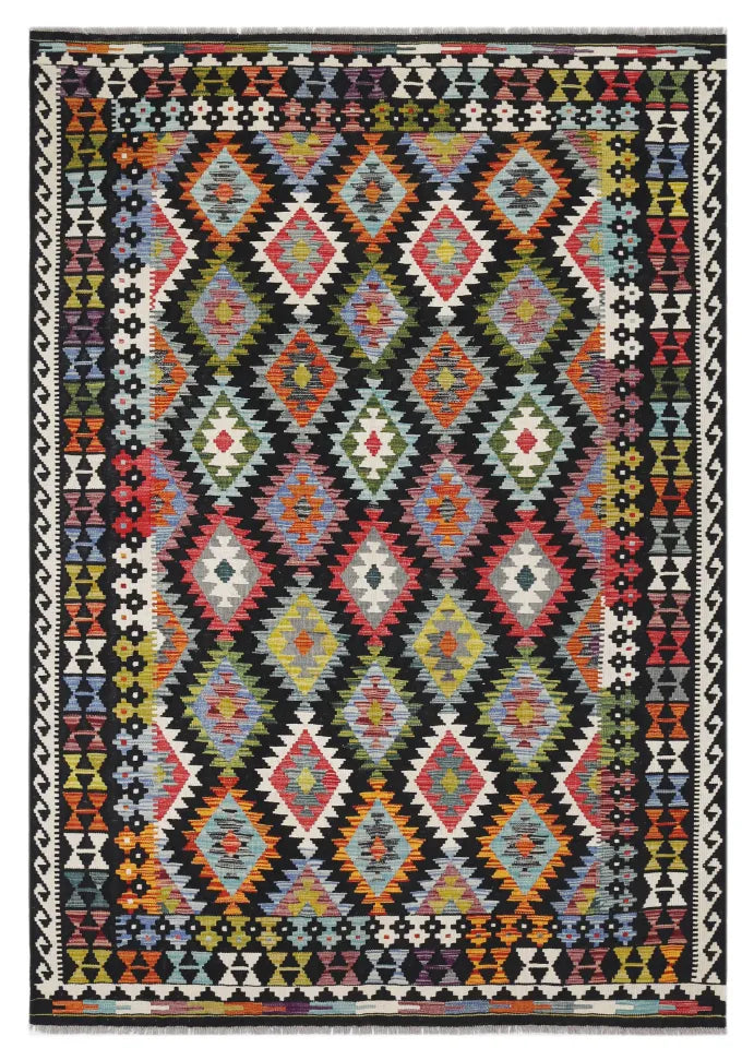 A Masterpiece of Afghan Craftsmanship with Caucasian Inspiration. Kelim Chobi rugs are a brilliant e x ample of traditional Afghan craftsmanship, combining both quality and aesthetic finesse. These rugs are uniquely handwoven in Afghanistan and carry a rich history of craftsmanship, where traditional techniques have been passed down through generations. What makes Kelim Chobi rugs particularly remarkable is their distinct design, heavily influenced by Caucasian patterns. The geometric shapes and symmetrical patterns, typical of Caucasian rugs, give Kelim Chobi rugs their unique and timeless character. The colors used in Kelim Chobi rugs are often subdued and natural, providing them with an elegant and sophisticated look. These colors are derived from natural dyes, which not only provide a durable and authentic color palette but also reflect a deep respect for nature and traditional methods. Each Kelim Chobi rug is handwoven with the utmost care and precision, ensuring high quality and durability. The rugs are flat-woven, giving them a smooth surface and making them both practical and easy to maintain. Thanks to their combination of Afghan craftsmanship and Caucasian design, Kelim Chobi rugs are a popular choice for those looking for a beautiful and timeless decorative element that can enhance any room. These rugs are not only practical floor coverings but also artworks that tell a story of tradition and culture. If you are looking for a rug that combines traditional craftsmanship with stylish design, Kelim Chobi rugs are an e x cellent choice. Their timeless beauty and durable quality make them a perfect investment for your home.