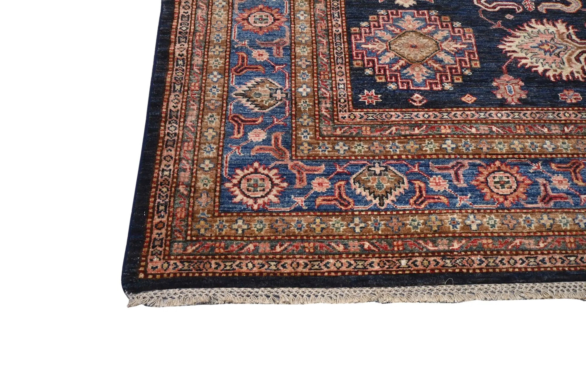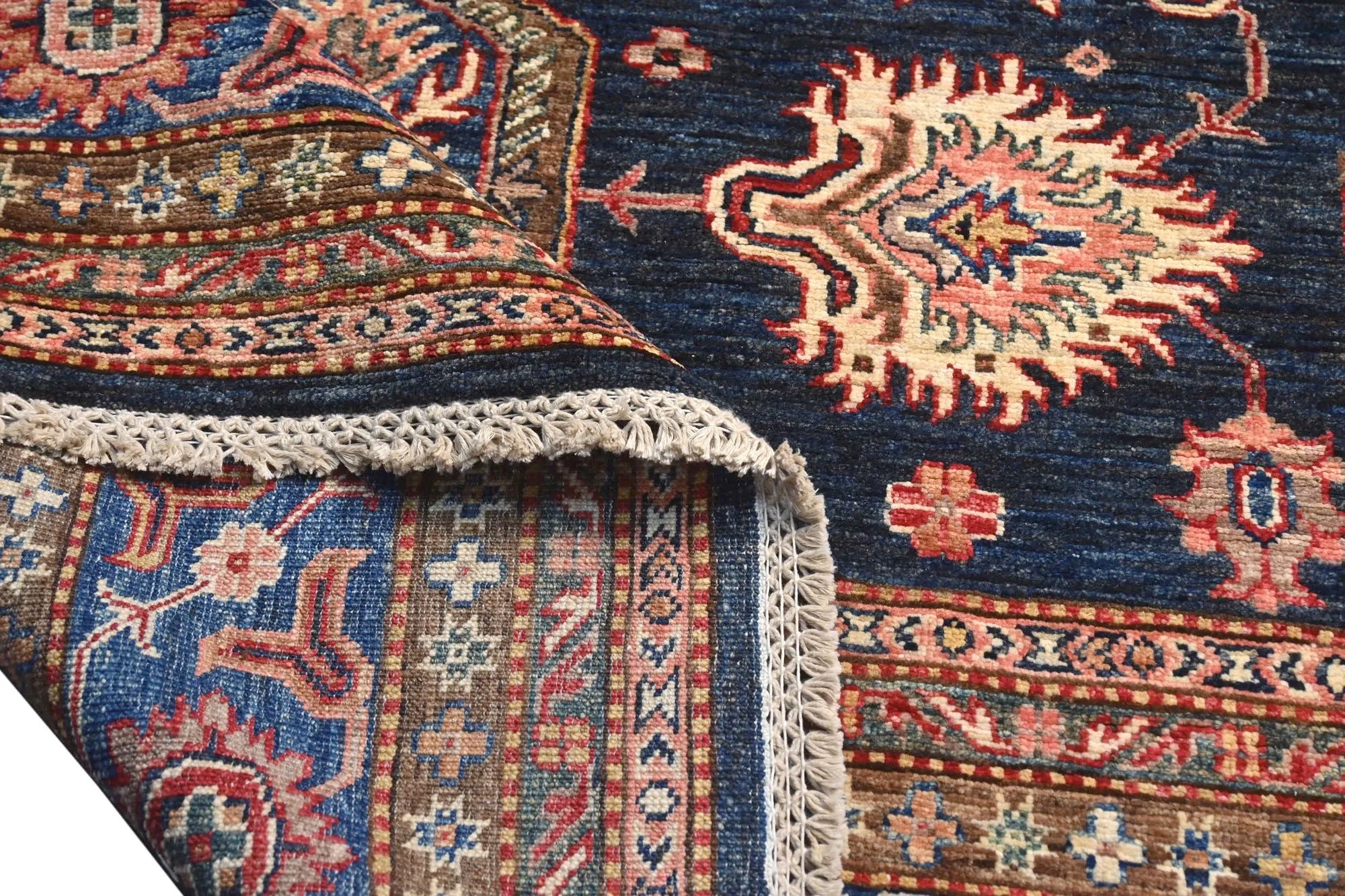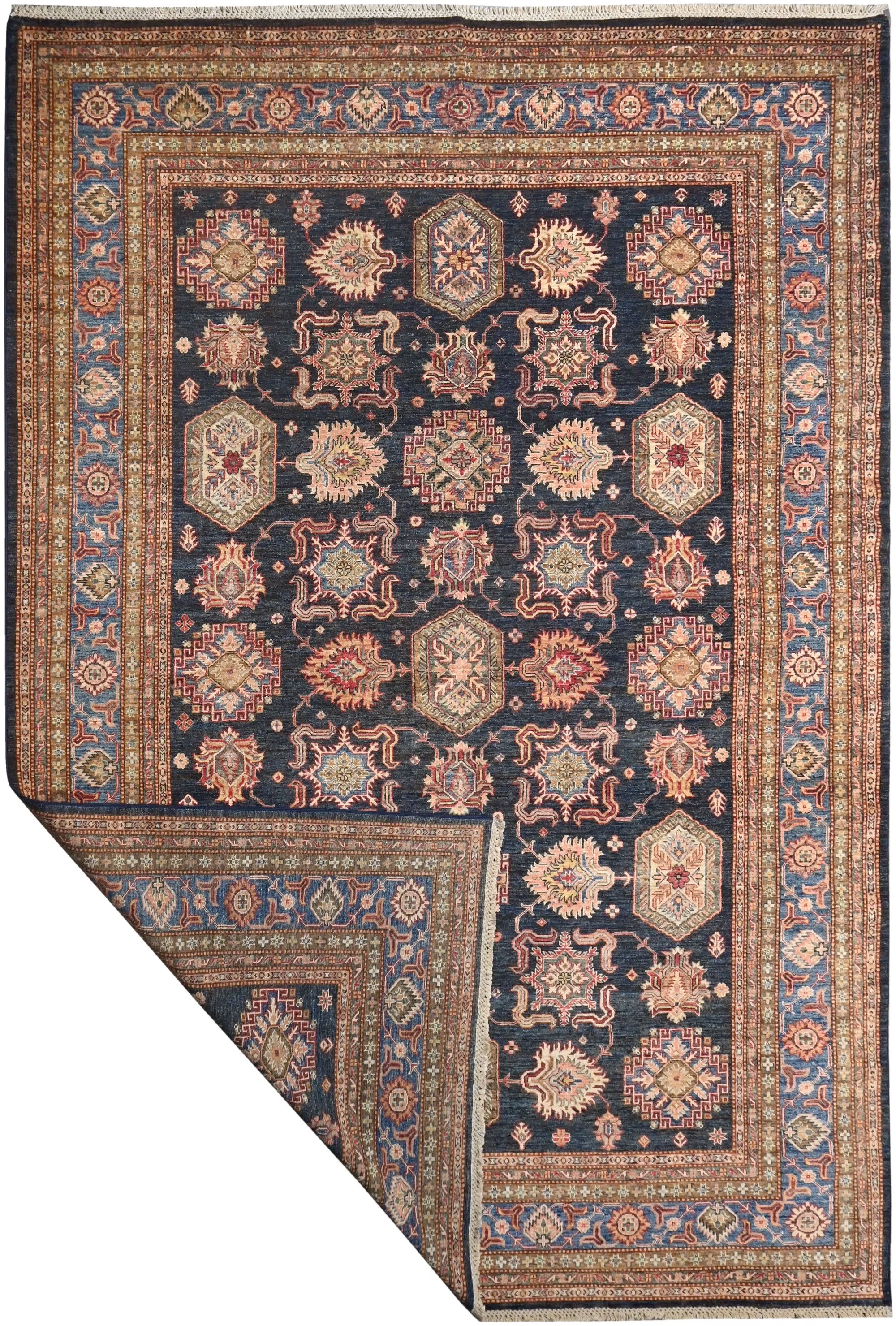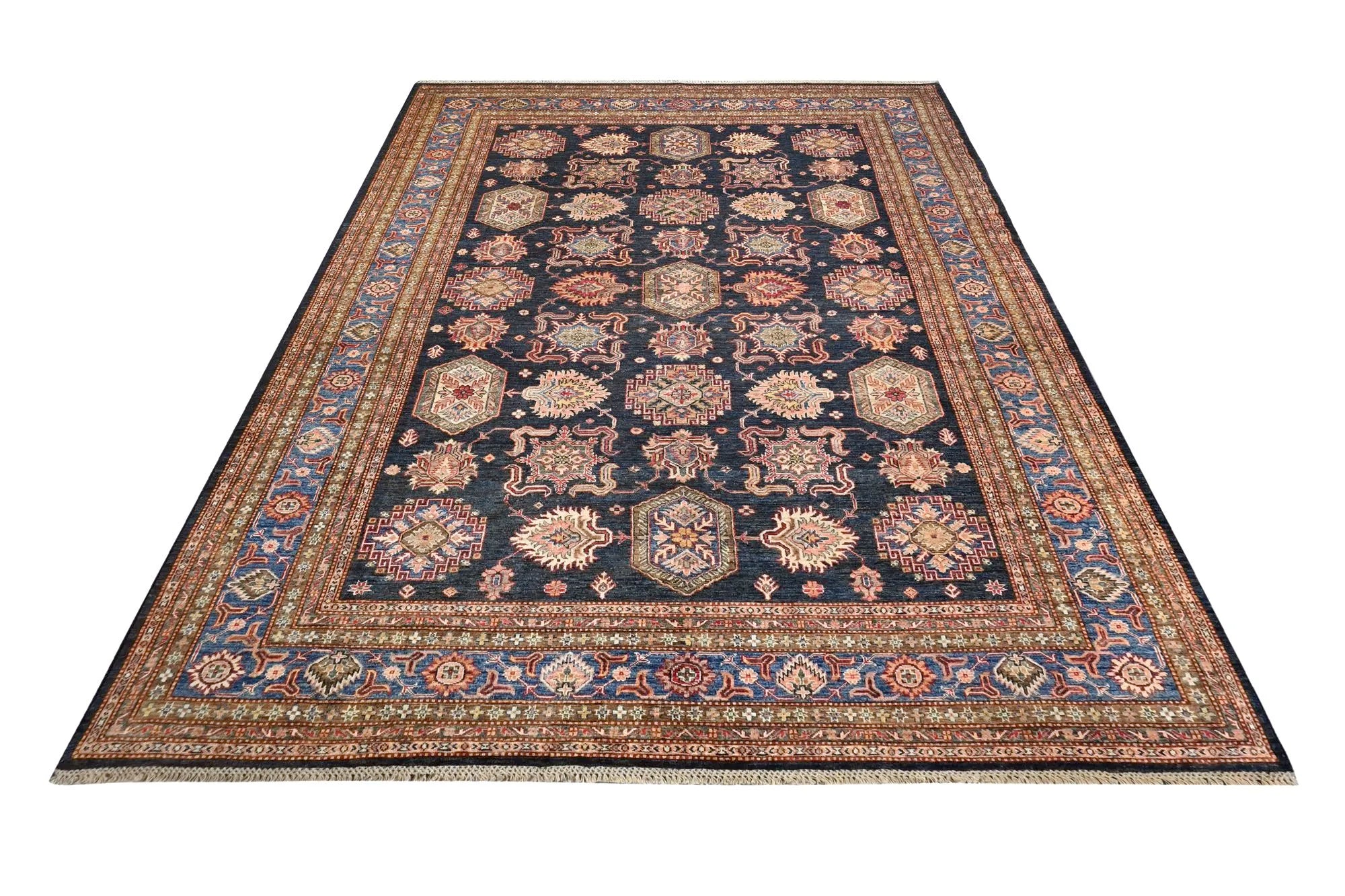 Kazak rugs from Afghanistan are well-known and appreciated for their rich history, unique design, and high quality. They are a part of Afghanistan's rich te x tile tradition and hold a special place in the hearts of rug enthusiasts worldwide. Kazak rugs (or Qazak) have their origins in the Caucasus region, but they are also popular and made in Afghanistan. Originally from the Caucasus regions, they have influenced and become a significant part of the rug-weaving tradition in Afghanistan. These rugs have a long history spanning centuries. Traditionally made by nomadic tribes and village communities, they carry a rich cultural heritage and unique stories. Kazak rugs are known for their geometric patterns and bold design, often featuring large medallions in the center, repeated smaller geometric shapes, and sometimes stylized flowers and animals. The patterns can range from simple to very comple x and detailed. Typical colors include deep reds, blues, and greens, often combined with white and gold accents. Many of the patterns and symbols on Kazak rugs have traditional and cultural meanings, often related to protection, strength, and luck. Thanks to the dense knotting and high-quality wool, Kazak rugs are e x tremely durable and can last for many years, even under heavy use. They are ideal for use in various rooms, from living rooms to bedrooms, and can also be used as wall hangings. Their timeless design makes them suitable for both traditional and modern interiors.