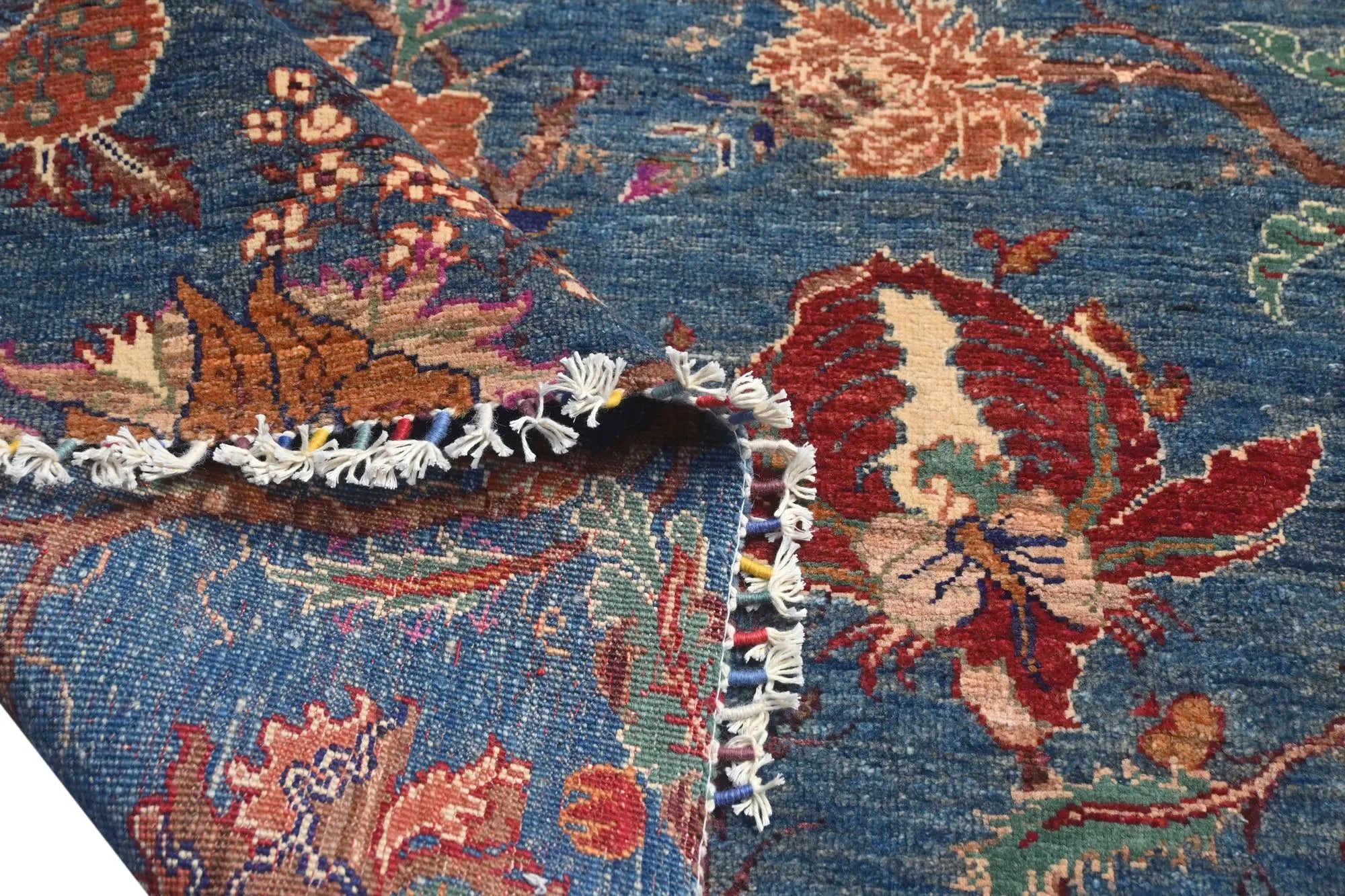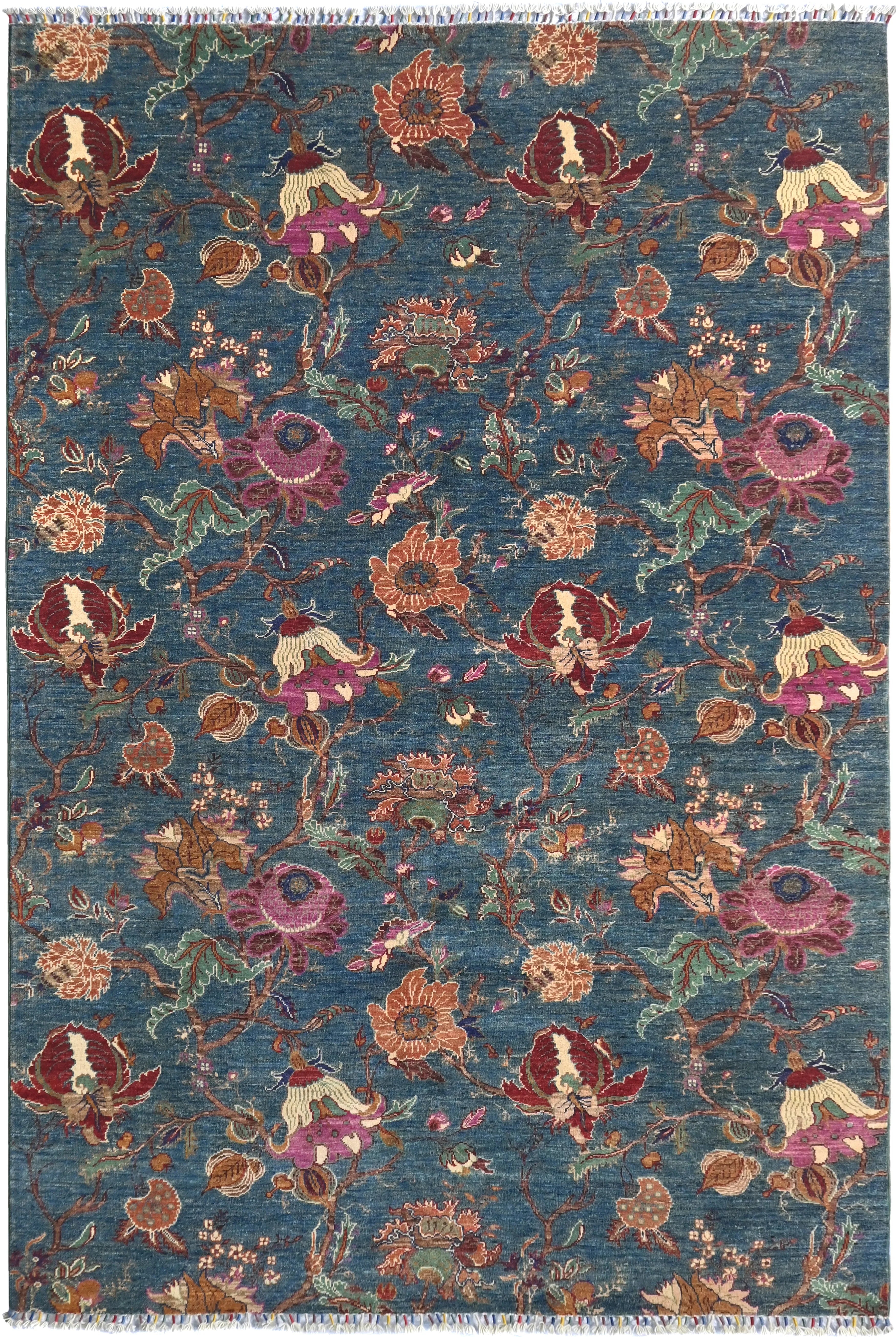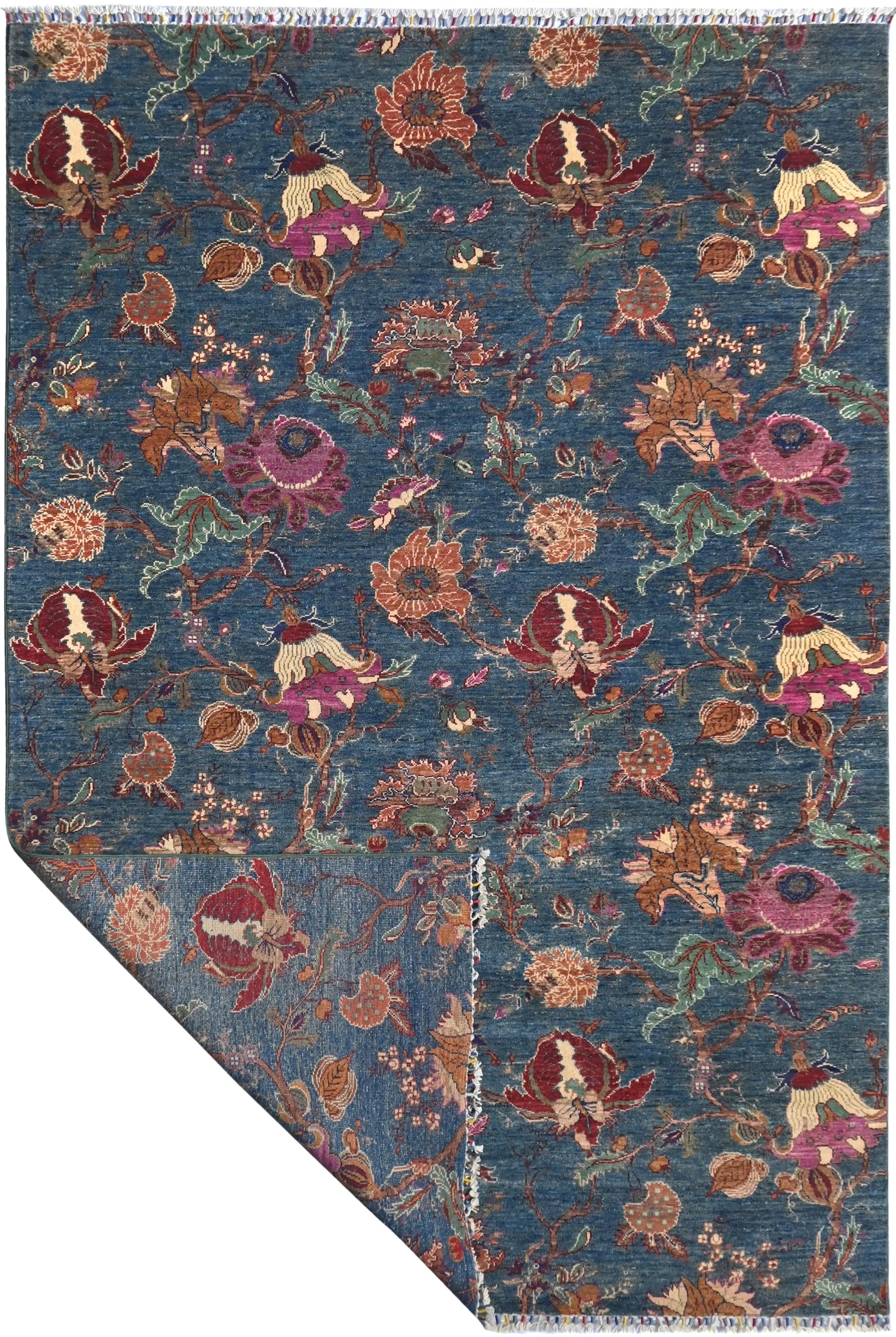Flora is an exceptional hand-knotted Afghan rug, crafted from 100% hand-spun wool and dyed exclusively with natural vegetable dyes. Featuring joyful, vibrant colors and richly detailed floral patterns, this rug celebrates nature’s shapes and artistic beauty. Its design blends traditional Afghan craftsmanship with a fresh, modern expression, making it the perfect choice for anyone seeking a colorful designer rug that stands out. With its dense knotting, natural materials, and long-lasting durability, Flora offers a soft yet resilient texture that will enhance your home for years. Ideal for living rooms, bedrooms, and any space where you want warmth, character, and inspiration. If you are looking for a hand-knotted floral rug, a vegetable-dyed oriental rug, or a unique Afghan design rug, Flora is an outstanding option.