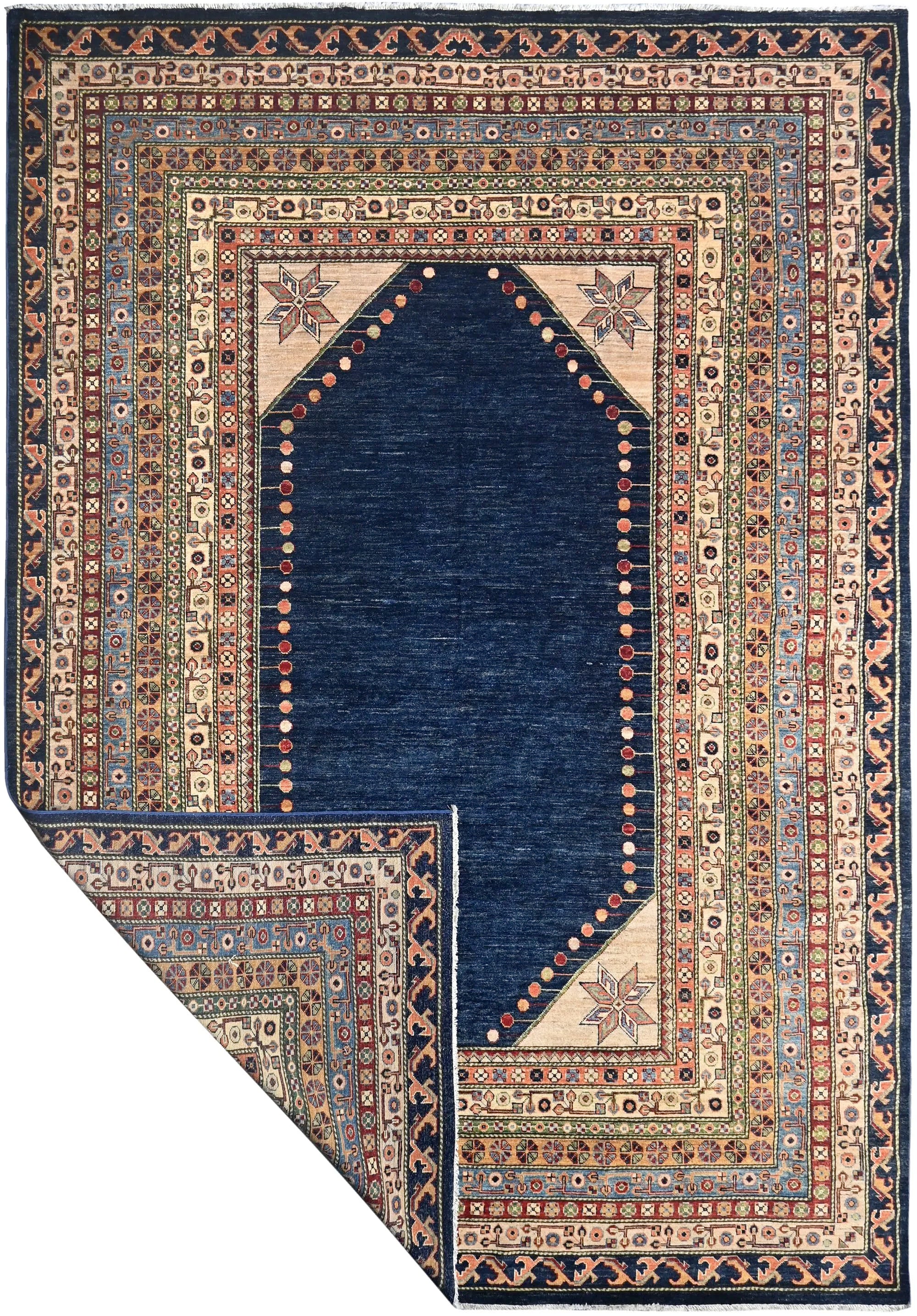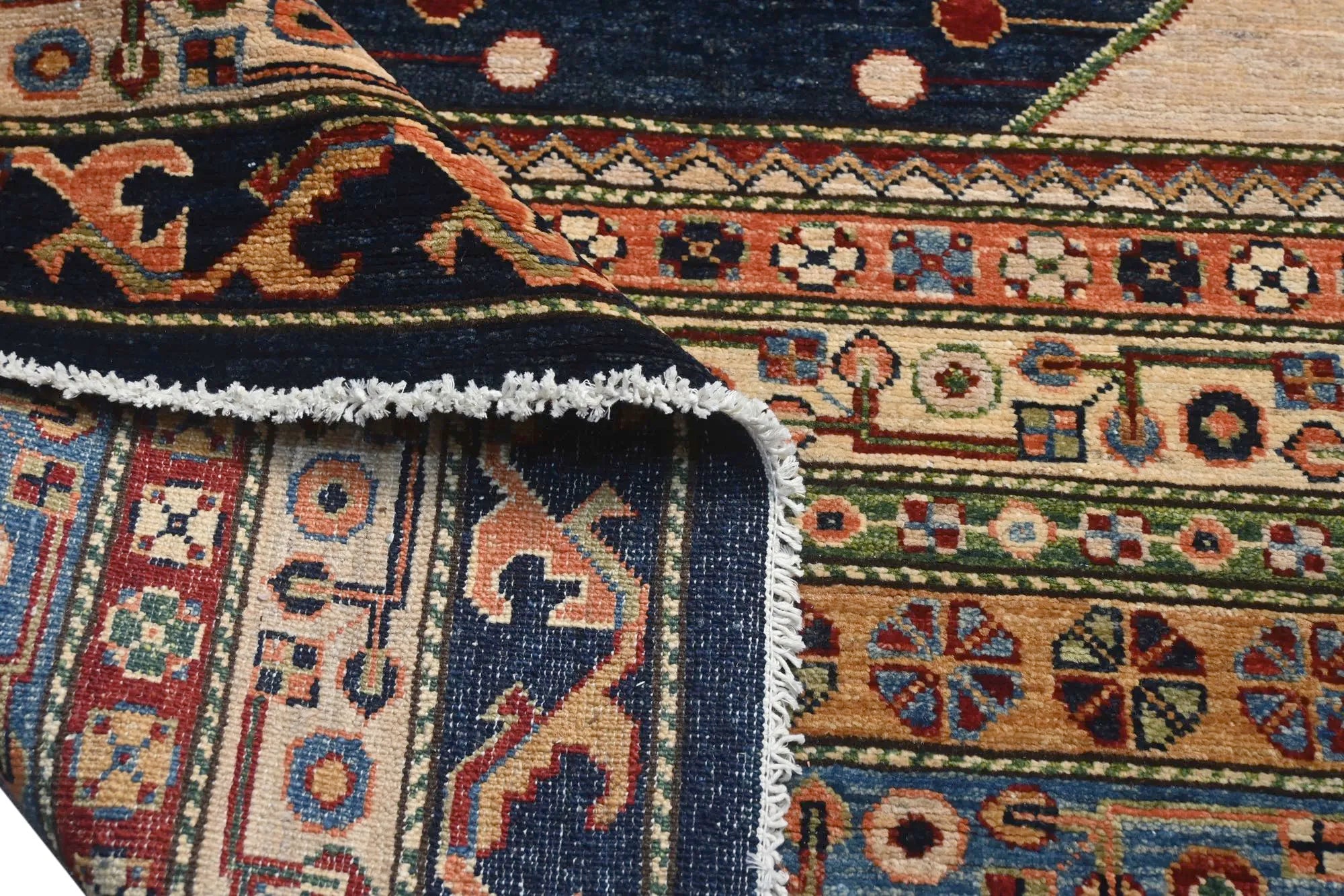 This exclusive rug is inspired by traditional Persian Heriz patterns, reinterpreted in a more modern, softer style with brighter and more uplifting colors. Each piece is hand-knotted in Afghanistan using hand-spun wool and 100% natural vegetable dyes, giving the rug outstanding durability and a beautiful organic sheen. While classic Heriz rugs are known for bold geometric shapes and strong medallion designs, this modern interpretation features a calmer, more contemporary layout that blends effortlessly into both classic and modern interiors. If you're looking for a hand-knotted Heriz rug, a luxury oriental rug, or a rug dyed with authentic vegetable colors, this Afghan-knotted Heriz design is an exceptional choice- a refined artwork that elevates any space.