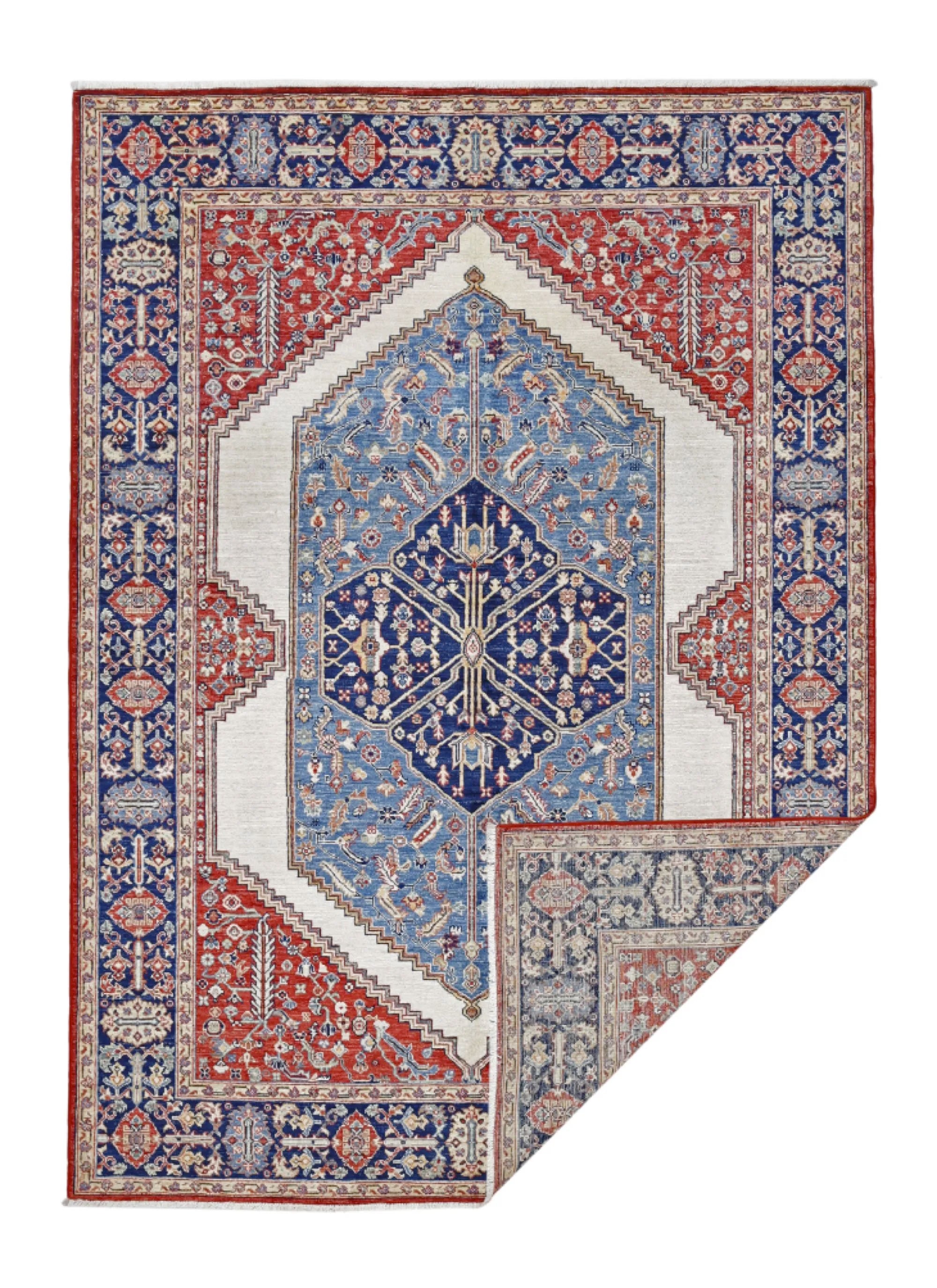 Dehbaft is a premium hand-knotted wool rug inspired by traditional Persian village carpet designs. Dyed entirely with natural vegetable dyes, it offers a soft sheen and rich, harmonious colors that age beautifully over time. Every knot is tied by hand, resulting in a dense and durable texture that reflects true artisanal craftsmanship. With its authentic village-style pattern and warm, earthy tones, Dehbaft fits seamlessly into both contemporary and classic interiors. If you are searching for a genuine hand-knotted oriental rug, a rug with natural vegetable dyes, or a timeless Persian village design, Dehbaft is an exceptional choice that brings warmth, culture, and character to any space.