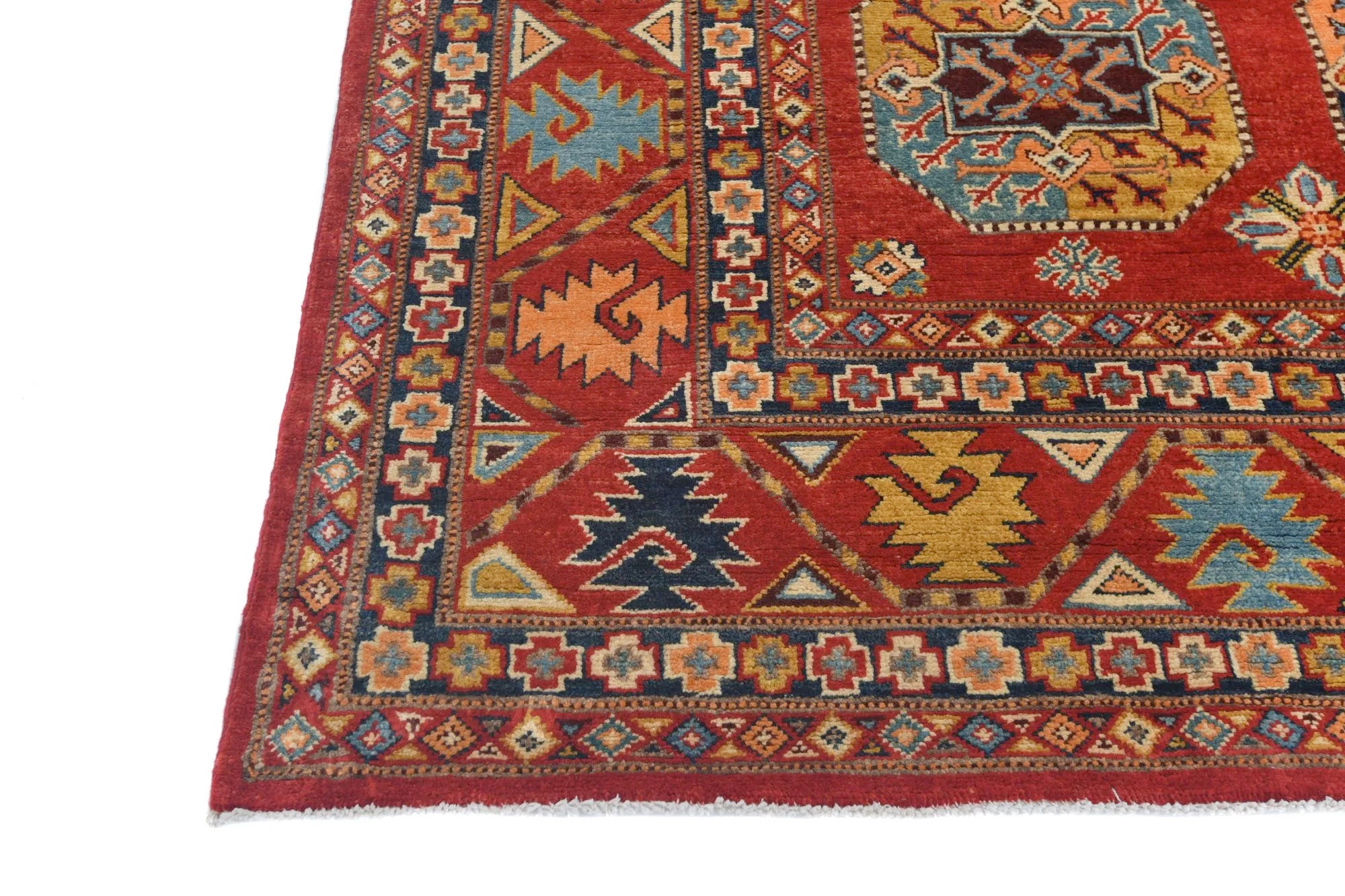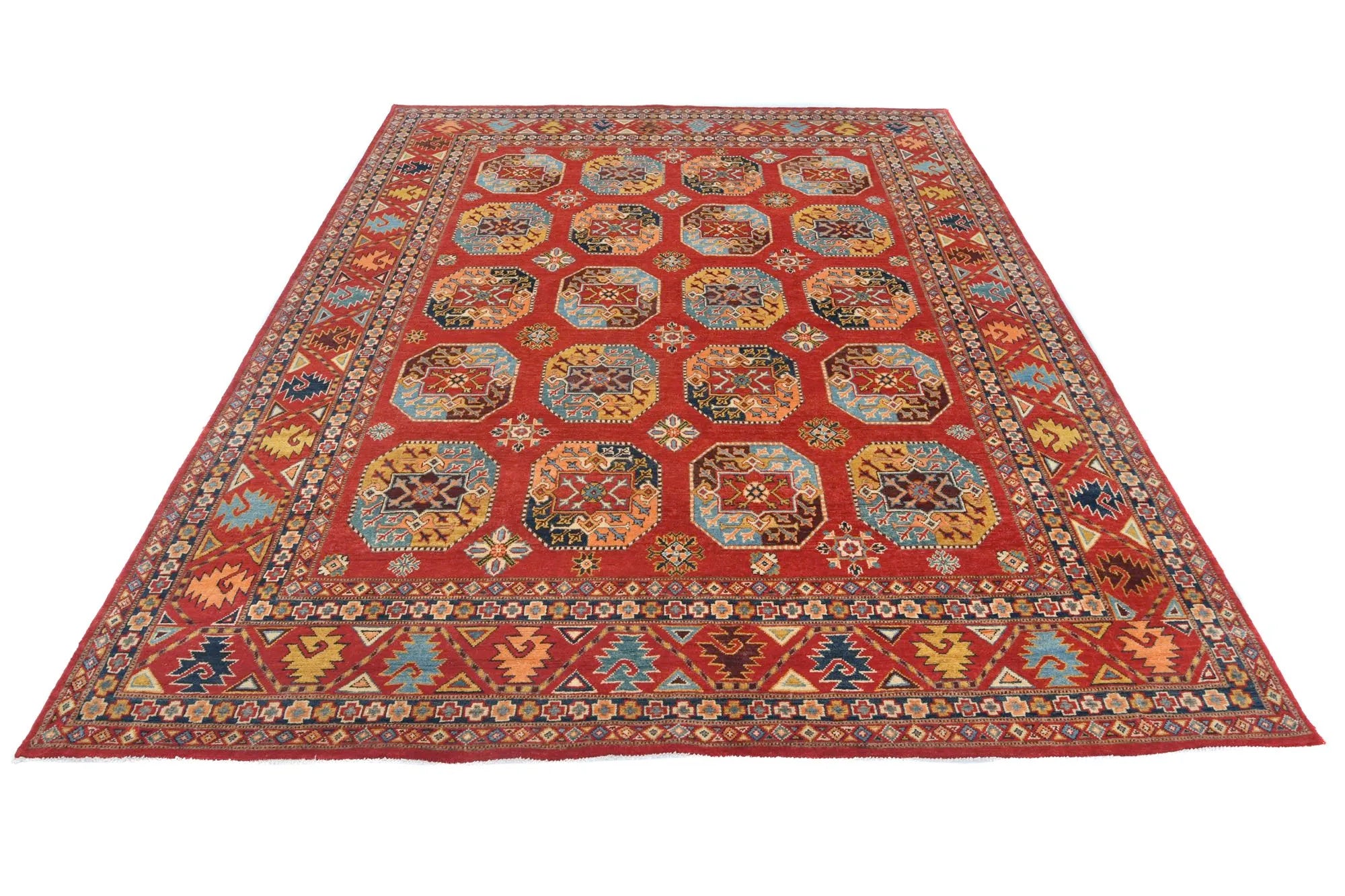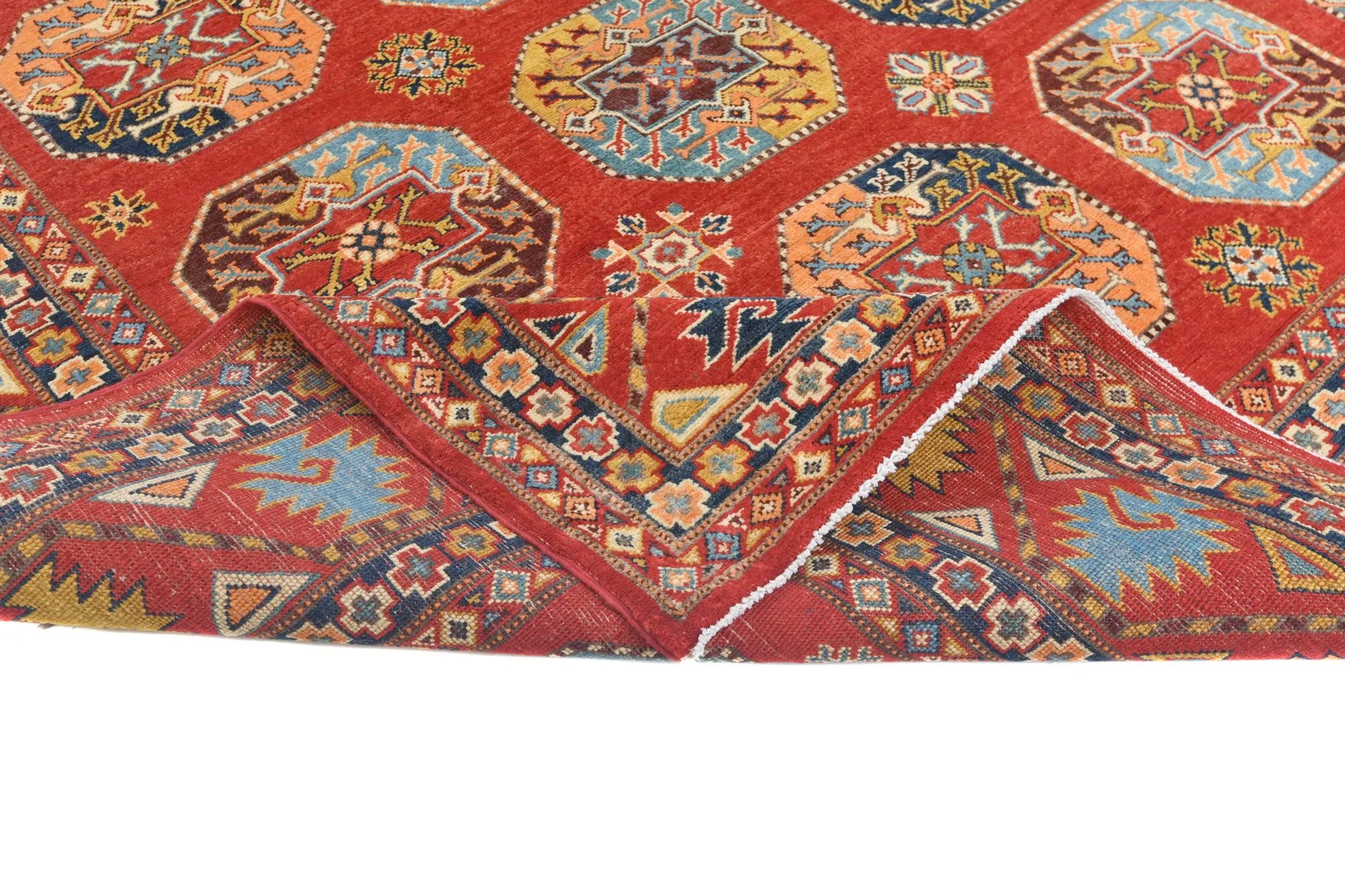 Filpa is an exclusive hand-knotted Afghan rug, inspired by the classic Bokhara design with its iconic elephant foot motifs. This traditional pattern has been reimagined with brighter, more joyful colors, creating a warm and vibrant expression that stands out beautifully in any interior. The rug is made from 100% hand-spun wool and dyed entirely with natural vegetable dyes, giving it a soft texture, rich sheen, and long-lasting durability. With its refined knotting and fresh color palette, Filpa blends timeless oriental tradition with a contemporary artistic touch. If you are searching for a Bokhara-style rug, a distinctive designer rug, or a premium hand-knotted wool rug from Afghanistan, Filpa is an exceptional choice. A rug that brings craftsmanship, culture, and color into perfect harmony.