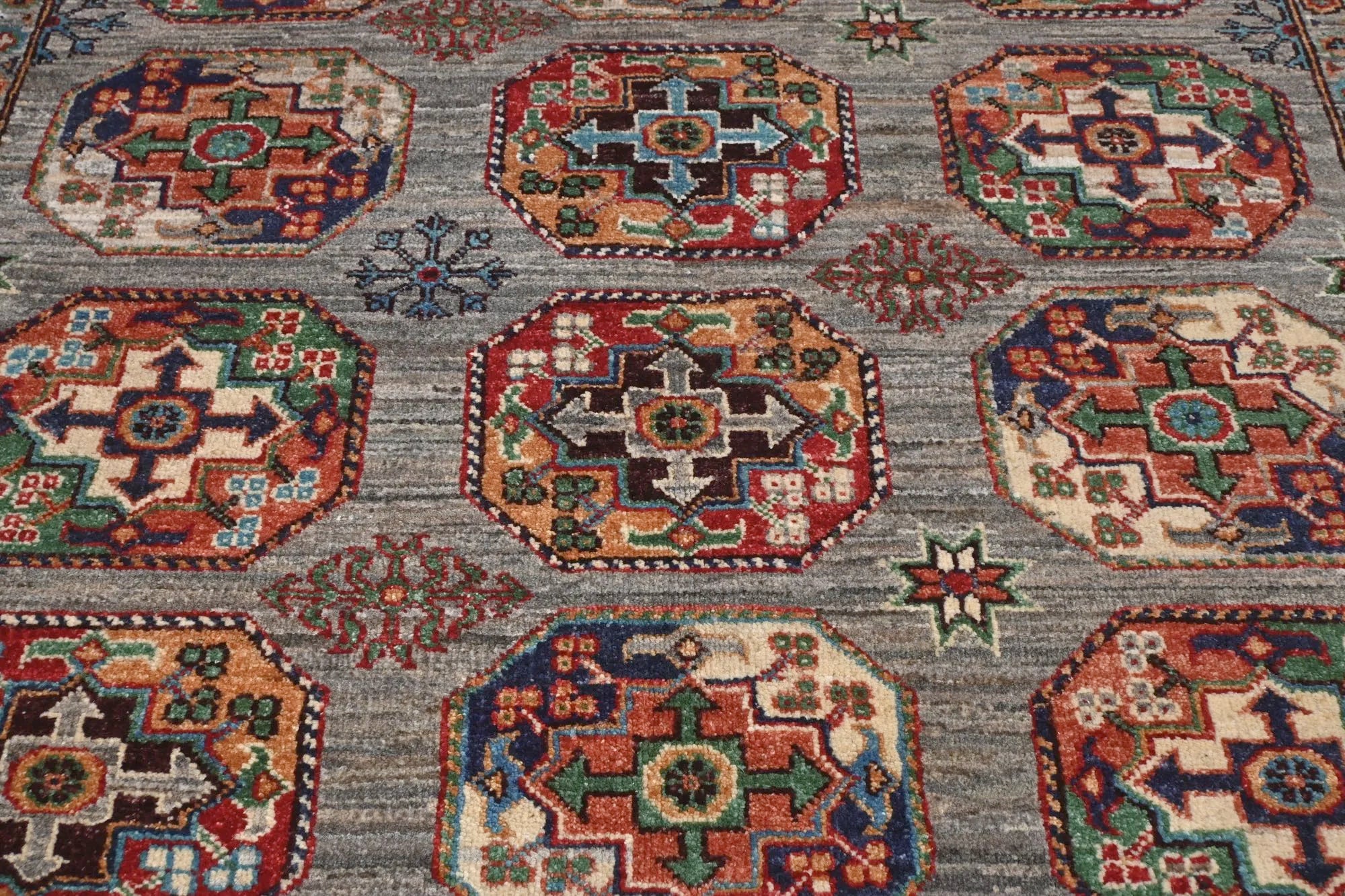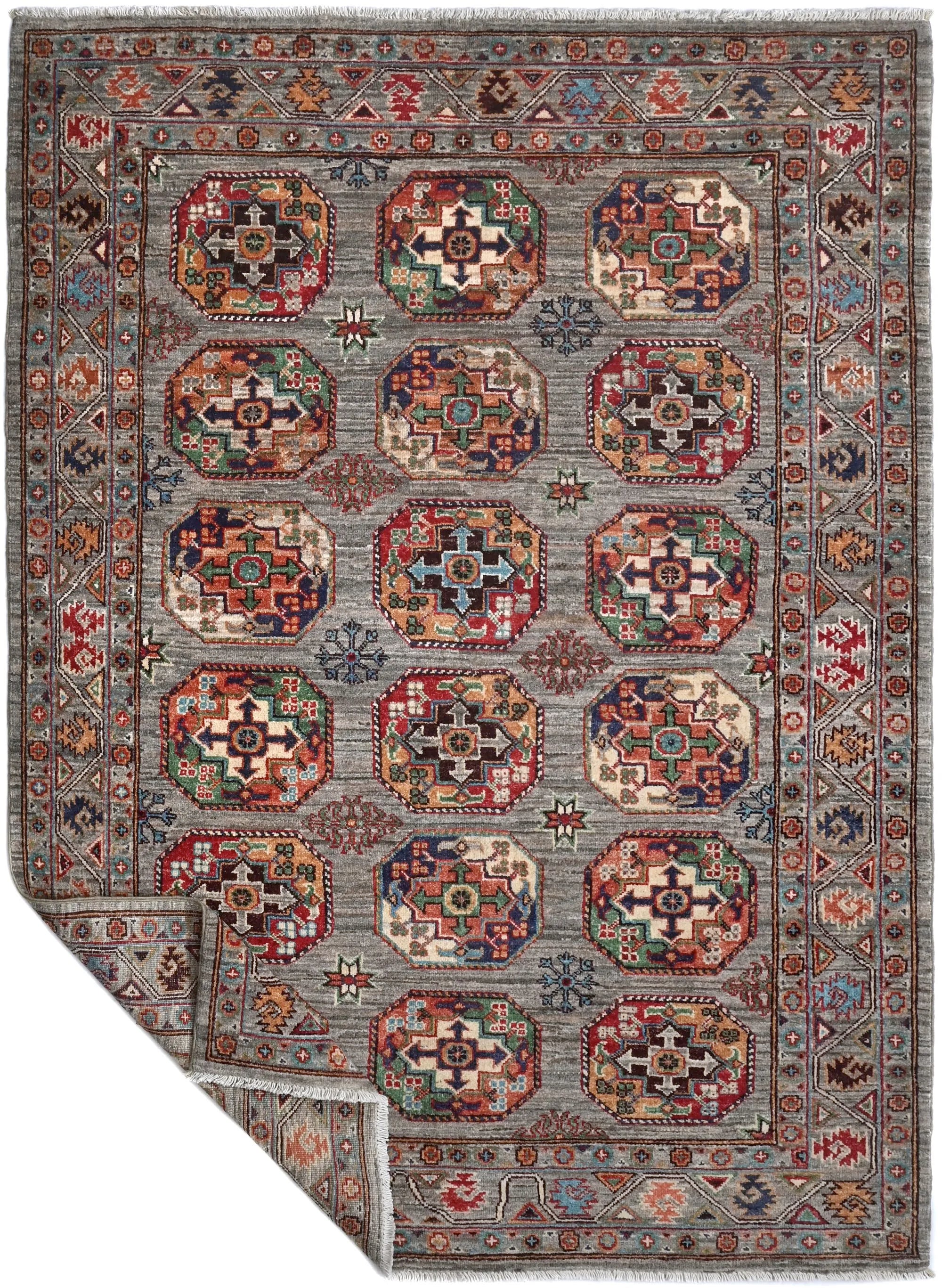 Filpa is an exclusive hand-knotted Afghan rug, inspired by the classic Bokhara design with its iconic elephant foot motifs. This traditional pattern has been reimagined with brighter, more joyful colors, creating a warm and vibrant expression that stands out beautifully in any interior. The rug is made from 100% hand-spun wool and dyed entirely with natural vegetable dyes, giving it a soft texture, rich sheen, and long-lasting durability. With its refined knotting and fresh color palette, Filpa blends timeless oriental tradition with a contemporary artistic touch. If you are searching for a Bokhara-style rug, a distinctive designer rug, or a premium hand-knotted wool rug from Afghanistan, Filpa is an exceptional choice. A rug that brings craftsmanship, culture, and color into perfect harmony.