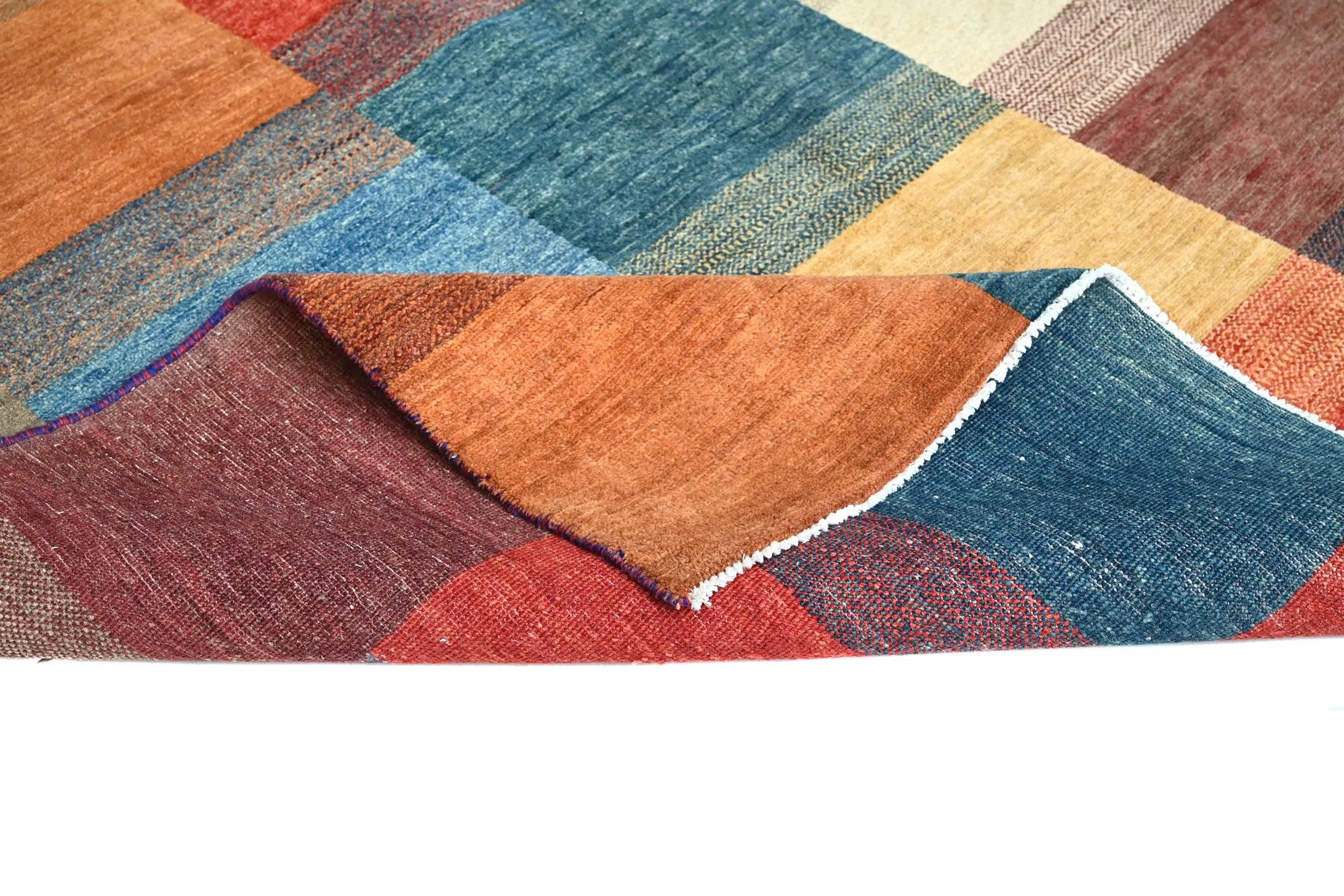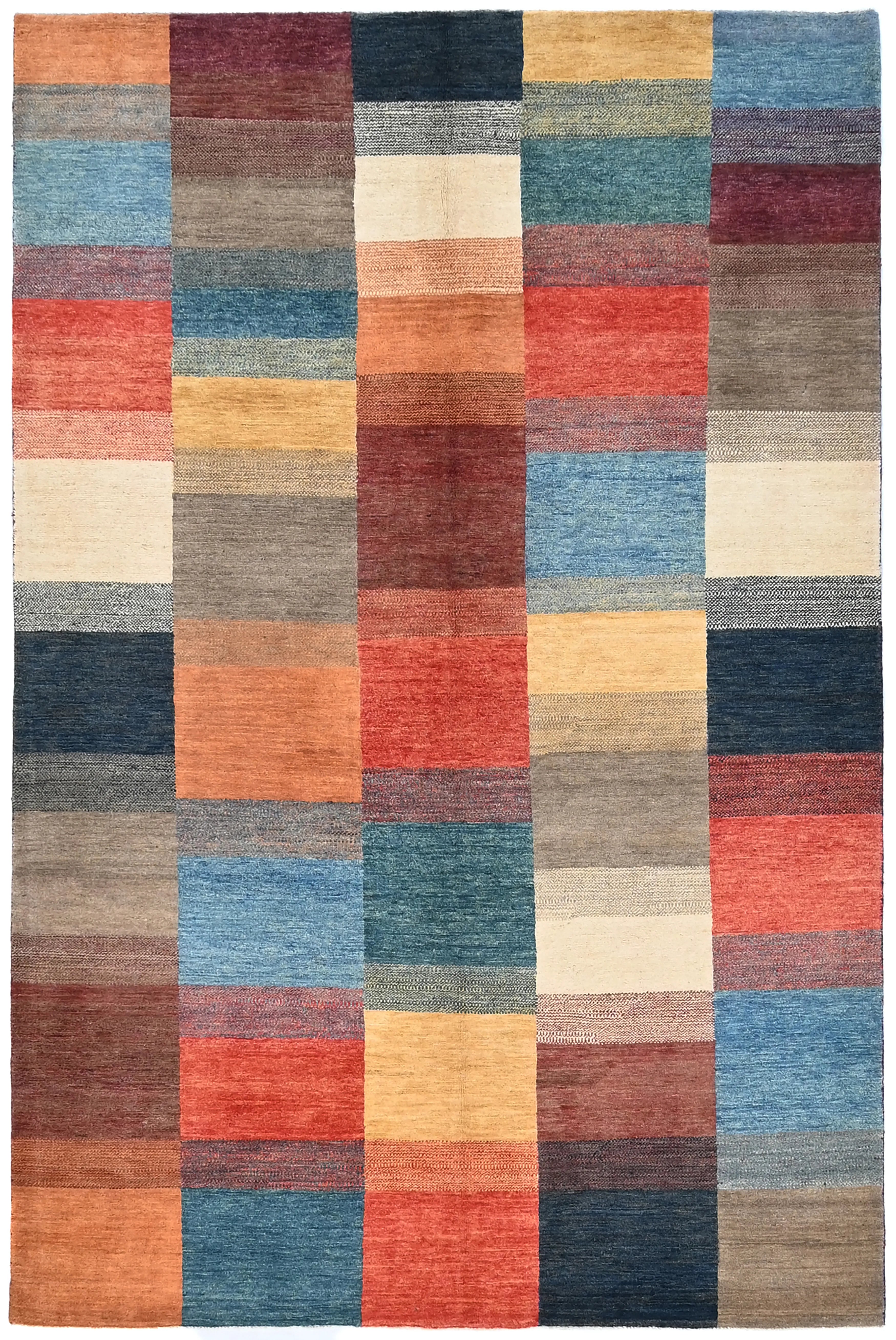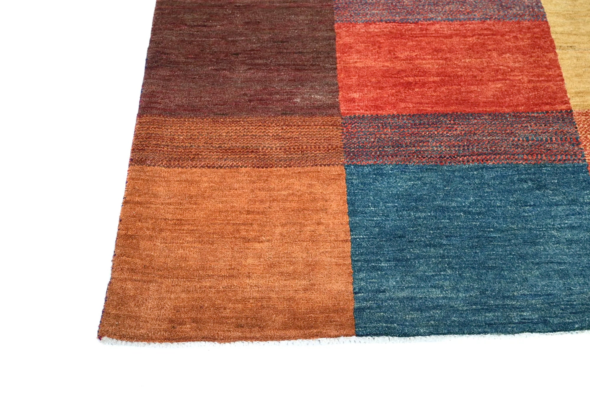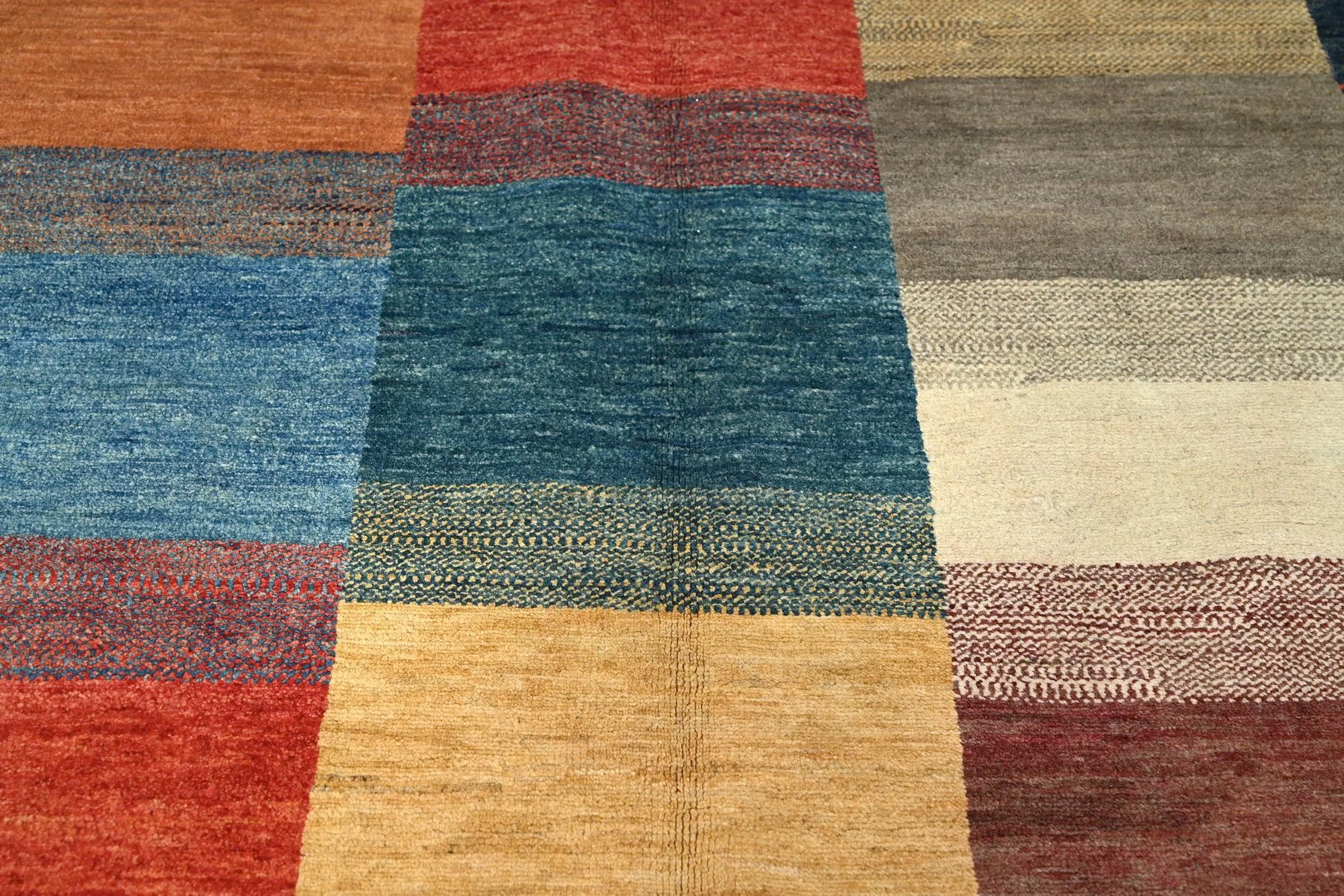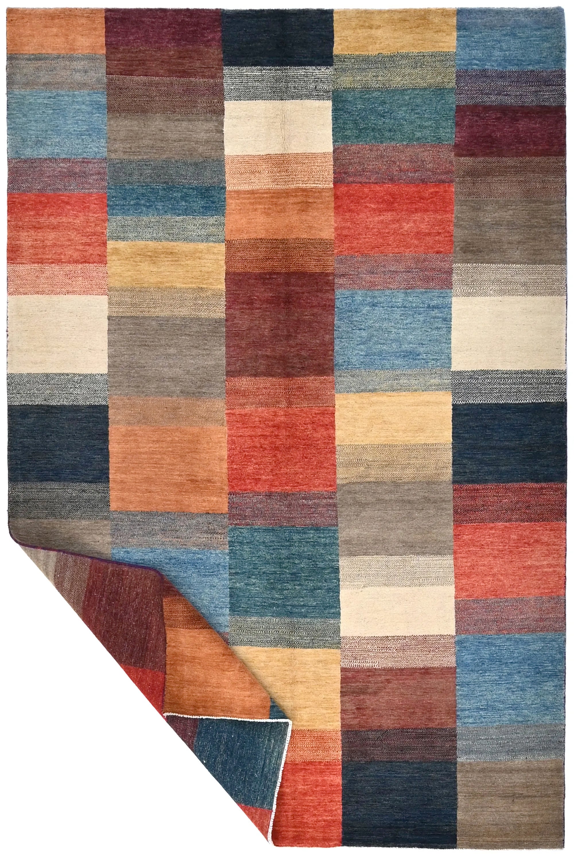 Gabbeh rugs are renowned for their unique charm and authentic craftsmanship. Due to their growing popularity, they are now also produced in Afghanistan, where skilled weavers create them with a denser knot structure and a slightly thinner profile compared to traditional Persian Gabbeh rugs. Despite the lighter construction, the same traditional knotting techniques used in the Persian originals are preserved, ensuring the rugs maintain their authentic character and durability. The result is a beautiful, lighter Gabbeh rug featuring fine detailing, natural colors, and a warm, vibrant appearance that enhances any space.