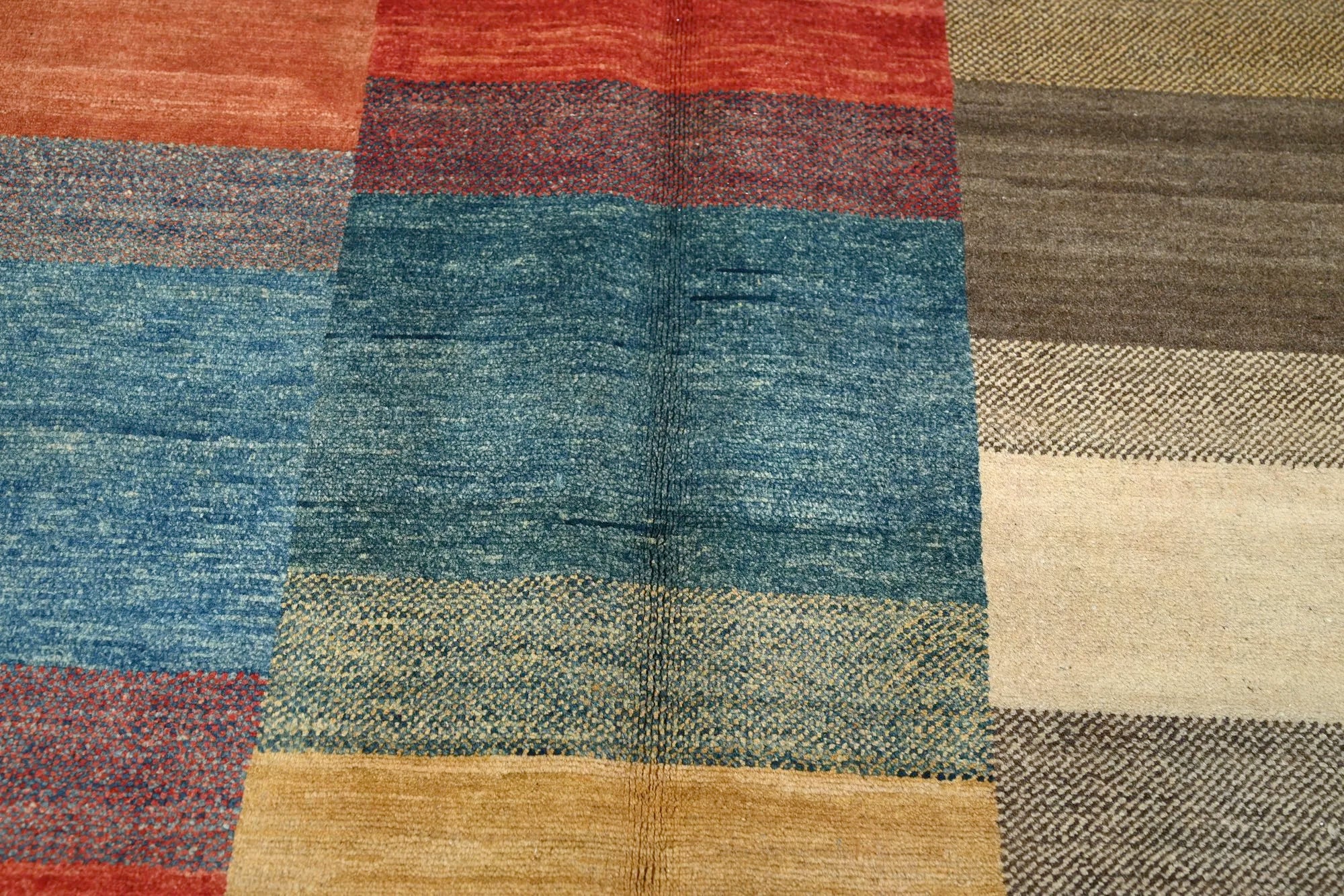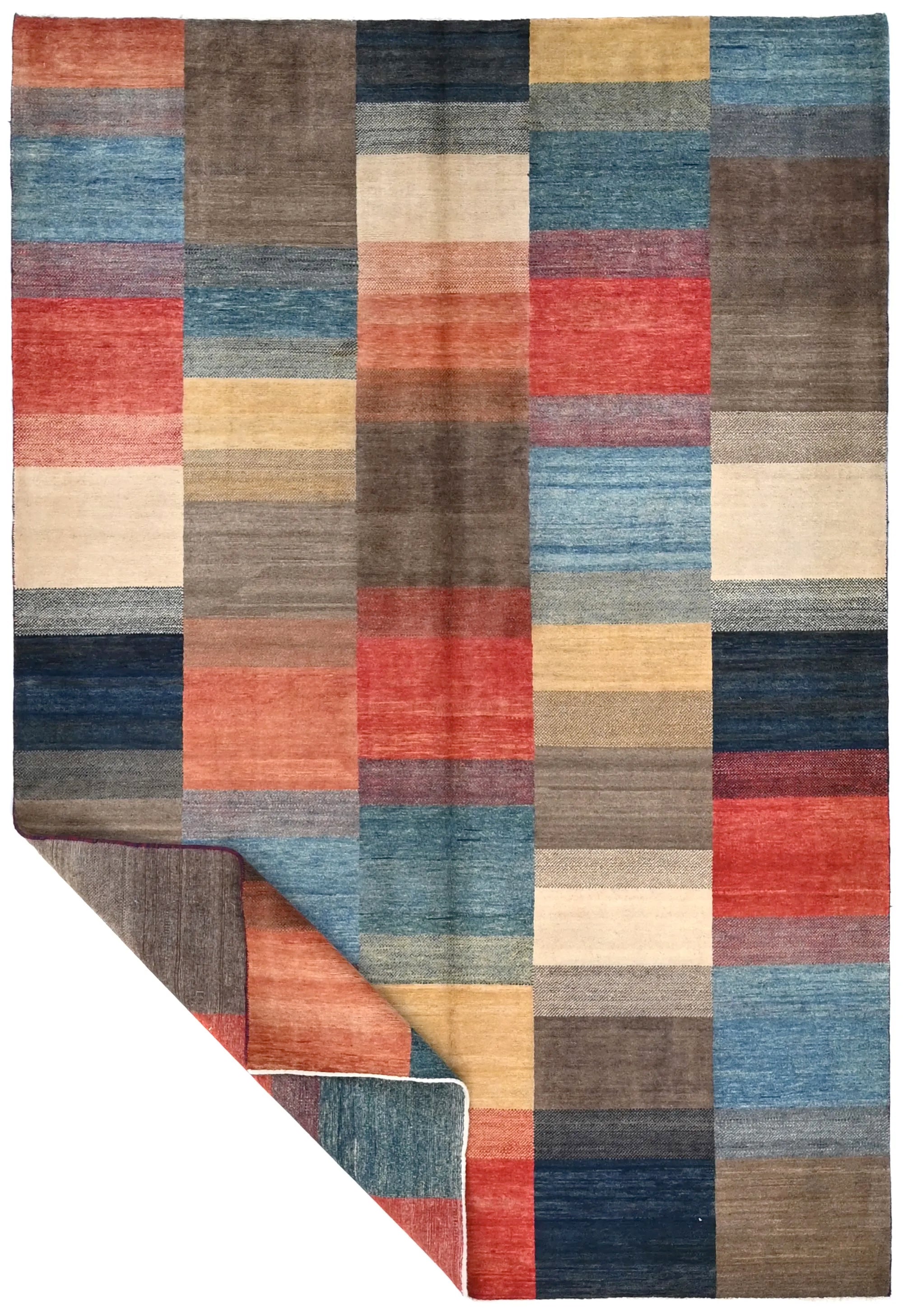 Gabbeh rugs are renowned for their unique charm and authentic craftsmanship. Due to their growing popularity, they are now also produced in Afghanistan, where skilled weavers create them with a denser knot structure and a slightly thinner profile compared to traditional Persian Gabbeh rugs. Despite the lighter construction, the same traditional knotting techniques used in the Persian originals are preserved, ensuring the rugs maintain their authentic character and durability. The result is a beautiful, lighter Gabbeh rug featuring fine detailing, natural colors, and a warm, vibrant appearance that enhances any space.