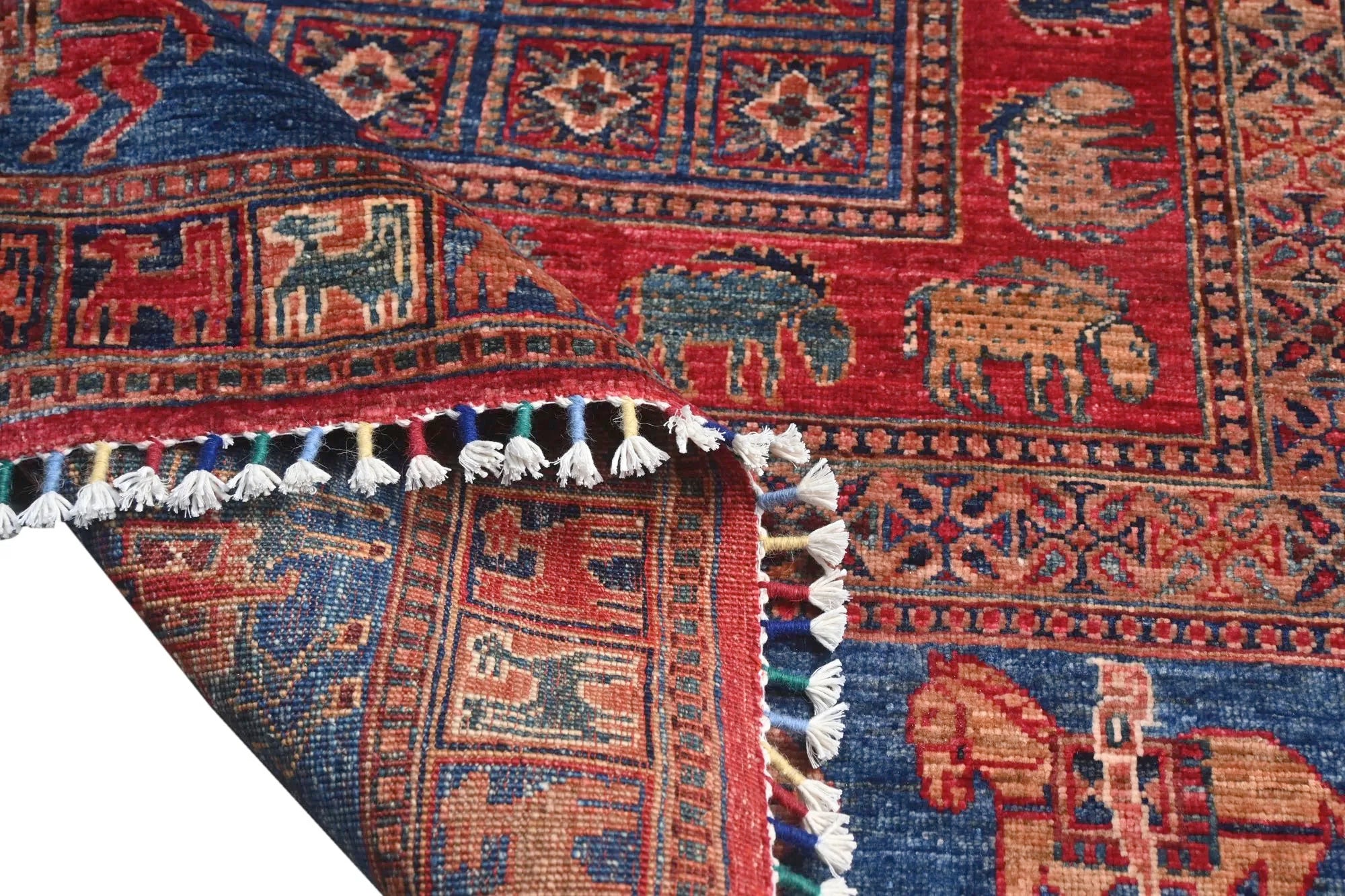 This rug is newly produced but features one of the most iconic and historically admired patterns: the Pazarok design, inspired by the famous antique rug displayed in the museum of Saint Petersburg. Recreated with modern precision and crafted in premium Khorjin quality, this rug offers a dense, durable, and luxuriously soft texture that honors its traditional roots while meeting contemporary standards. Every detail- the geometric motifs, folkloric shapes, and classic pattern structure- has been carefully reinterpreted to bring out both authenticity and modern artistic expression. Handwoven from hand-spun wool and dyed with natural vegetable dyes, the rug displays a beautifully organic sheen and a rich handmade character. This piece is perfect for anyone who appreciates historic design but wants the practicality, freshness, and longevity of a newly hand-knotted rug. A piece of cultural heritage — brought to life for today’s interiors.