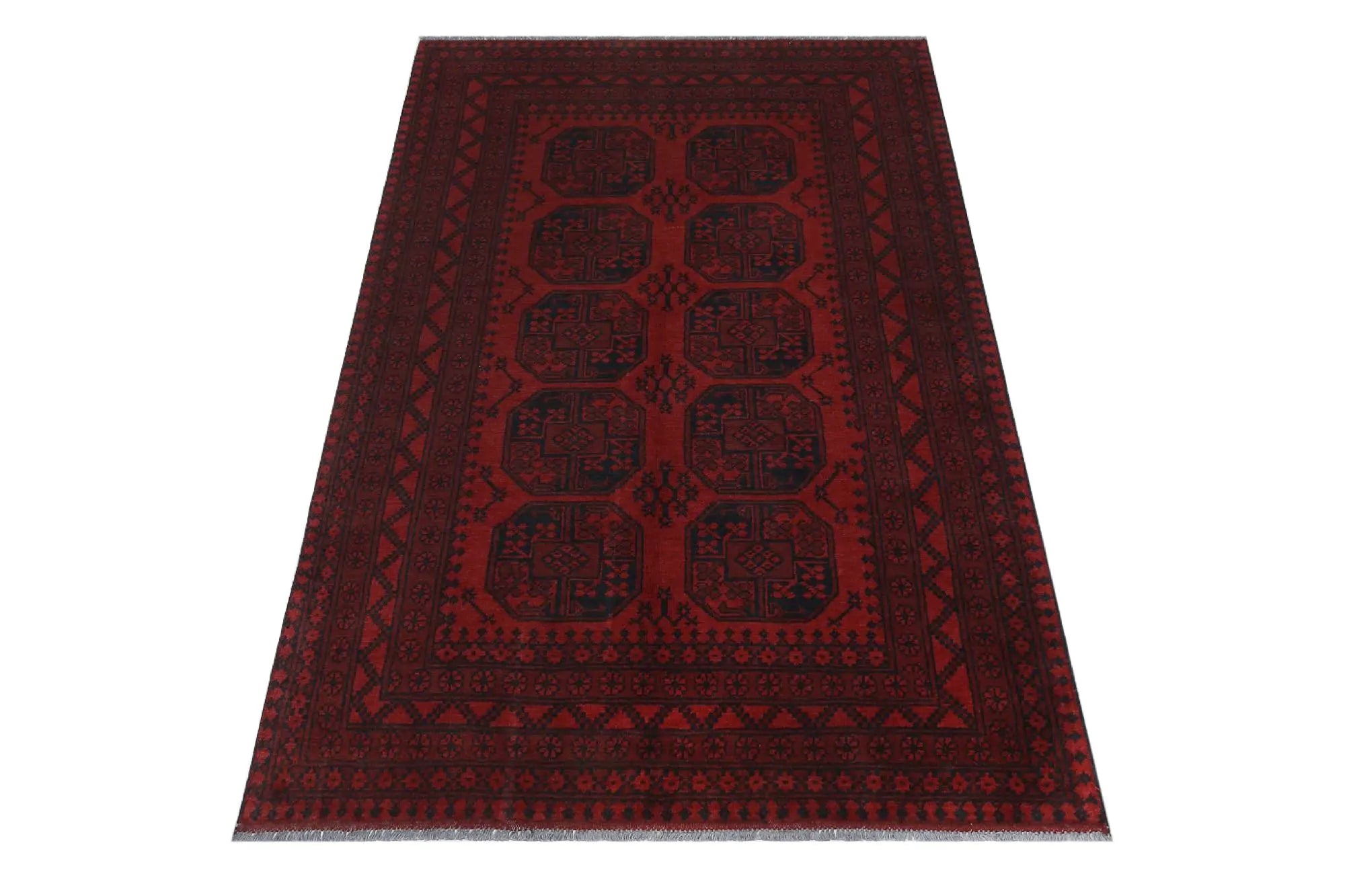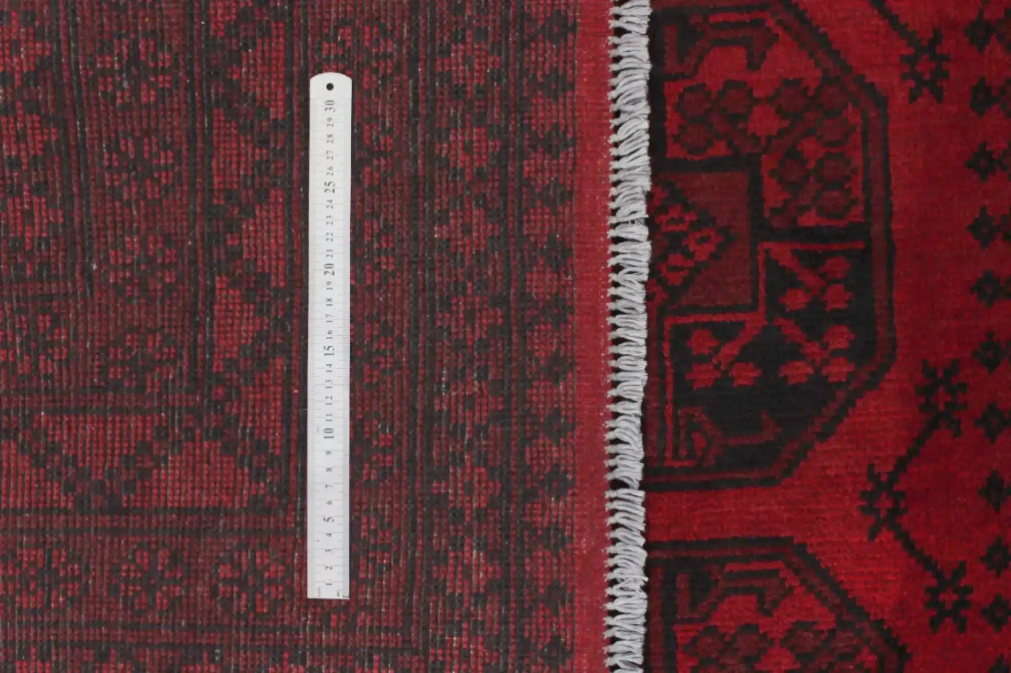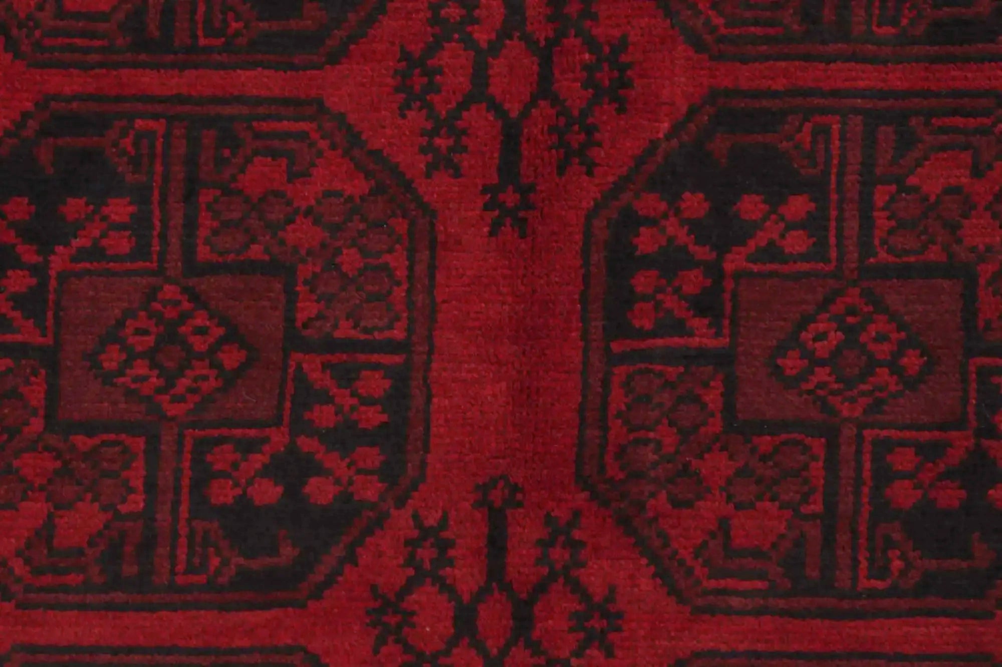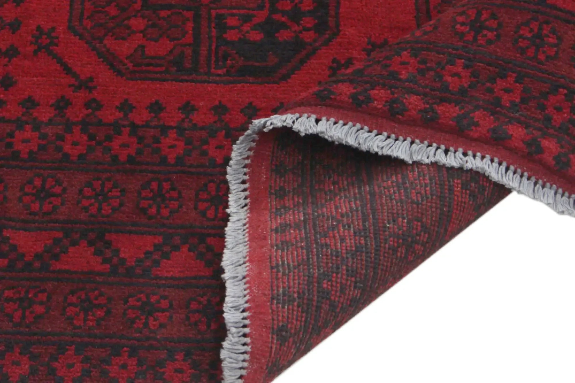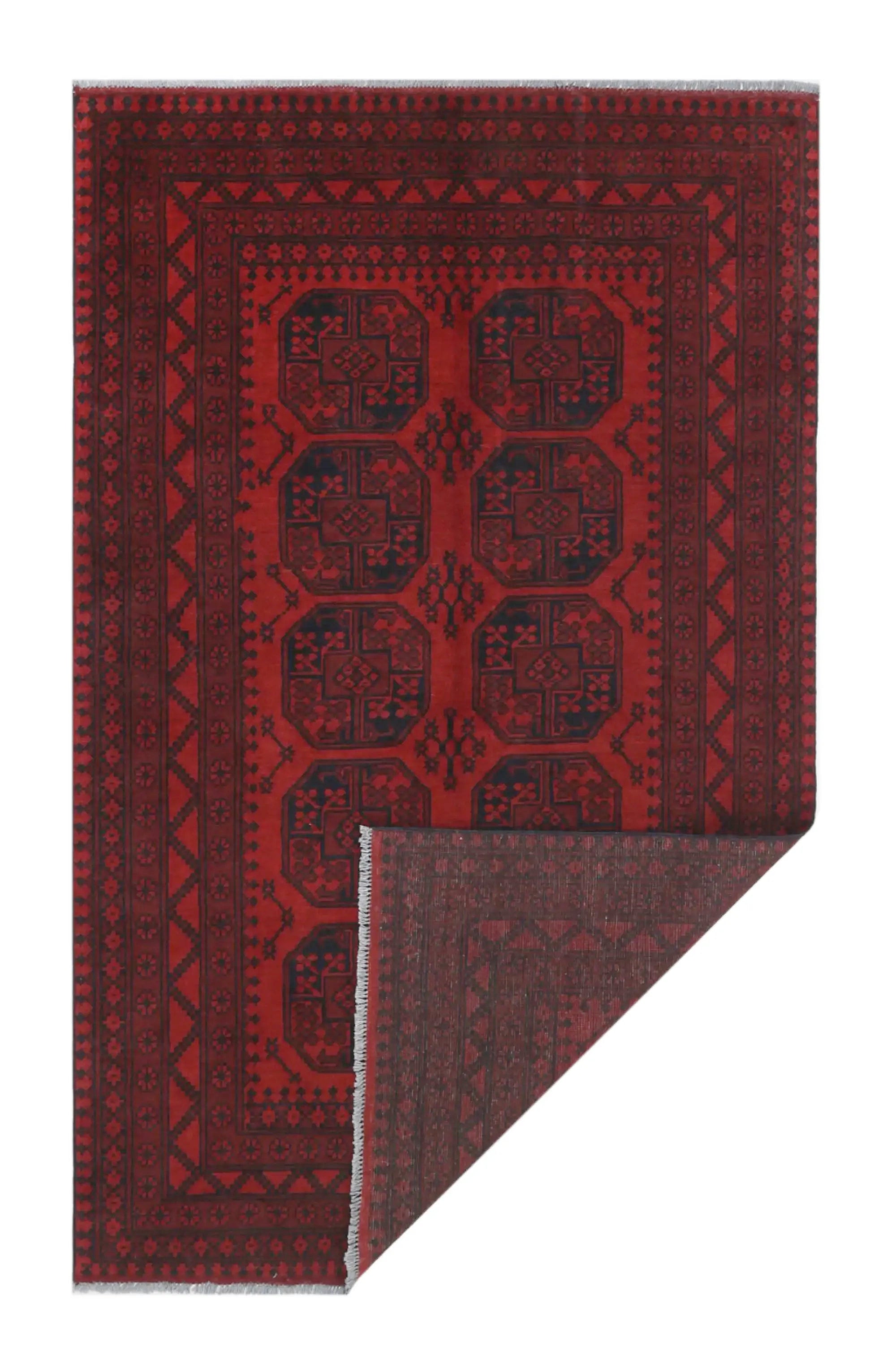 Discover this exquisite hand-knotted Akche rug from Afghanistan, crafted in rich, deep red and black tones that bring warmth and elegance to any interior. Made from 100% pure wool, including the fringes, it contains no synthetic materials, giving it a naturally soft, durable, and authentic feel. The traditional “elephant foot” motif, characteristic of Akche rugs, adds a timeless and culturally rich expression. A perfect choice for anyone seeking a rug that unites craftsmanship, character, and classic oriental beauty.