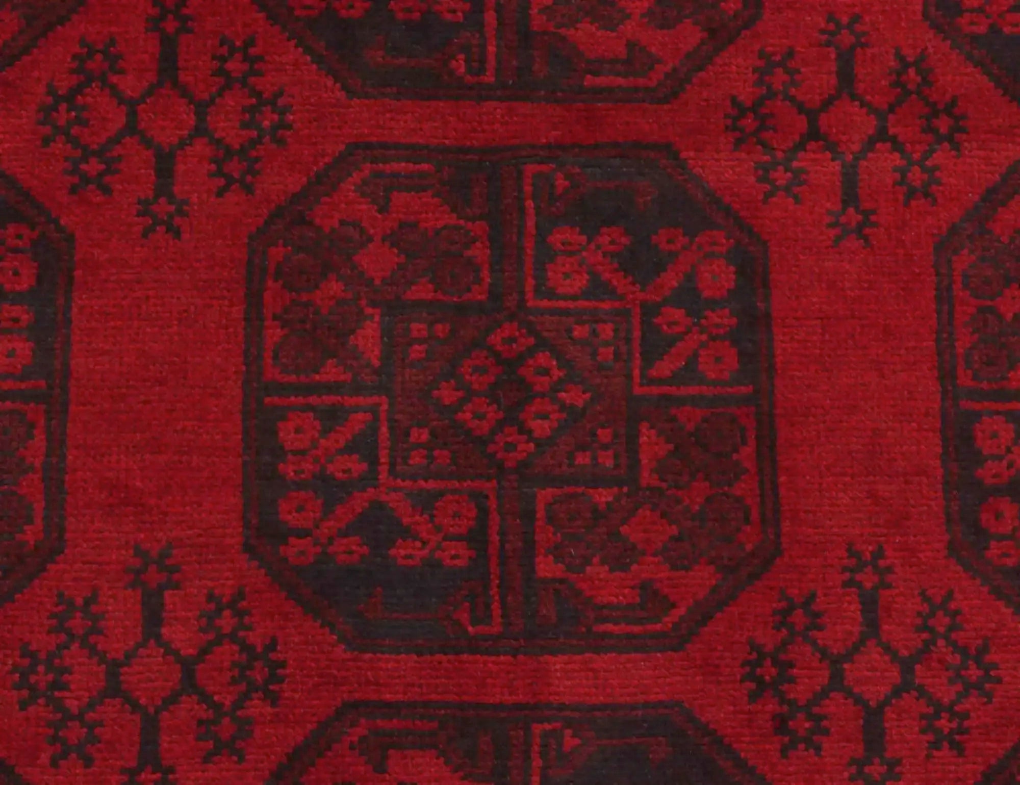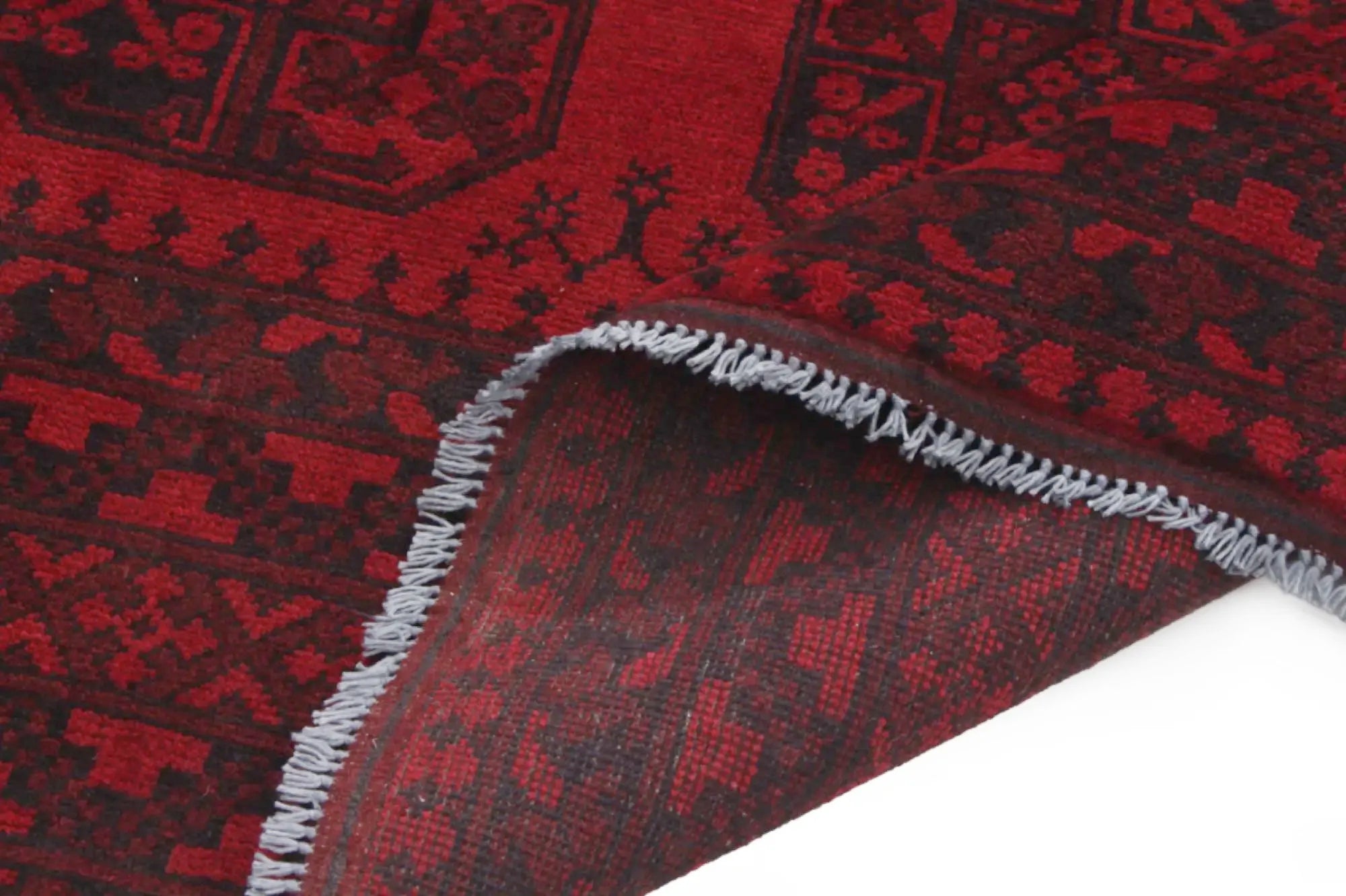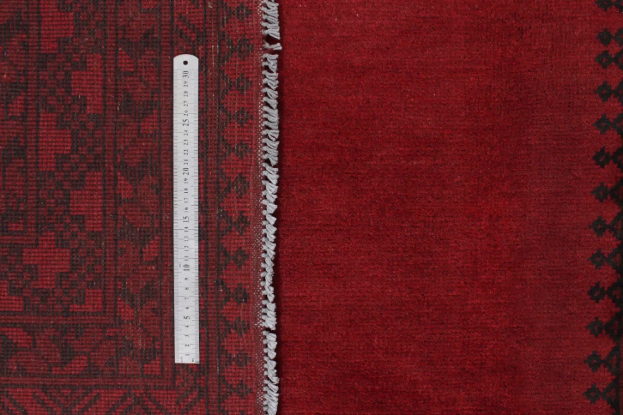 Discover this exquisite hand-knotted Akche rug from Afghanistan, crafted in rich, deep red and black tones that bring warmth and elegance to any interior. Made from 100% pure wool, including the fringes, it contains no synthetic materials, giving it a naturally soft, durable, and authentic feel. The traditional “elephant foot” motif, characteristic of Akche rugs, adds a timeless and culturally rich expression. A perfect choice for anyone seeking a rug that unites craftsmanship, character, and classic oriental beauty.