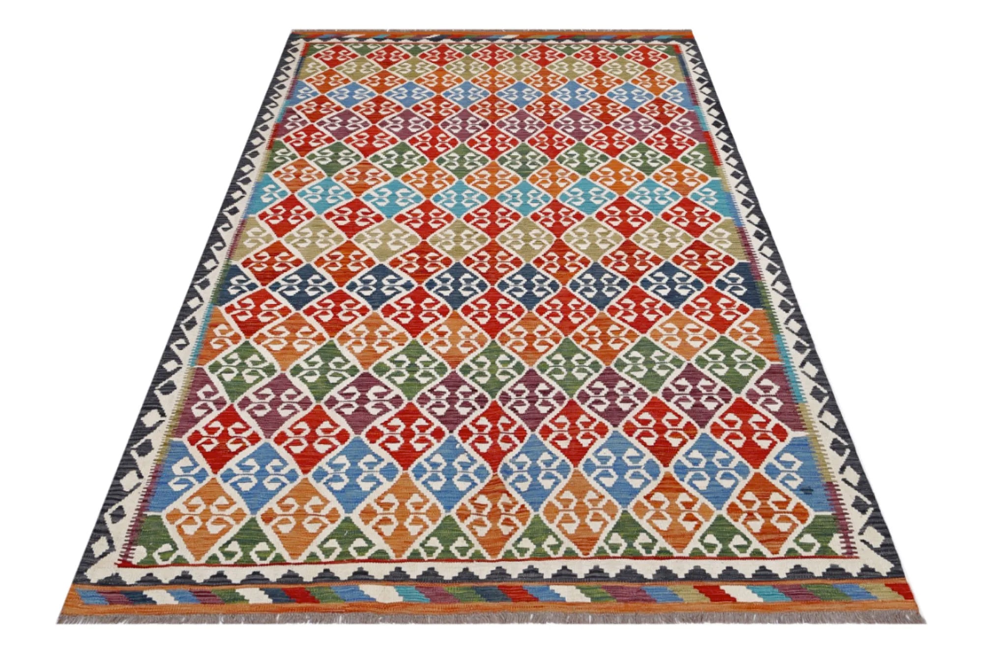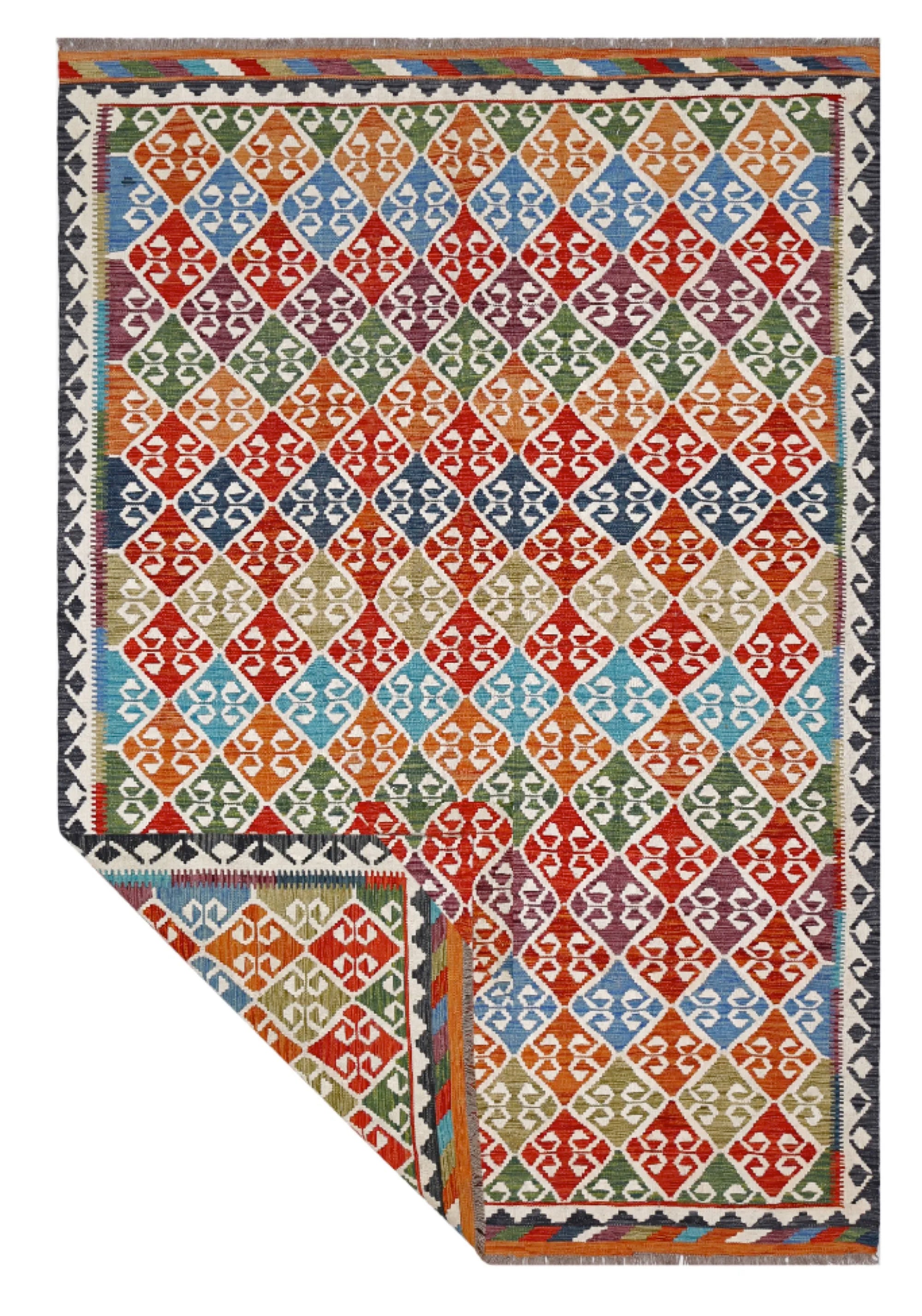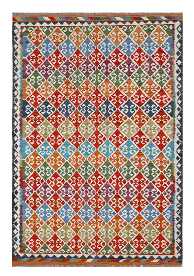 A Masterpiece of Afghan Craftsmanship with Caucasian Inspiration. Kelim Chobi rugs are a brilliant e x ample of traditional Afghan craftsmanship, combining both quality and aesthetic finesse. These rugs are uniquely handwoven in Afghanistan and carry a rich history of craftsmanship, where traditional techniques have been passed down through generations. What makes Kelim Chobi rugs particularly remarkable is their distinct design, heavily influenced by Caucasian patterns. The geometric shapes and symmetrical patterns, typical of Caucasian rugs, give Kelim Chobi rugs their unique and timeless character. The colors used in Kelim Chobi rugs are often subdued and natural, providing them with an elegant and sophisticated look. These colors are derived from natural dyes, which not only provide a durable and authentic color palette but also reflect a deep respect for nature and traditional methods. Each Kelim Chobi rug is handwoven with the utmost care and precision, ensuring high quality and durability. The rugs are flat-woven, giving them a smooth surface and making them both practical and easy to maintain. Thanks to their combination of Afghan craftsmanship and Caucasian design, Kelim Chobi rugs are a popular choice for those looking for a beautiful and timeless decorative element that can enhance any room. These rugs are not only practical floor coverings but also artworks that tell a story of tradition and culture. If you are looking for a rug that combines traditional craftsmanship with stylish design, Kelim Chobi rugs are an e x cellent choice. Their timeless beauty and durable quality make them a perfect investment for your home.