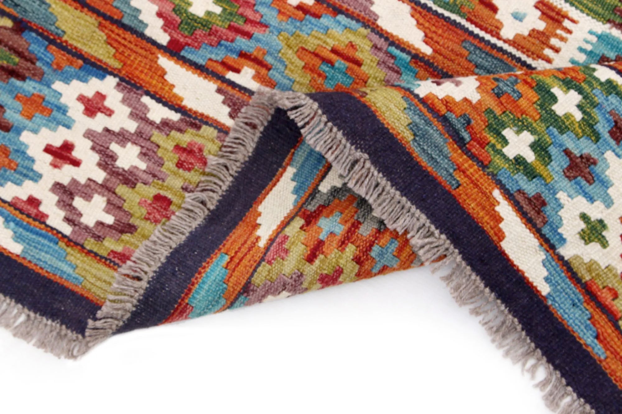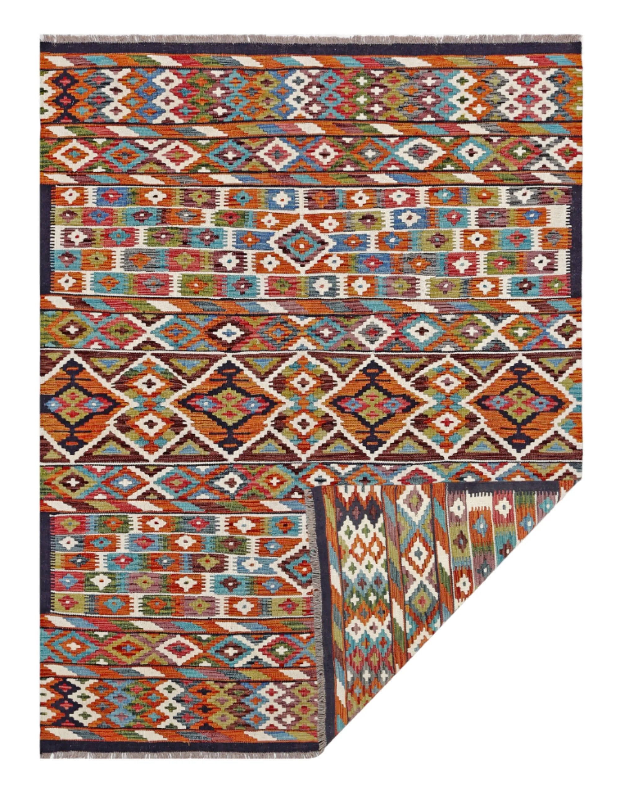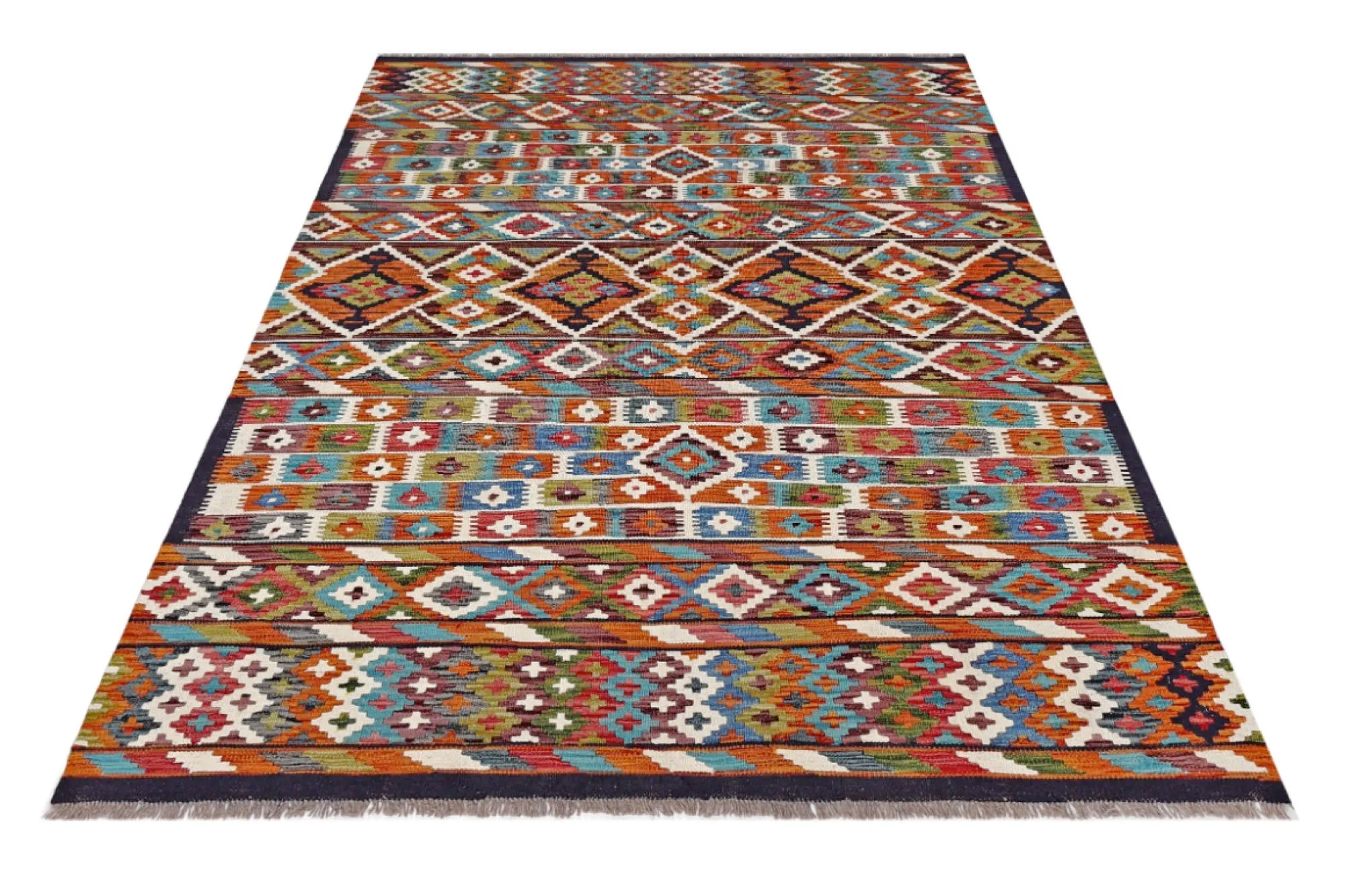 A Masterpiece of Afghan Craftsmanship with Caucasian Inspiration. Kelim Chobi rugs are a brilliant e x ample of traditional Afghan craftsmanship, combining both quality and aesthetic finesse. These rugs are uniquely handwoven in Afghanistan and carry a rich history of craftsmanship, where traditional techniques have been passed down through generations. What makes Kelim Chobi rugs particularly remarkable is their distinct design, heavily influenced by Caucasian patterns. The geometric shapes and symmetrical patterns, typical of Caucasian rugs, give Kelim Chobi rugs their unique and timeless character. The colors used in Kelim Chobi rugs are often subdued and natural, providing them with an elegant and sophisticated look. These colors are derived from natural dyes, which not only provide a durable and authentic color palette but also reflect a deep respect for nature and traditional methods. Each Kelim Chobi rug is handwoven with the utmost care and precision, ensuring high quality and durability. The rugs are flat-woven, giving them a smooth surface and making them both practical and easy to maintain. Thanks to their combination of Afghan craftsmanship and Caucasian design, Kelim Chobi rugs are a popular choice for those looking for a beautiful and timeless decorative element that can enhance any room. These rugs are not only practical floor coverings but also artworks that tell a story of tradition and culture. If you are looking for a rug that combines traditional craftsmanship with stylish design, Kelim Chobi rugs are an e x cellent choice. Their timeless beauty and durable quality make them a perfect investment for your home.
