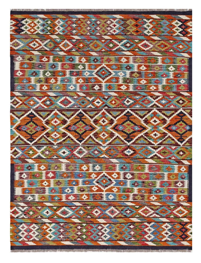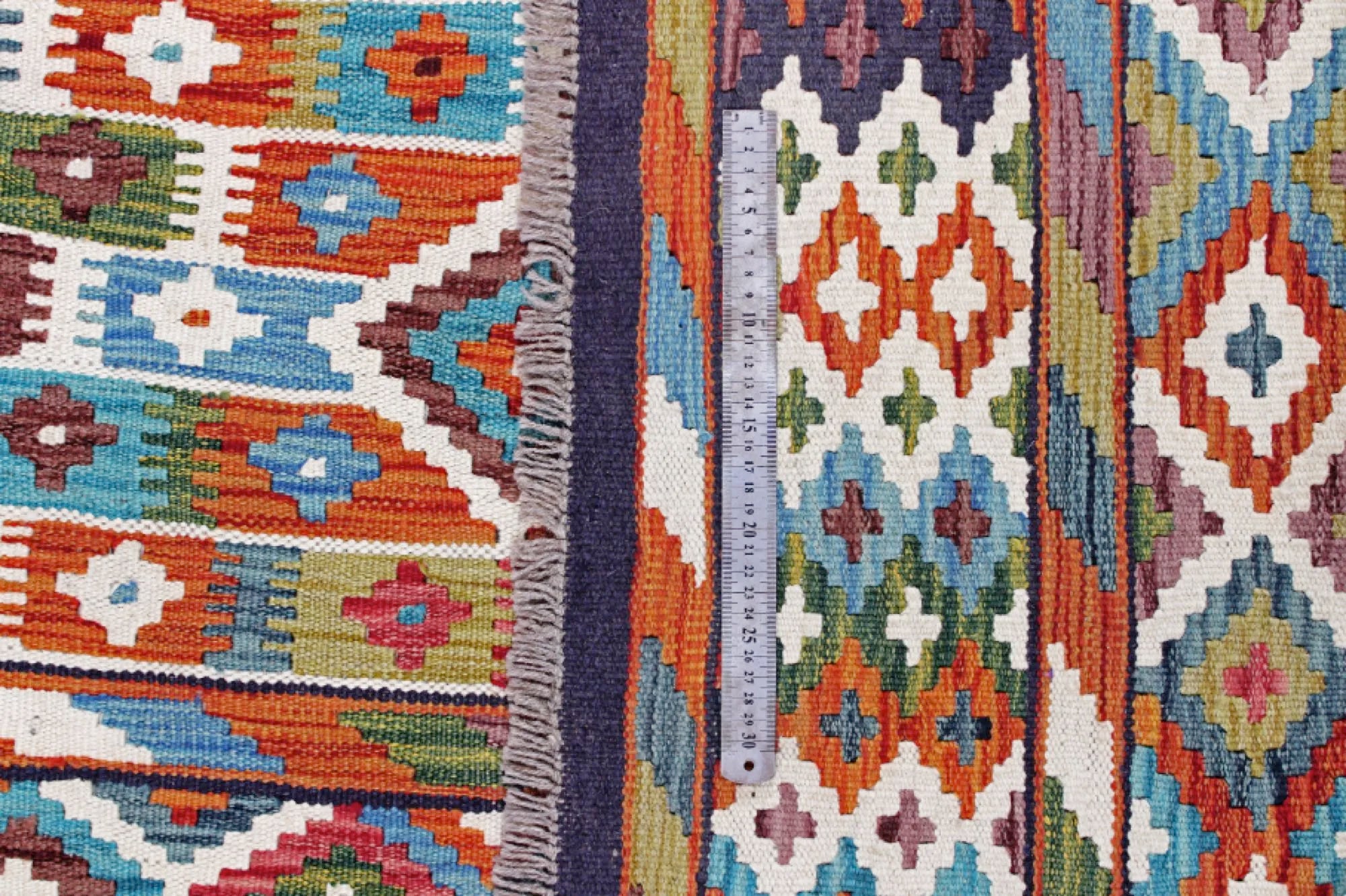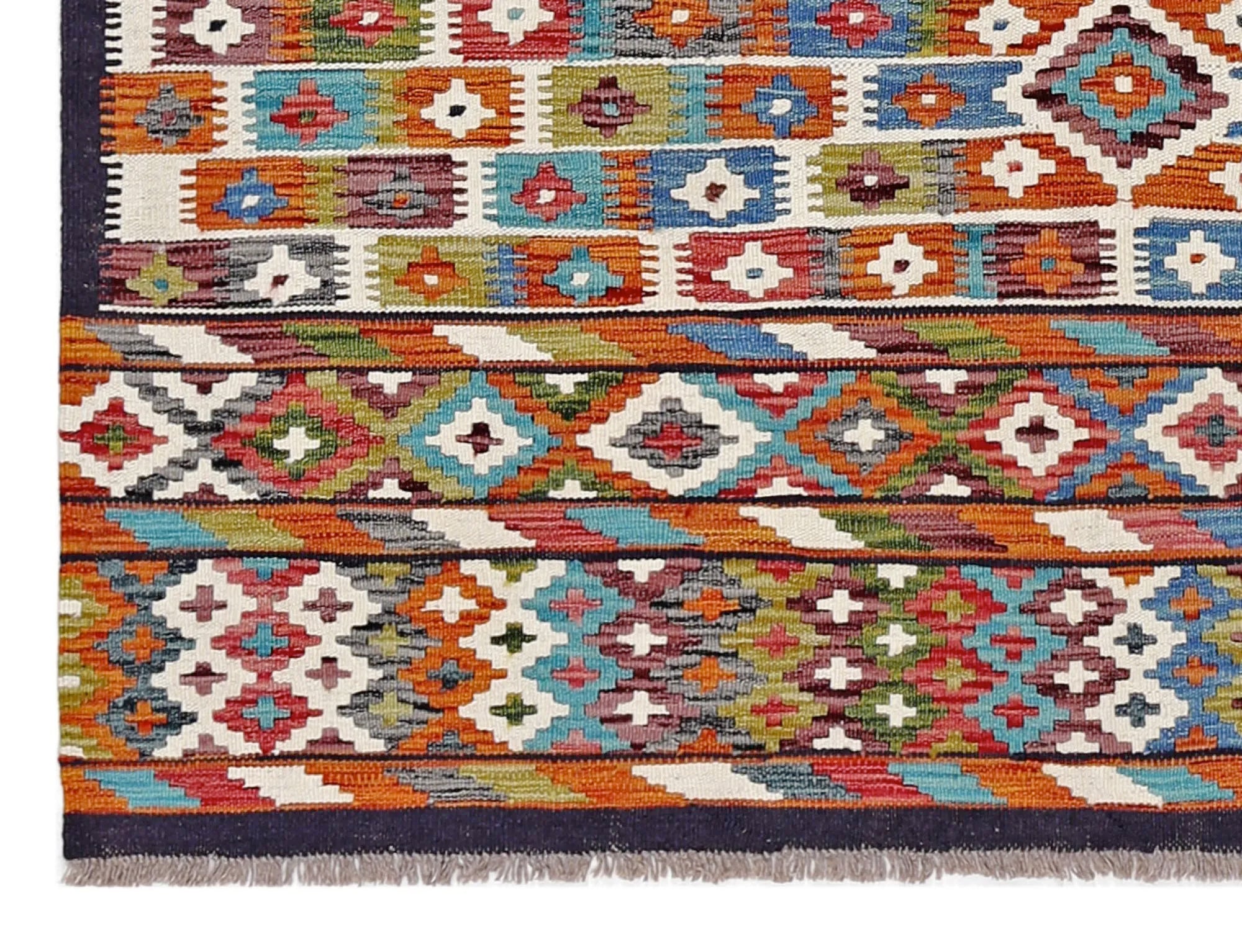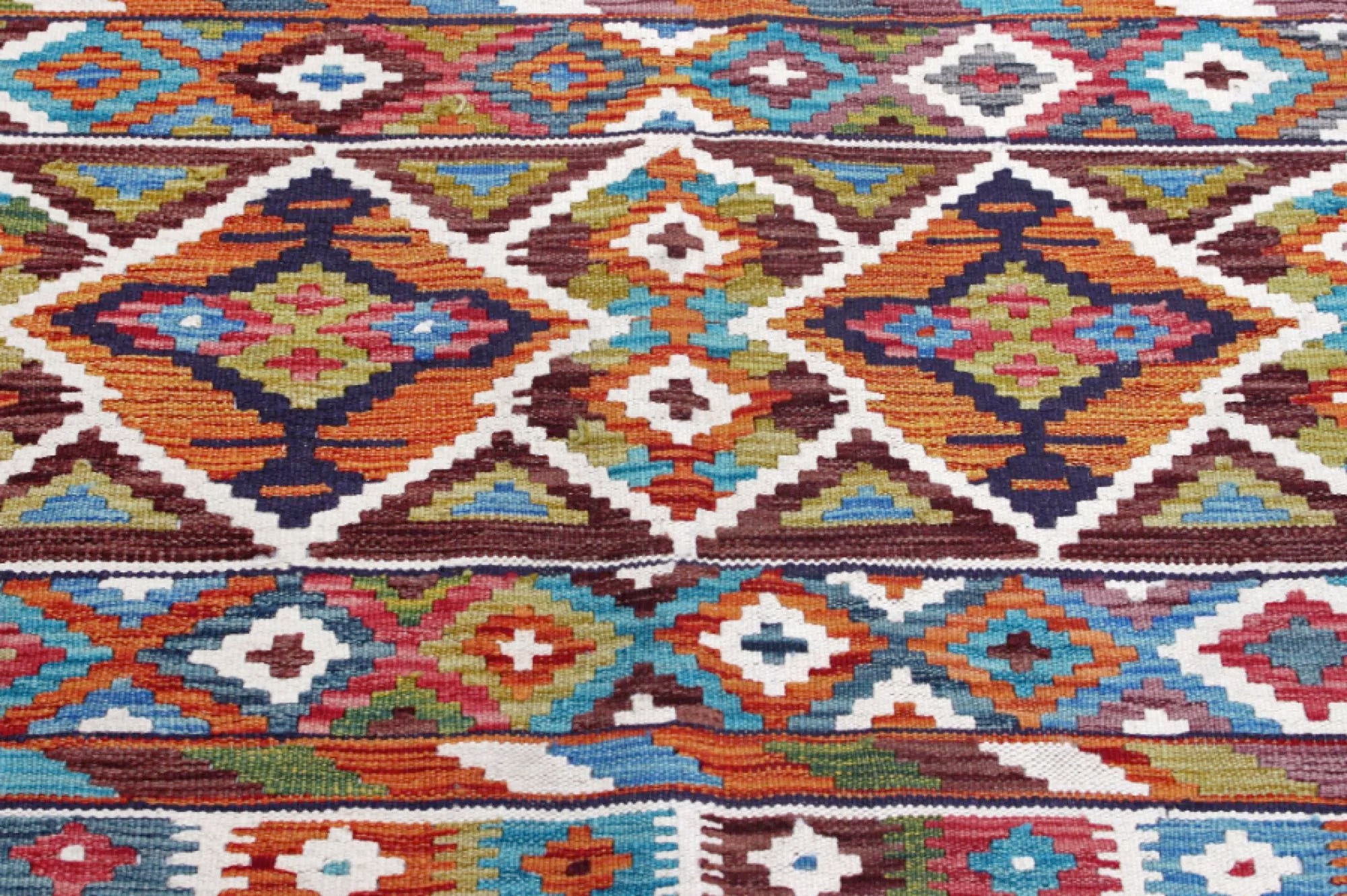 A Masterpiece of Afghan Craftsmanship with Caucasian Inspiration. Kelim Chobi rugs are a brilliant e x ample of traditional Afghan craftsmanship, combining both quality and aesthetic finesse. These rugs are uniquely handwoven in Afghanistan and carry a rich history of craftsmanship, where traditional techniques have been passed down through generations. What makes Kelim Chobi rugs particularly remarkable is their distinct design, heavily influenced by Caucasian patterns. The geometric shapes and symmetrical patterns, typical of Caucasian rugs, give Kelim Chobi rugs their unique and timeless character. The colors used in Kelim Chobi rugs are often subdued and natural, providing them with an elegant and sophisticated look. These colors are derived from natural dyes, which not only provide a durable and authentic color palette but also reflect a deep respect for nature and traditional methods. Each Kelim Chobi rug is handwoven with the utmost care and precision, ensuring high quality and durability. The rugs are flat-woven, giving them a smooth surface and making them both practical and easy to maintain. Thanks to their combination of Afghan craftsmanship and Caucasian design, Kelim Chobi rugs are a popular choice for those looking for a beautiful and timeless decorative element that can enhance any room. These rugs are not only practical floor coverings but also artworks that tell a story of tradition and culture. If you are looking for a rug that combines traditional craftsmanship with stylish design, Kelim Chobi rugs are an e x cellent choice. Their timeless beauty and durable quality make them a perfect investment for your home.
