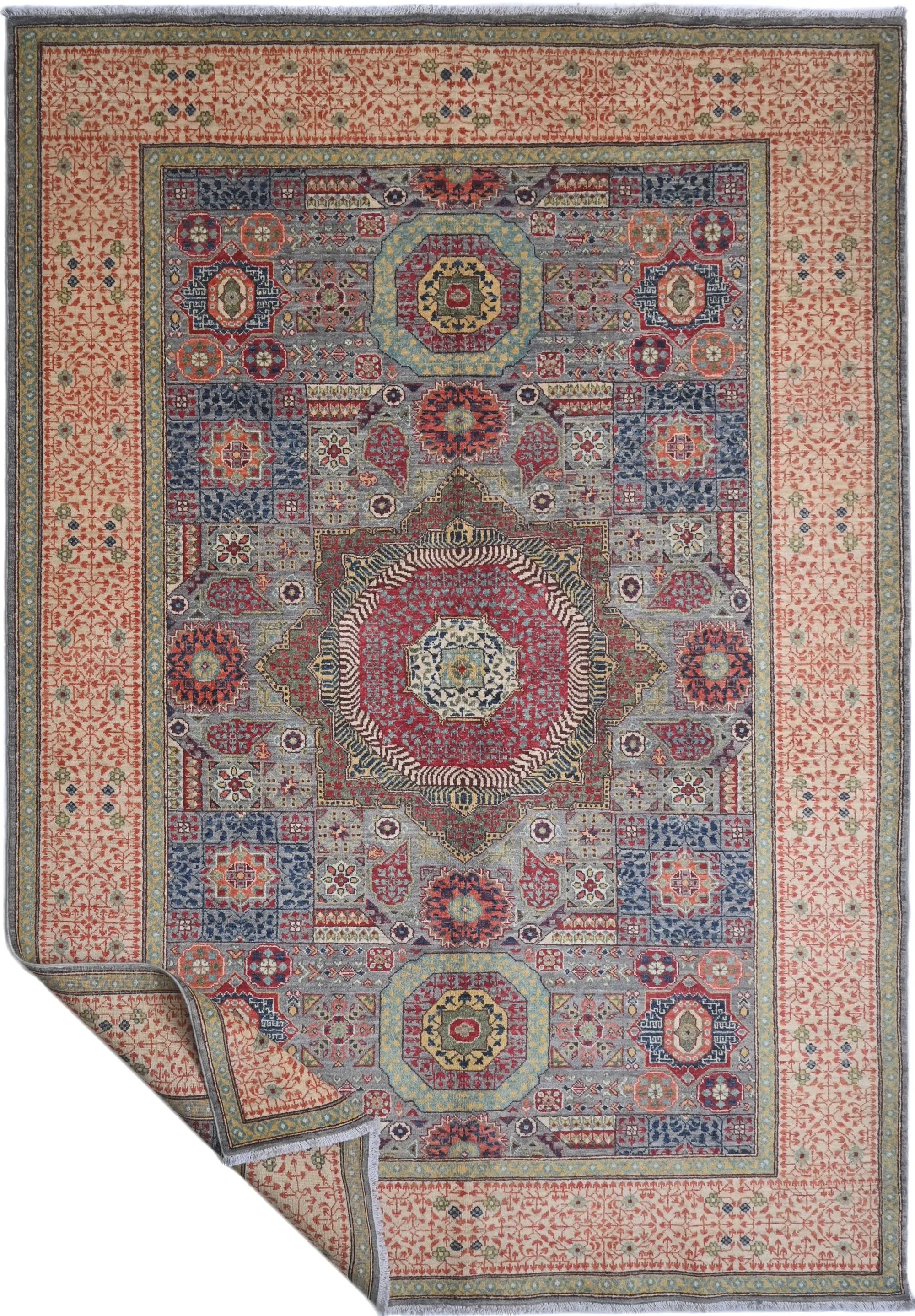 Let yourself be inspired by this rug, which is not only a decoration for your home but also a celebration of tradition and skilled artistry. Discover the timeless elegance of our Mamlok rug, a masterpiece that blends traditional craftsmanship with a modern touch. Hand-knotted with e x ceptional care in Afghanistan and Pakistan, it represents the pinnacle of quality in genuine rugs. Intricate designs: Each Mamlok rug is adorned with detailed, vibrant patterns that captivate the eye and create a unique ambiance. Bright colors: Natural plant-based dyes give the rug a radiant and enduring sheen. Dense knots: Double knots ensure outstanding durability and a lu x urious feel. Premium materials: Crafted from the finest high-quality wool, offering a soft yet durable finish. Fits any style: Whether your home has a modern or classic interior, the Mamlok rug is the perfect accent to elevate the room.