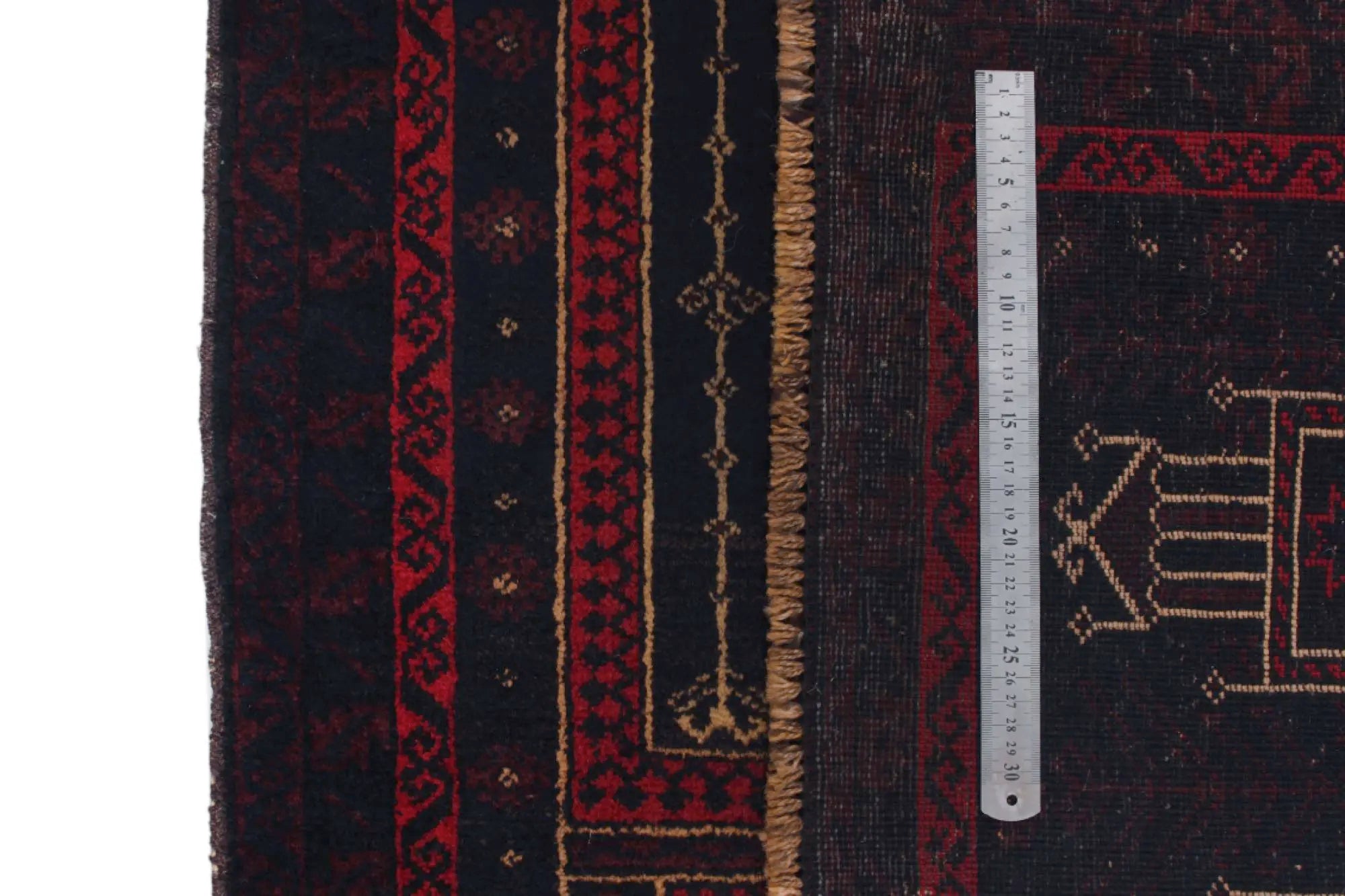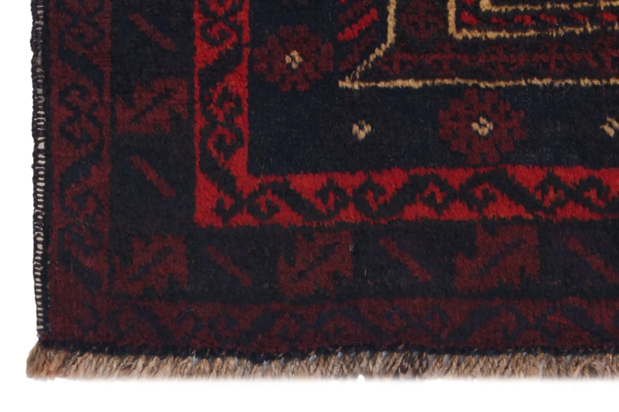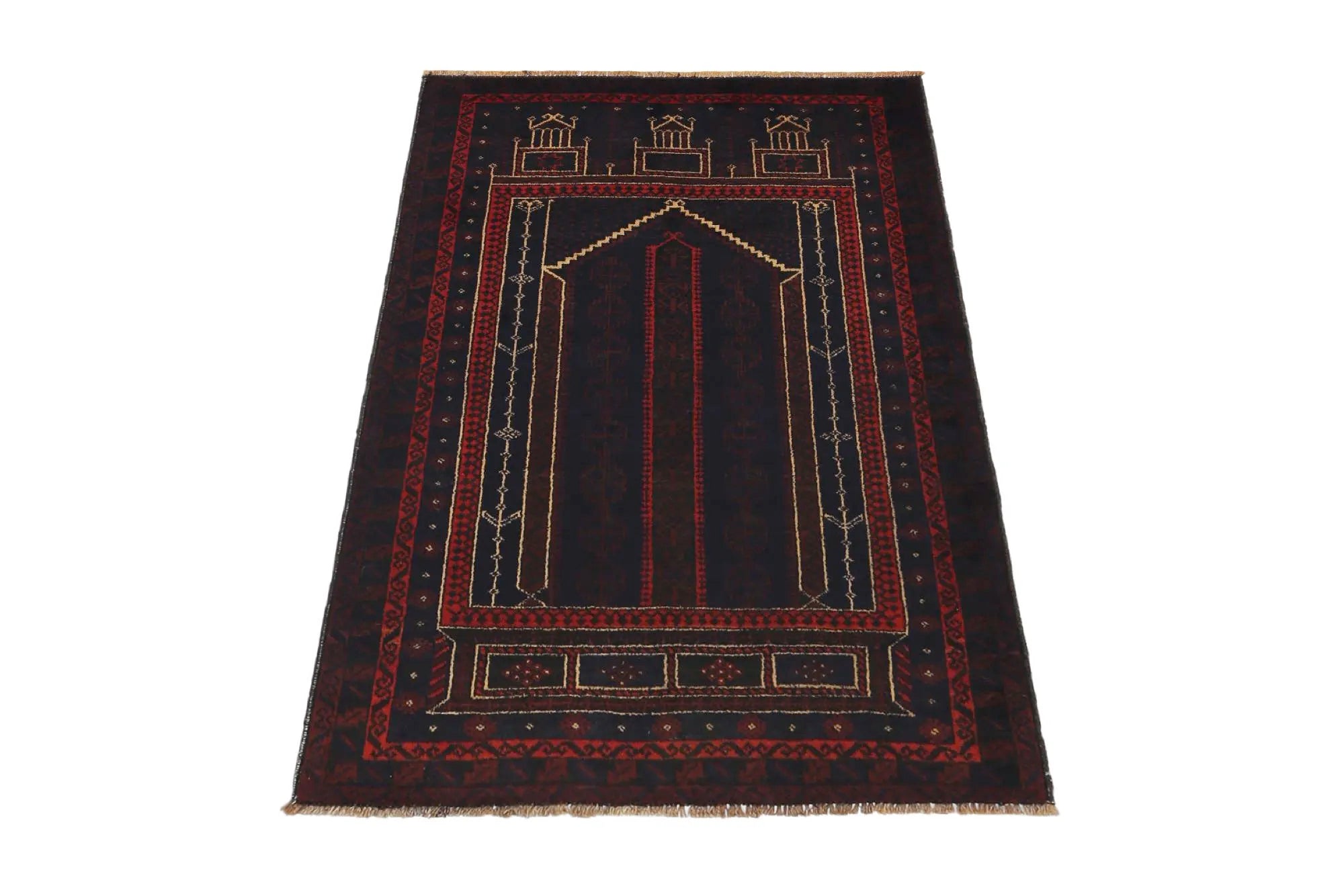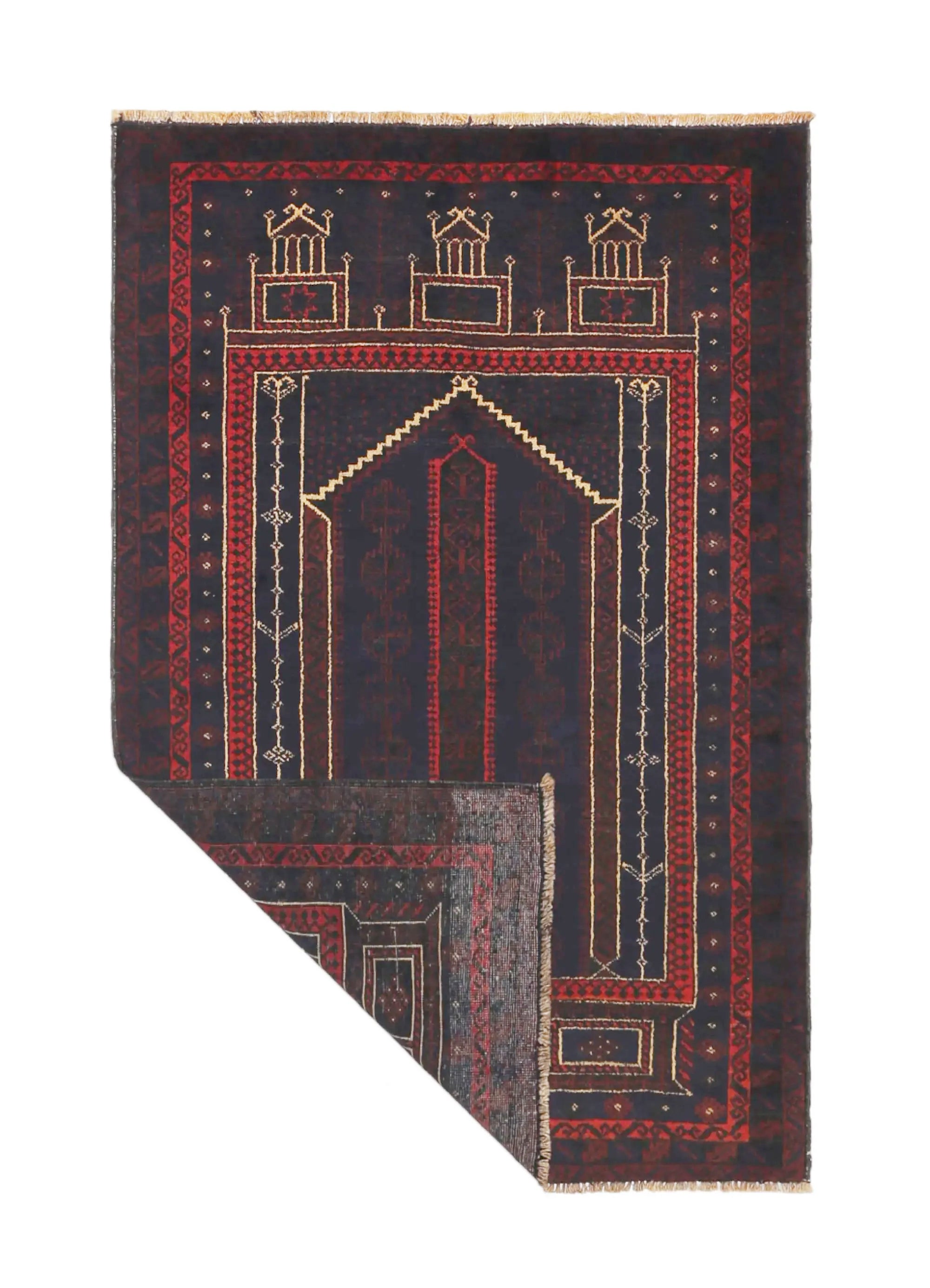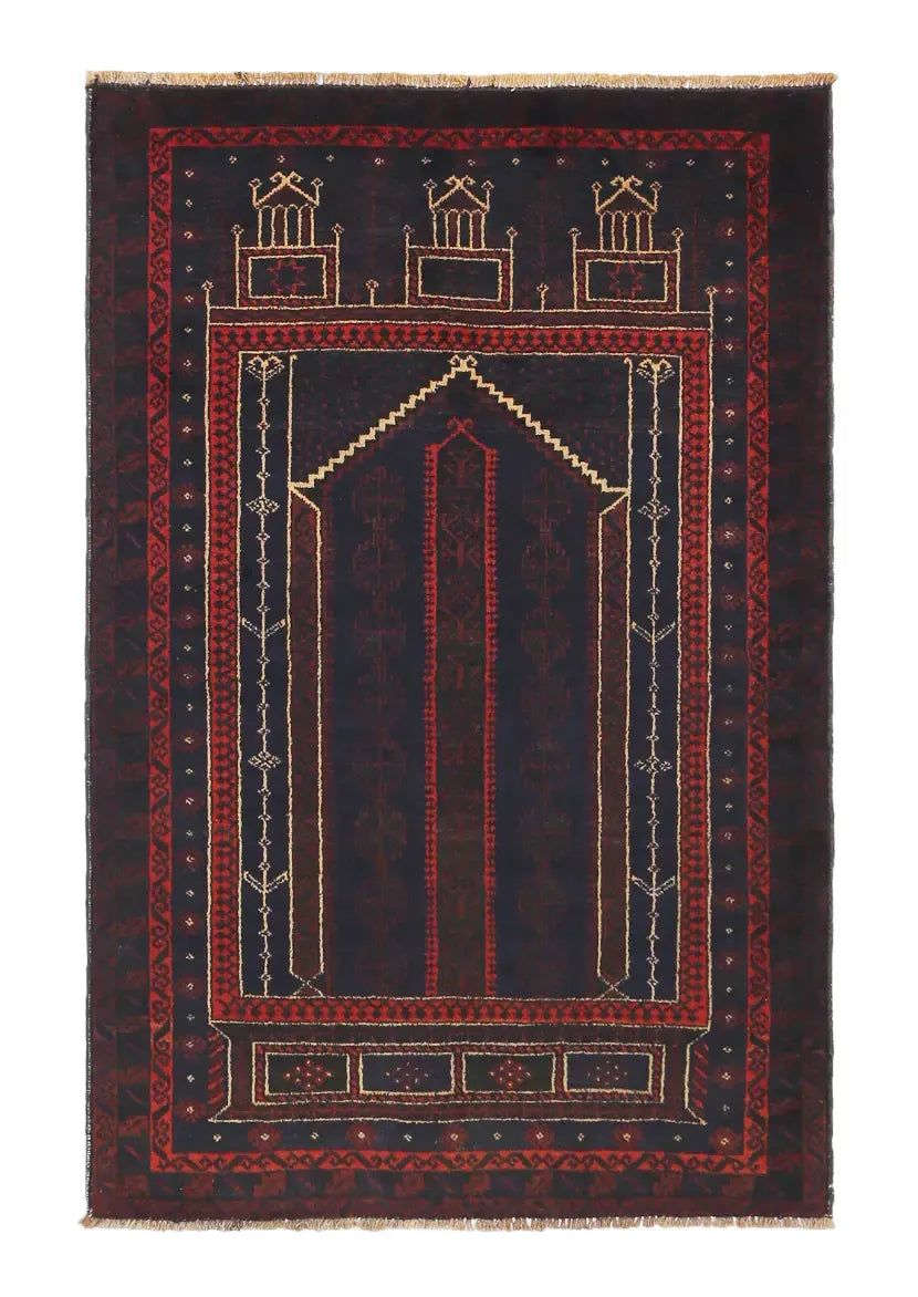 Baluch rugs originate from areas inhabited by the Baluch people, mainly in eastern Iran, western Afghanistan, and southwestern Pakistan. Baluch are known for their nomadic lifestyle, and their rugs reflect this cultural and geographical diversity. Baluch rugs often have intricate geometric patterns and sometimes stylized motifs that represent nature, such as flowers and animals. Common patterns include guls and octagons. Typical colors include deep red, blue, and brown, often combined with white and black accents to create contrast. These rugs are usually hand-woven with wool on a cotton base, giving them both durability and softness. Wool is the most common material used, but sometimes goat hair or silk is also used. Traditionally, these rugs are woven by hand on horizontal or vertical looms, a process that can take several months depending on the size and comple x ity of the rug. Baluch rugs were primarily used as floor coverings in nomadic tents, but today they are also used as decorative wall hangings and sometimes as prayer mats. Many of the patterns and colors have symbolic meanings, such as protective amulets or symbols of prosperity and fertility. Baluch rugs are not only practical items but also works of art that tell a rich story about the people and cultures that created them.