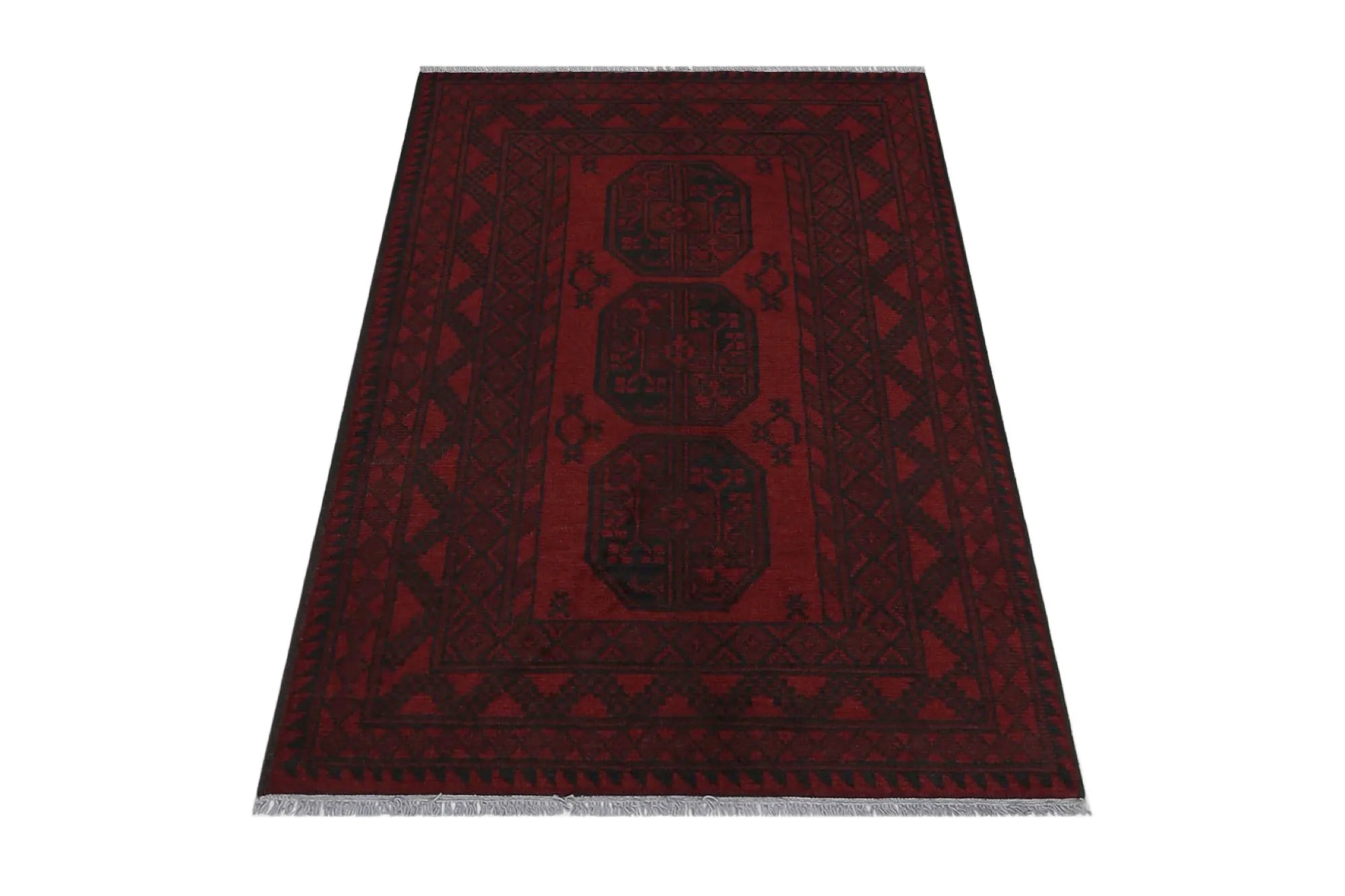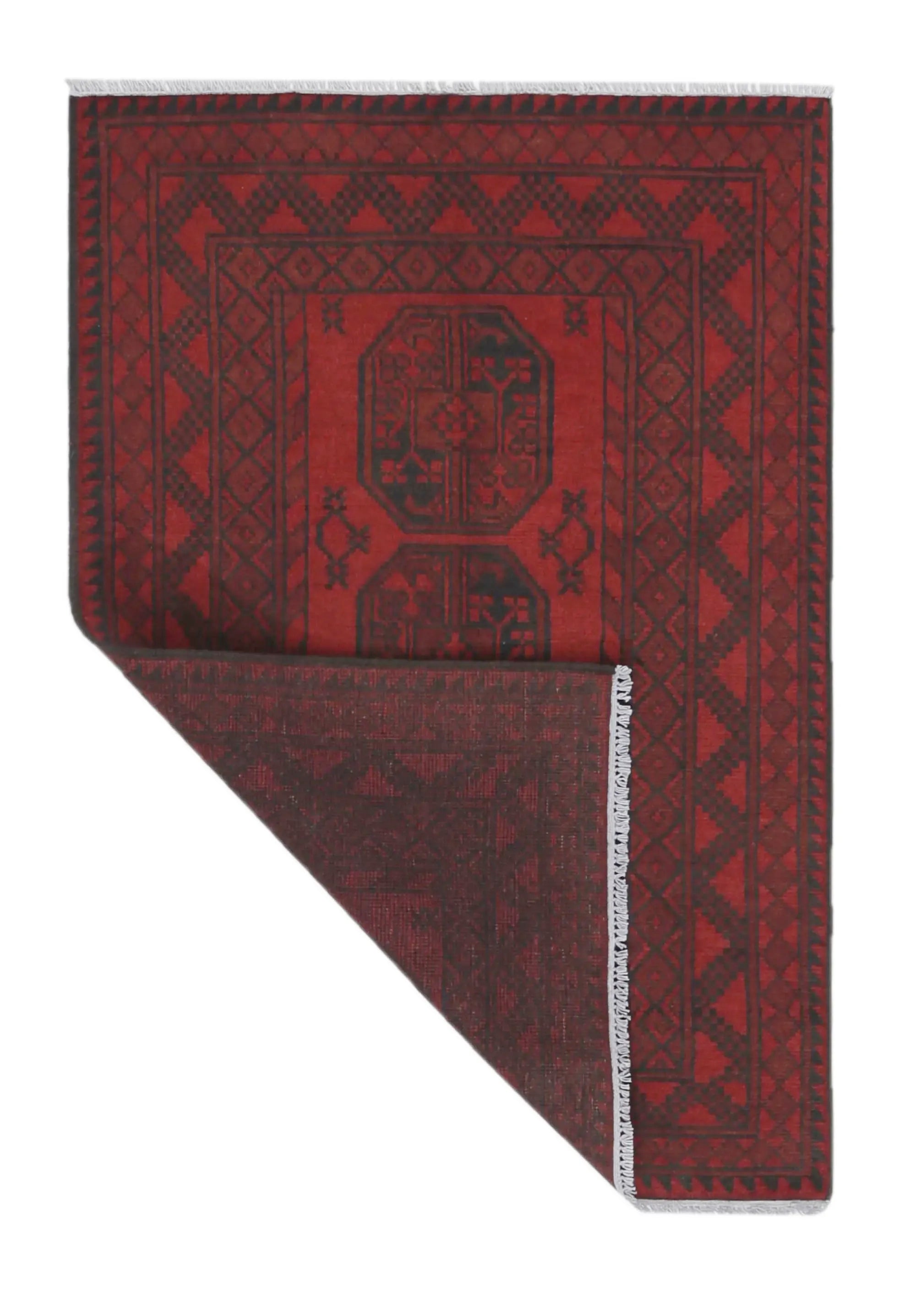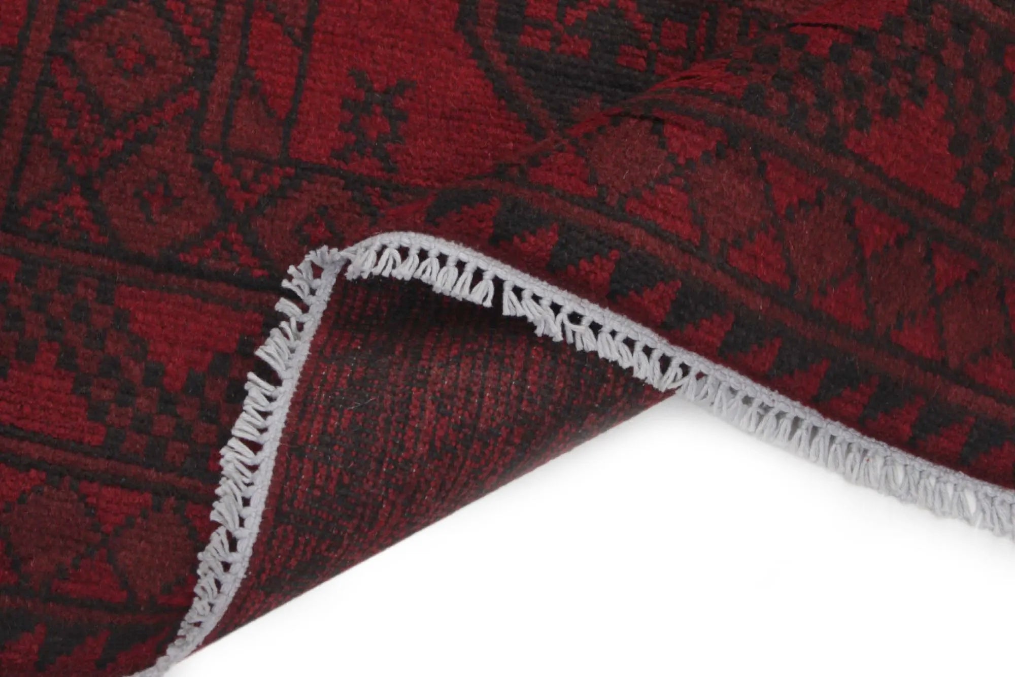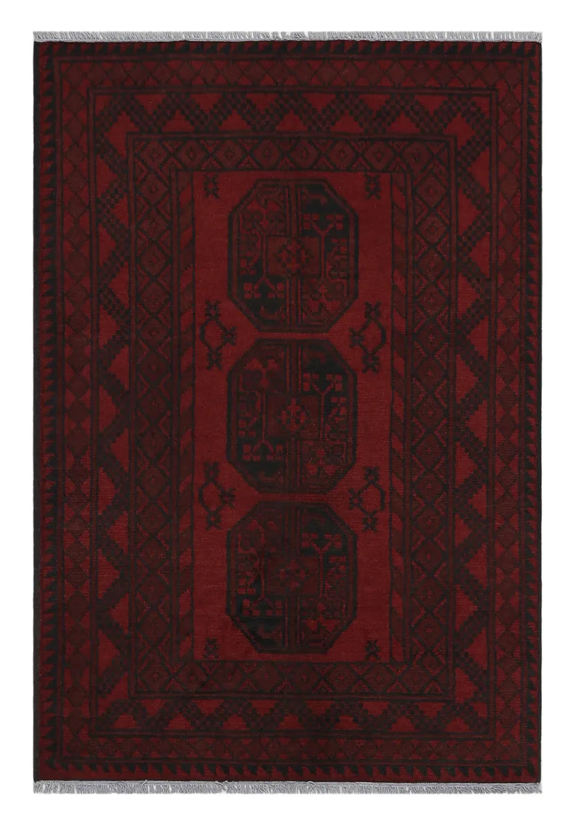 Discover this exquisite hand-knotted Akche rug from Afghanistan, crafted in rich, deep red and black tones that bring warmth and elegance to any interior. Made from 100% pure wool, including the fringes, it contains no synthetic materials, giving it a naturally soft, durable, and authentic feel. The traditional “elephant foot” motif, characteristic of Akche rugs, adds a timeless and culturally rich expression. A perfect choice for anyone seeking a rug that unites craftsmanship, character, and classic oriental beauty.