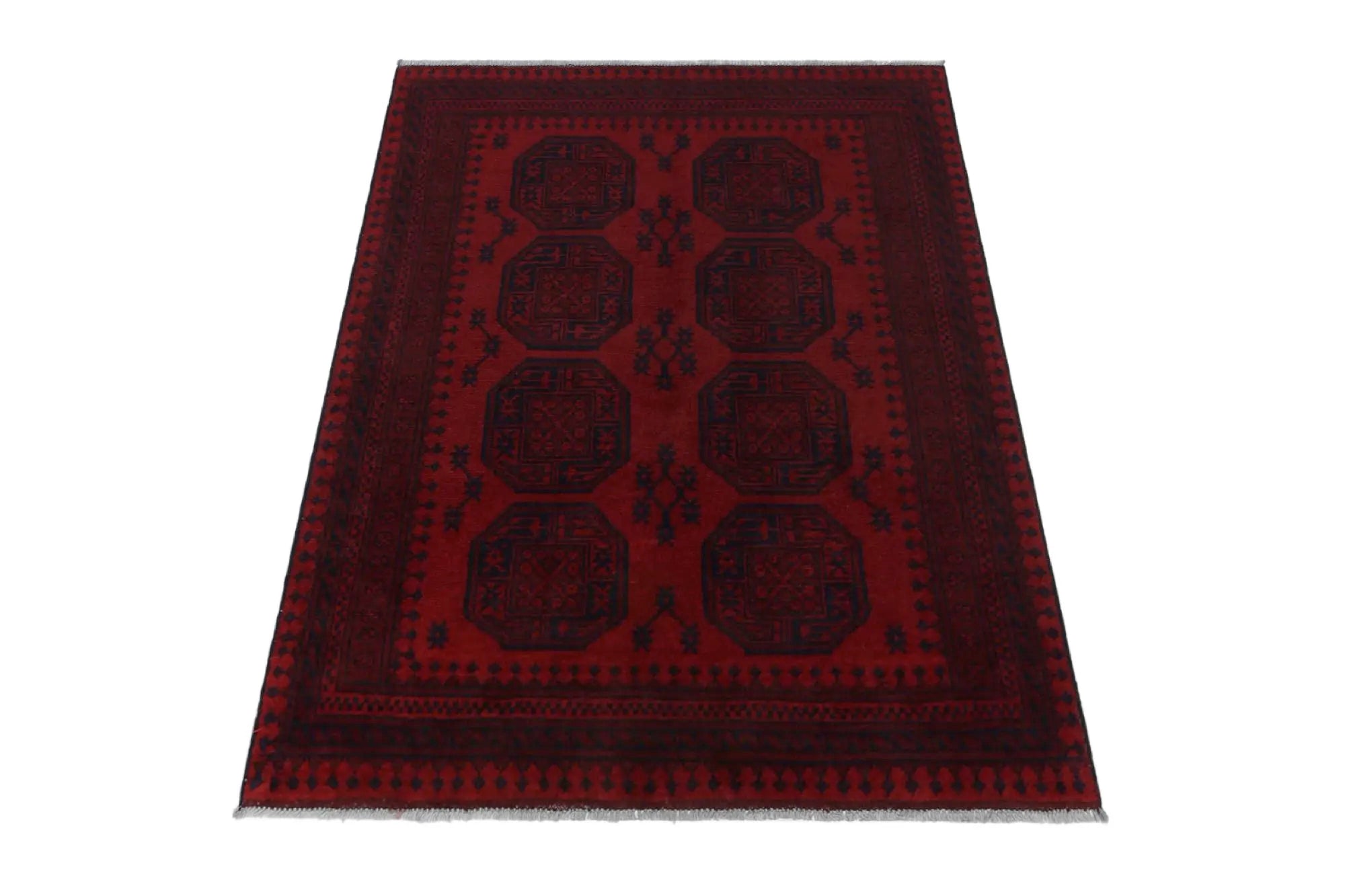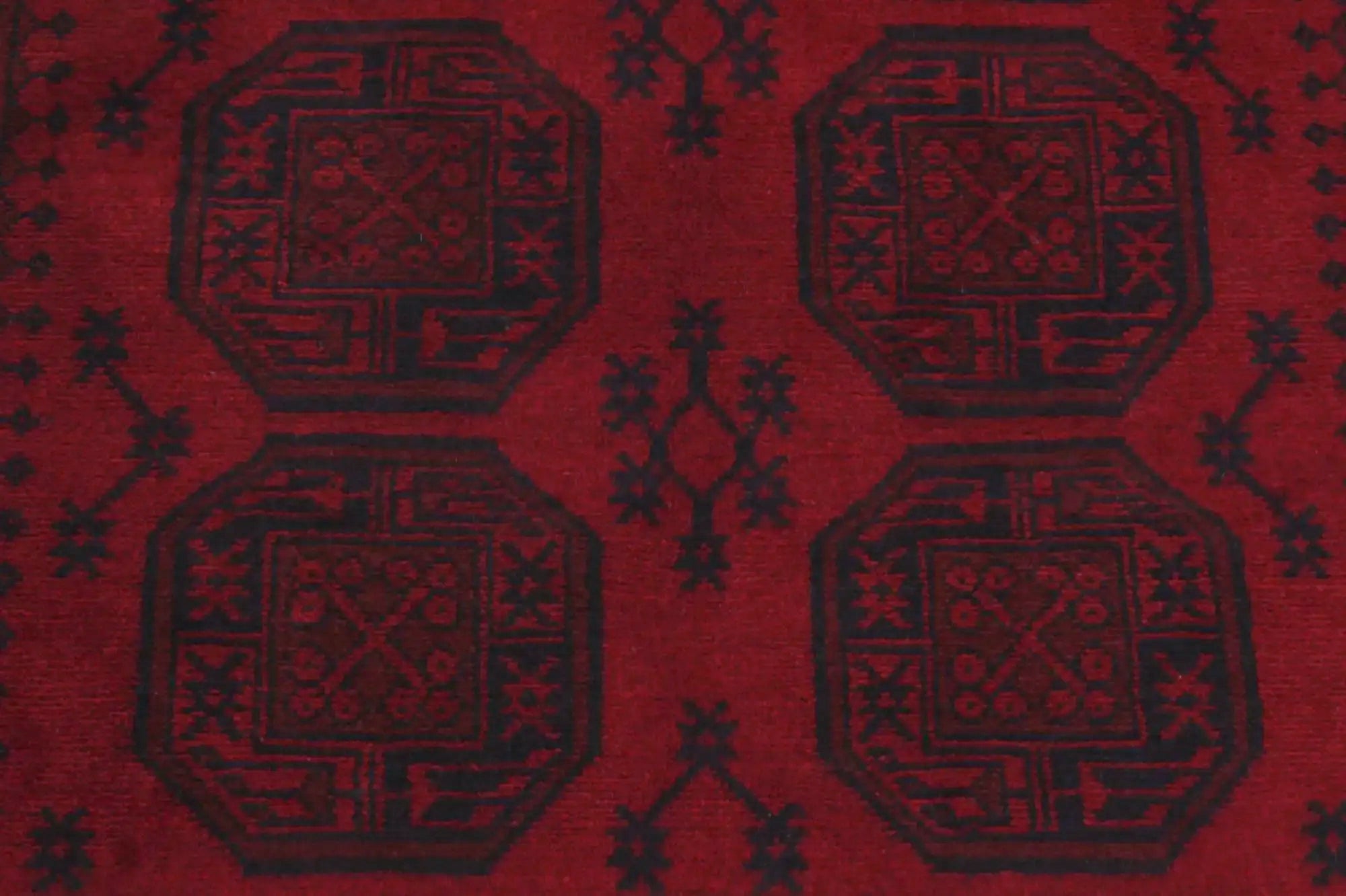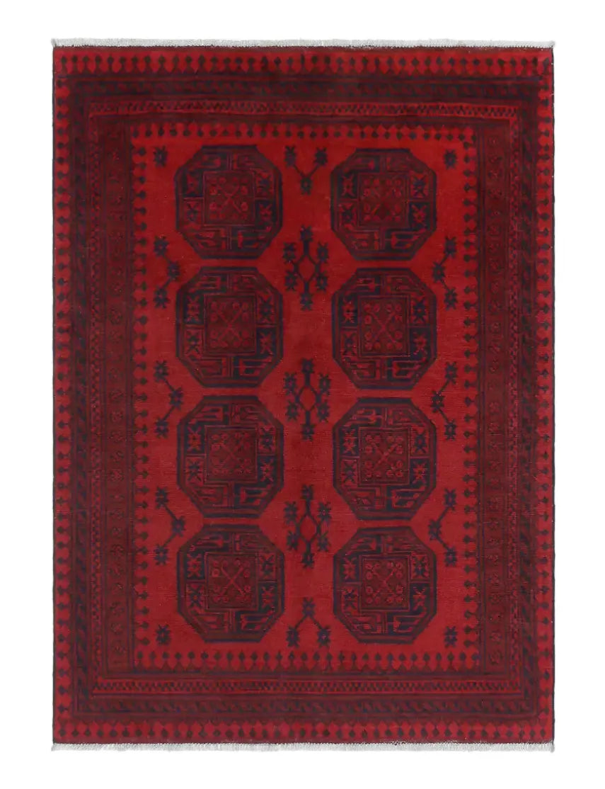 Discover this exquisite hand-knotted Akche rug from Afghanistan, crafted in rich, deep red and black tones that bring warmth and elegance to any interior. Made from 100% pure wool, including the fringes, it contains no synthetic materials, giving it a naturally soft, durable, and authentic feel. The traditional “elephant foot” motif, characteristic of Akche rugs, adds a timeless and culturally rich expression. A perfect choice for anyone seeking a rug that unites craftsmanship, character, and classic oriental beauty.