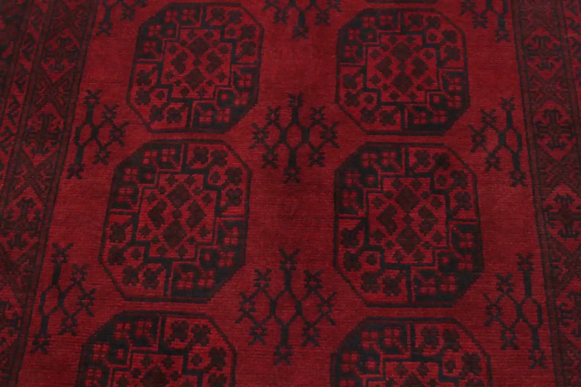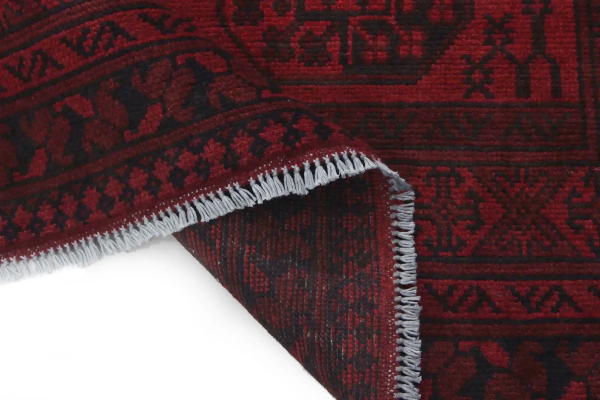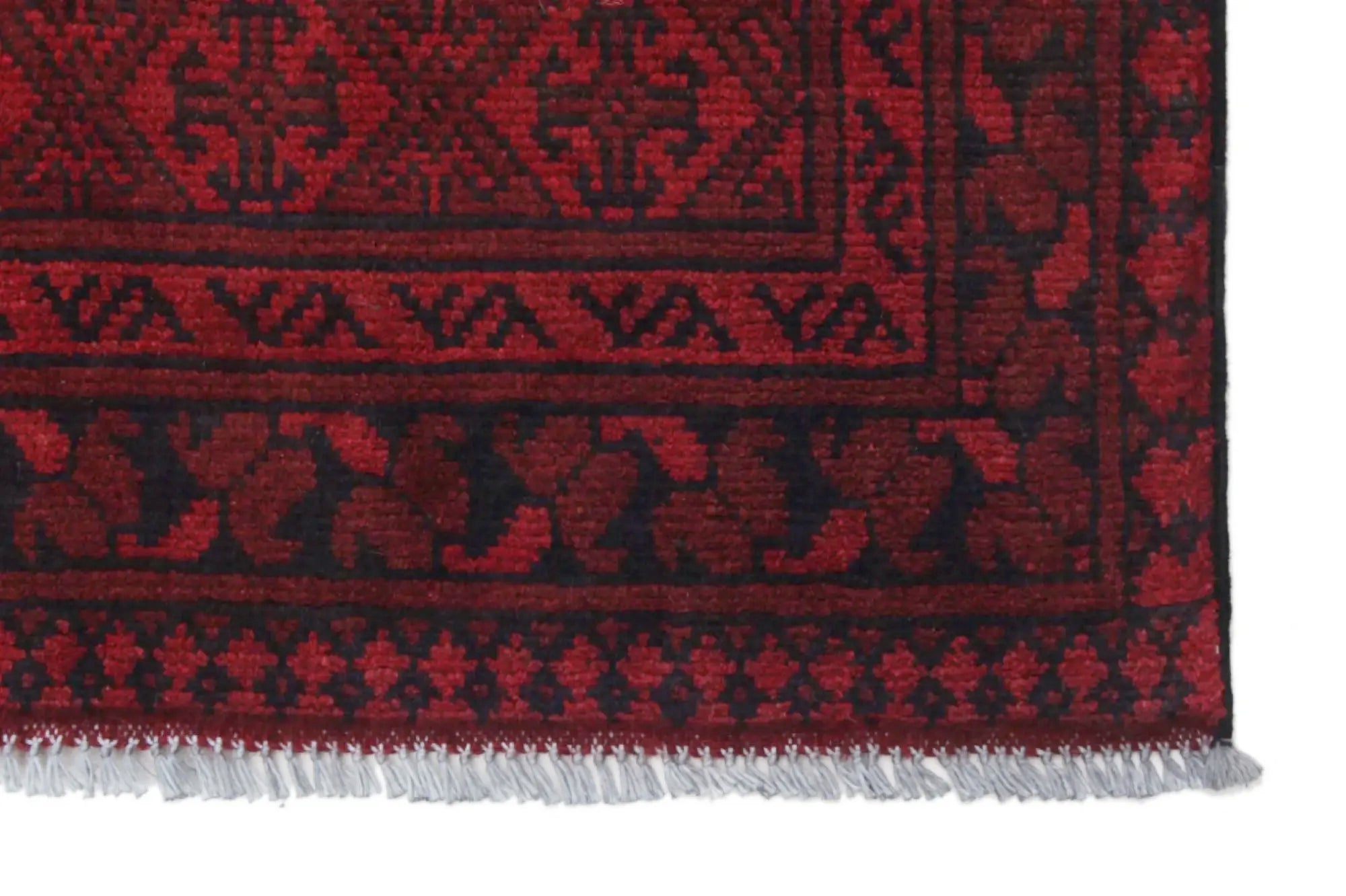 Discover this exquisite hand-knotted Akche rug from Afghanistan, crafted in rich, deep red and black tones that bring warmth and elegance to any interior. Made from 100% pure wool, including the fringes, it contains no synthetic materials, giving it a naturally soft, durable, and authentic feel. The traditional “elephant foot” motif, characteristic of Akche rugs, adds a timeless and culturally rich expression. A perfect choice for anyone seeking a rug that unites craftsmanship, character, and classic oriental beauty.