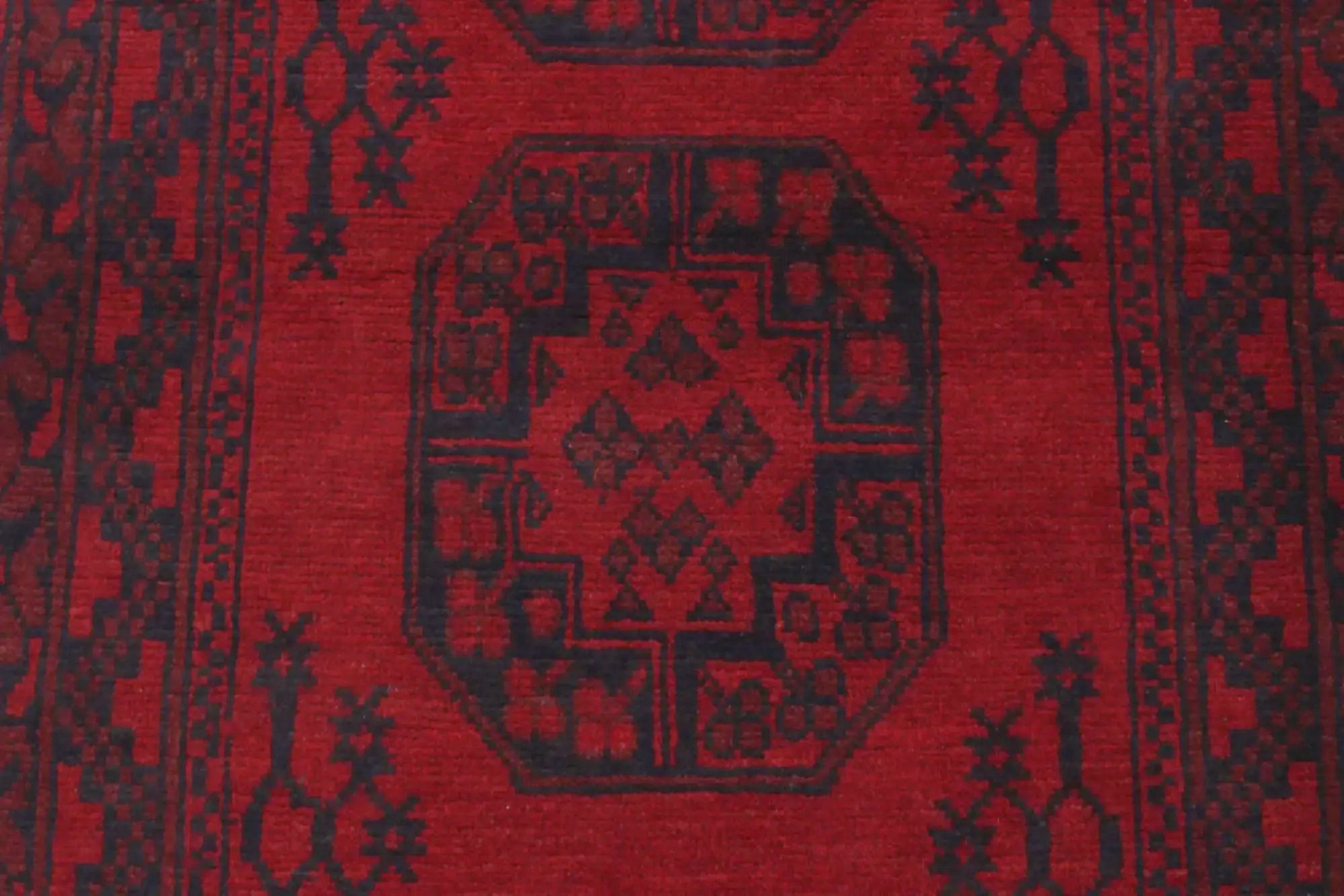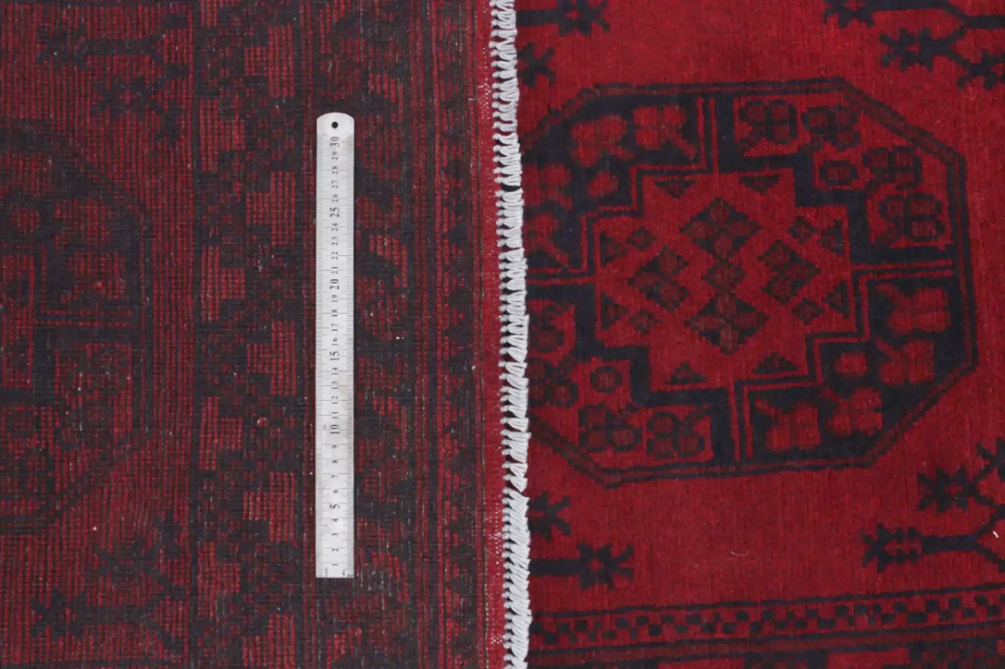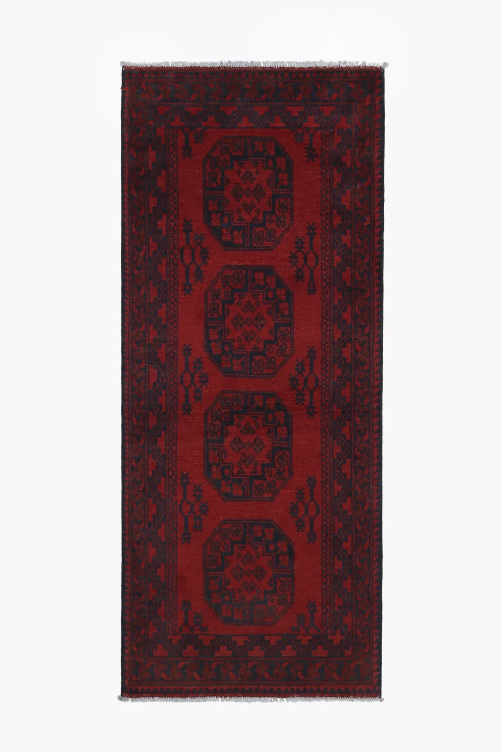 Discover this exquisite hand-knotted Akche rug from Afghanistan, crafted in rich, deep red and black tones that bring warmth and elegance to any interior. Made from 100% pure wool, including the fringes, it contains no synthetic materials, giving it a naturally soft, durable, and authentic feel. The traditional “elephant foot” motif, characteristic of Akche rugs, adds a timeless and culturally rich expression. A perfect choice for anyone seeking a rug that unites craftsmanship, character, and classic oriental beauty.