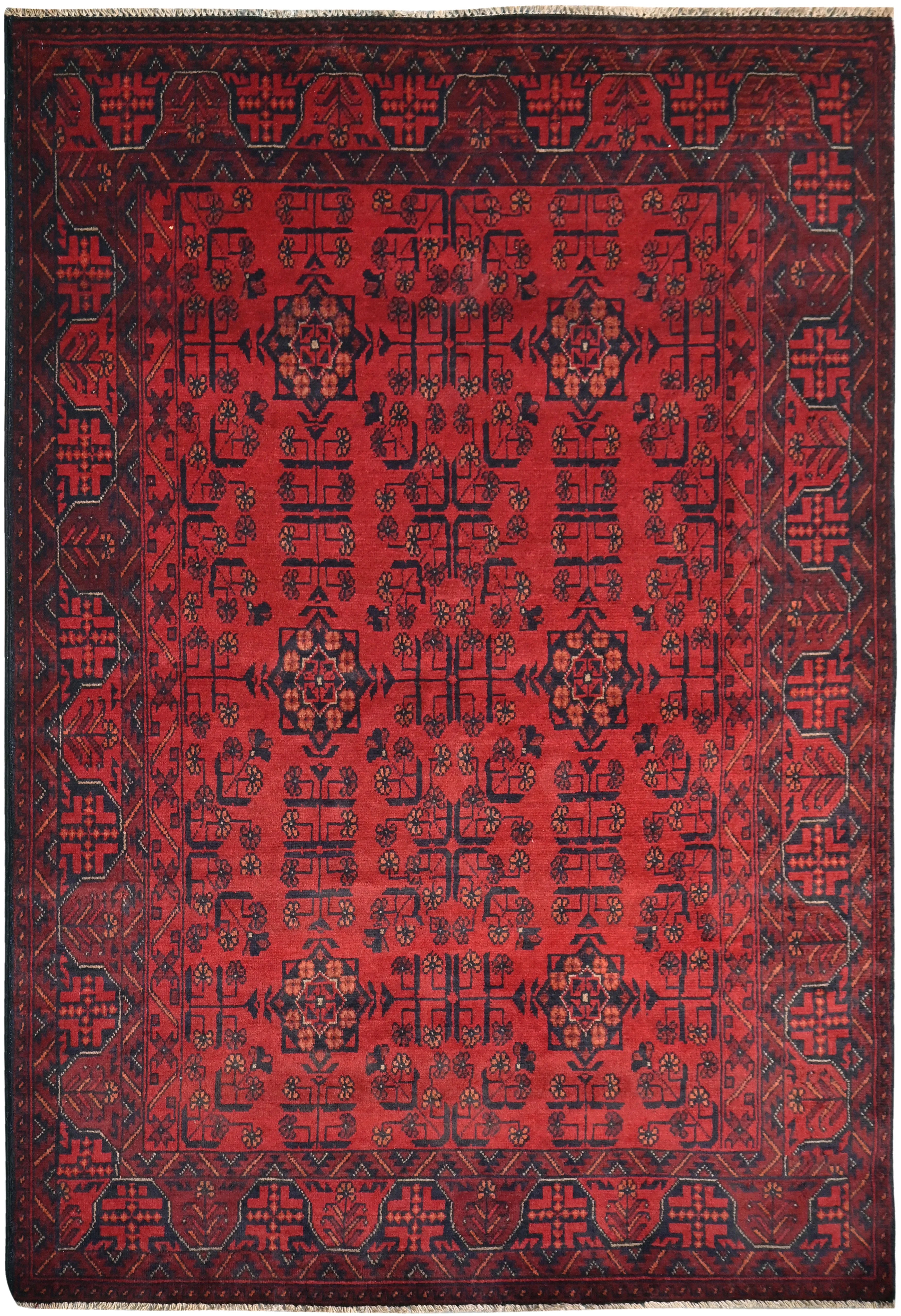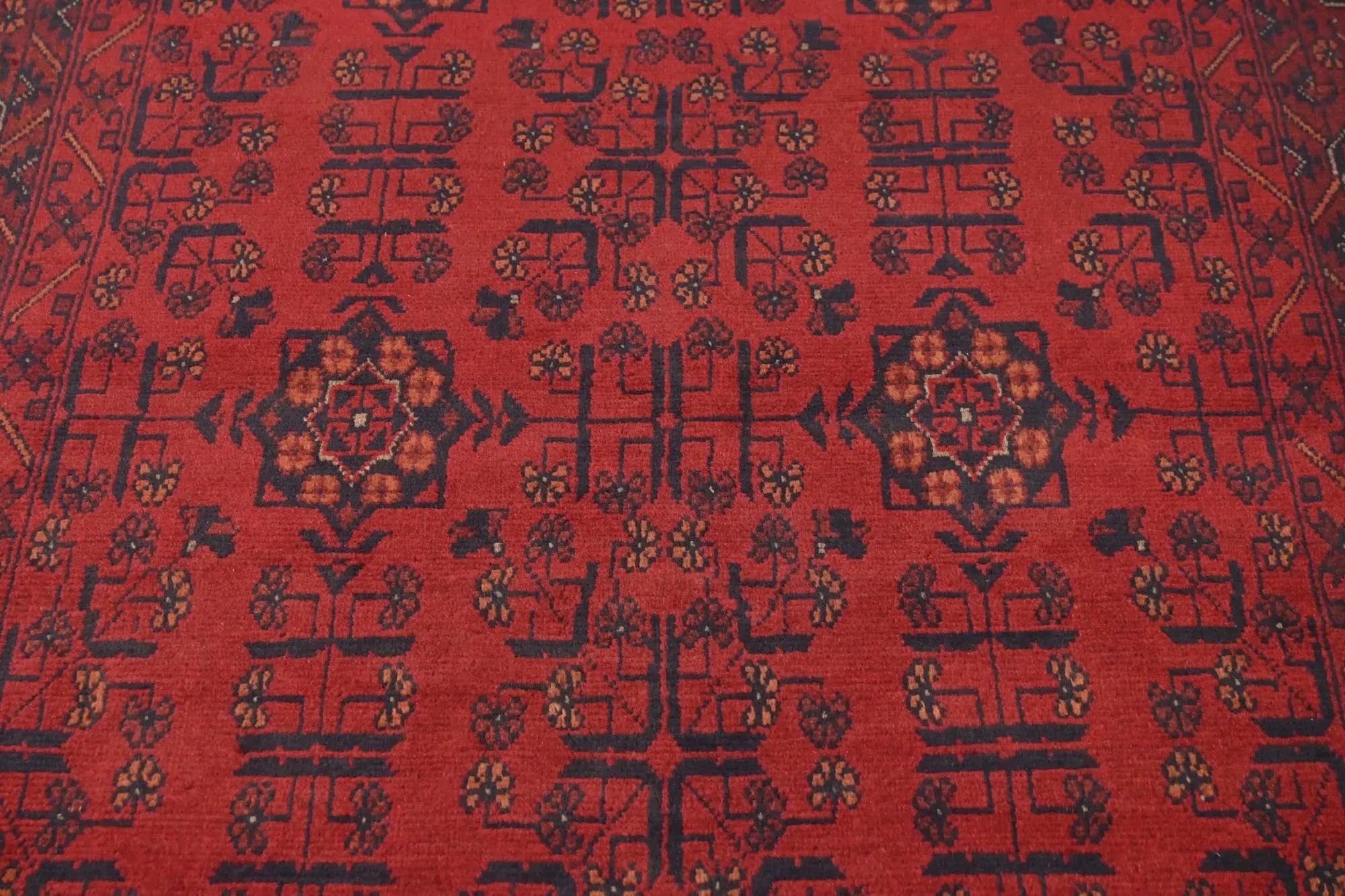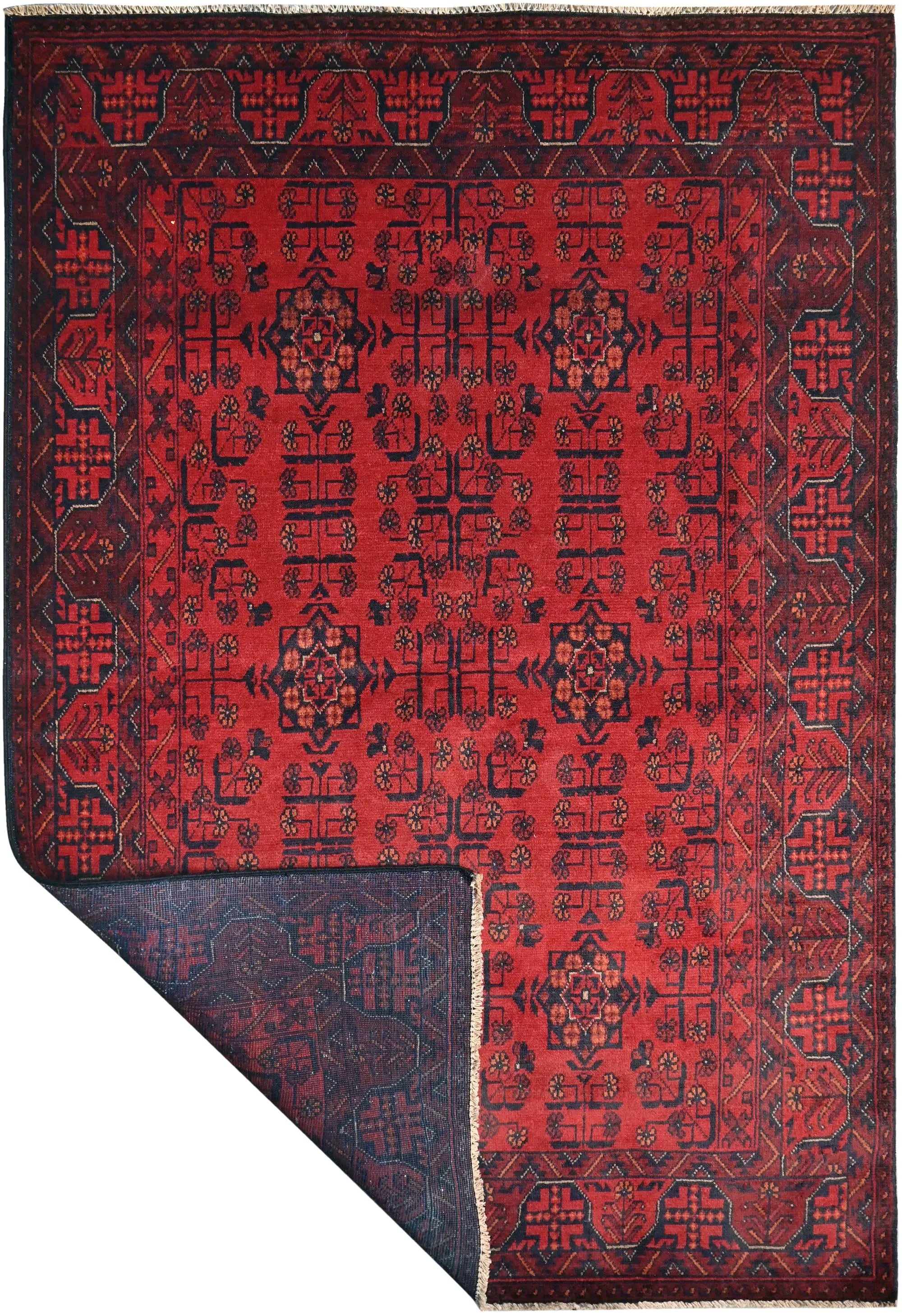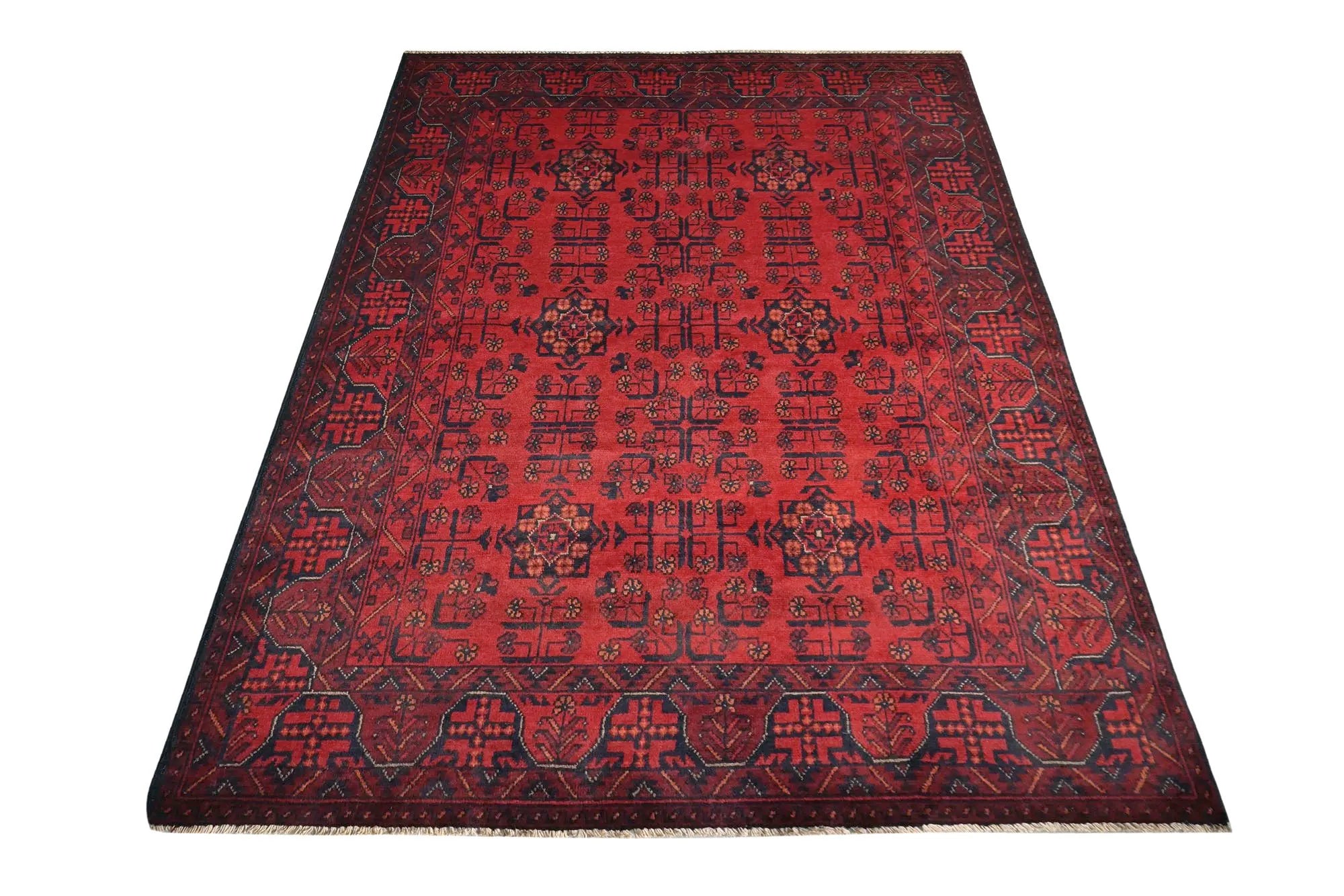 Traditional Afghan rugs are known for their rich history and skilled craftsmanship. These rugs have a long tradition that spans centuries and form an integral part of Afghanistan's cultural heritage. Traditional Afghan rugs are often characterized by geometric patterns and bold colors, and are usually handmade by local artists using traditional methods and materials. The wool used is typically of high quality, which gives the rugs a unique feel and durability. The patterns on these rugs can vary depending on the region and ethnic group that produces them. For e x ample, you might find rugs from different parts of Afghanistan, such as Herat, Kabul, Mazar-i-Sharif, and each region may have its own distinctive styles and patterns. Although traditional Afghan rugs are often woven to be used as floor coverings, they have also become popular as decorative elements in homes and offices around the world thanks to their beauty and distinctive appearance.