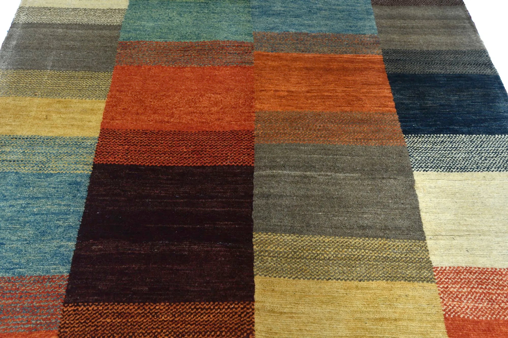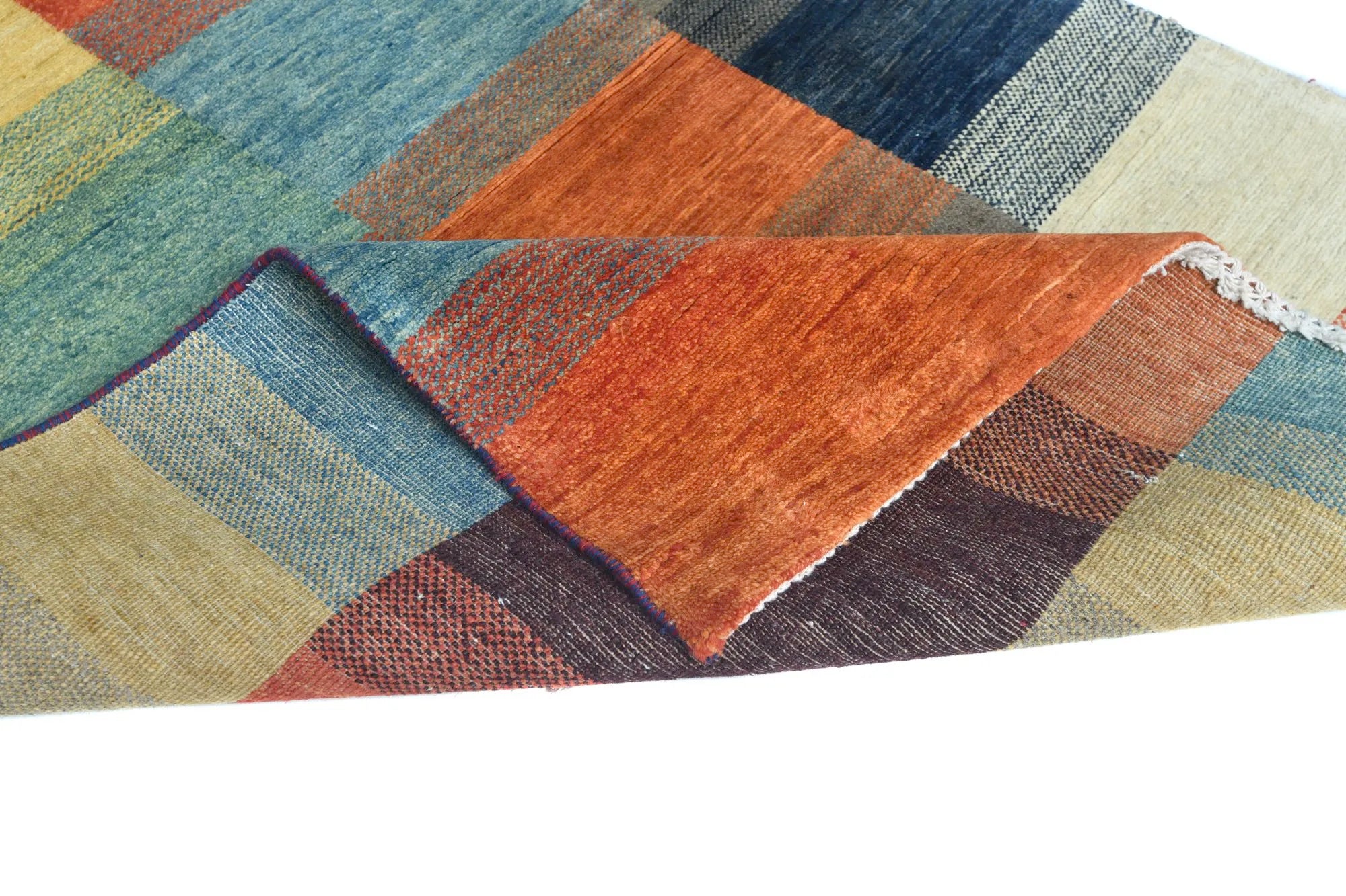 Gabbeh rugs are renowned for their unique charm and authentic craftsmanship. Due to their growing popularity, they are now also produced in Afghanistan, where skilled weavers create them with a denser knot structure and a slightly thinner profile compared to traditional Persian Gabbeh rugs. Despite the lighter construction, the same traditional knotting techniques used in the Persian originals are preserved, ensuring the rugs maintain their authentic character and durability. The result is a beautiful, lighter Gabbeh rug featuring fine detailing, natural colors, and a warm, vibrant appearance that enhances any space.