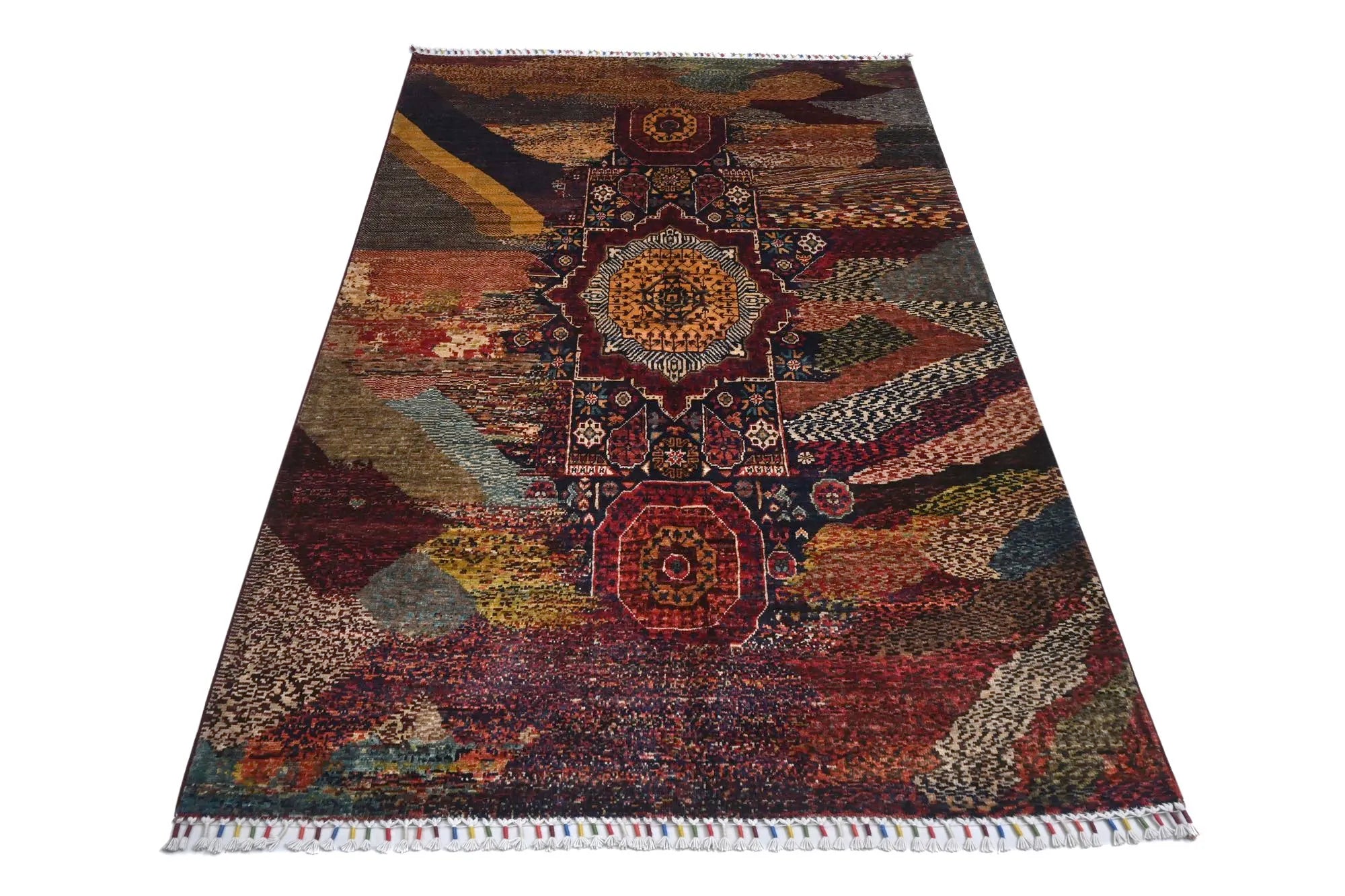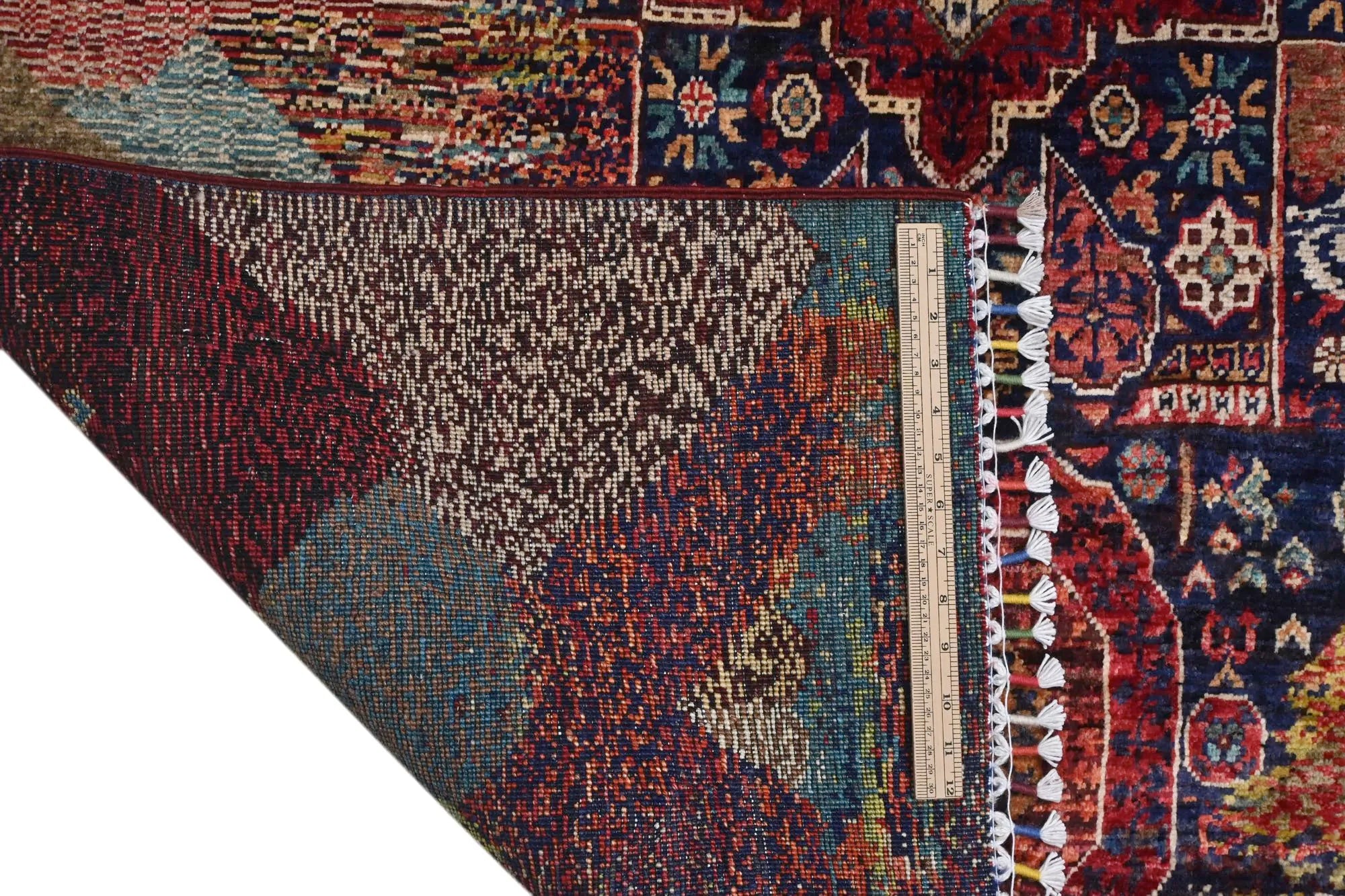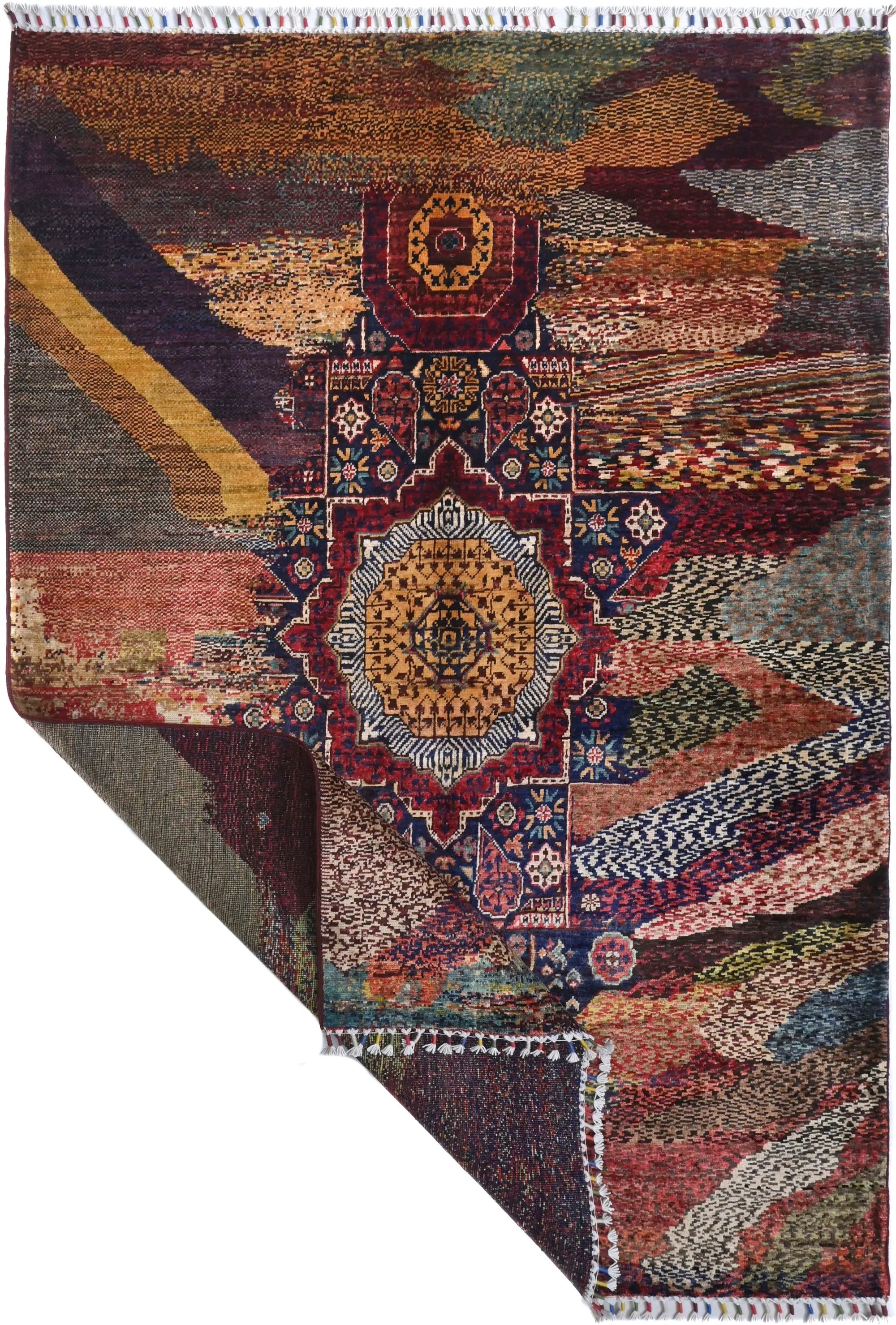 Khorjin Contrast is an exclusive, densely hand-knotted rug that blends traditional craftsmanship with contemporary design. Inspired by classical Mamluk rugs, this piece features a striking mix of deep blue, red, turquoise, green, and beige tones. Its bold and artistic color composition makes it the perfect choice for anyone looking for a unique designer rug that truly stands out. With its high knot density, natural sheen, and exquisite detailing, this rug is a genuine quality masterpiece. Every knot is tied by hand, ensuring durability and long-lasting beauty. This rug fits seamlessly into both modern and traditional interiors and works perfectly as a statement piece in living rooms, dining areas, or professional spaces. If you are searching for a real oriental rug, a distinctive design rug, or a premium hand-knotted Khorjin rug, Khorjin Contrast is an exceptional option. A rug that transforms the atmosphere of any room — visually and stylistically.