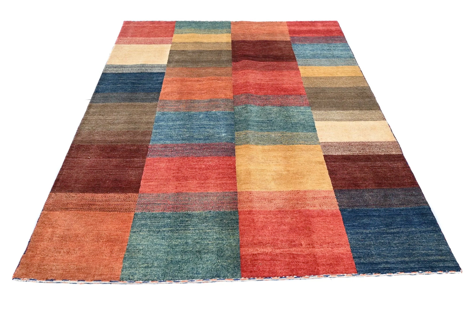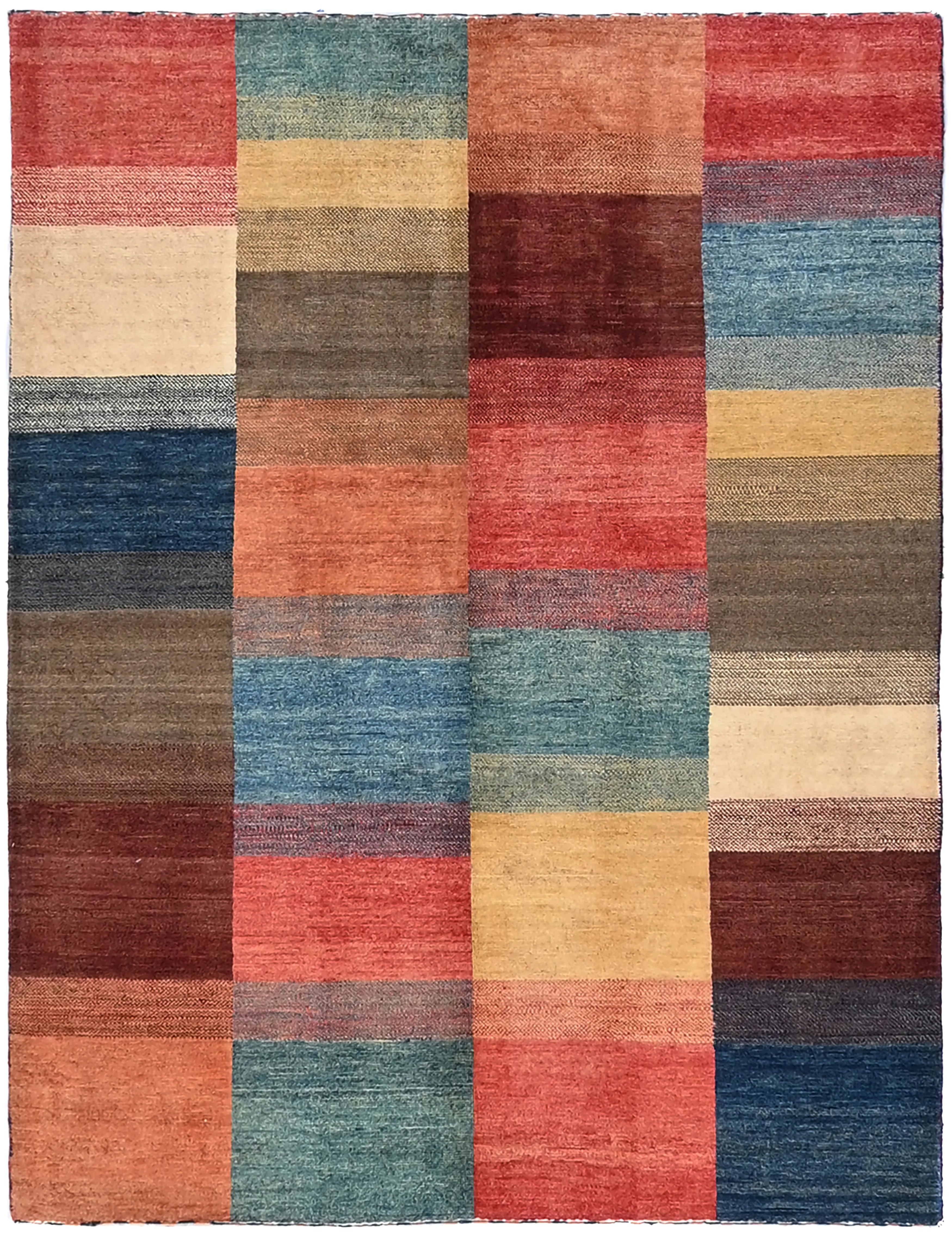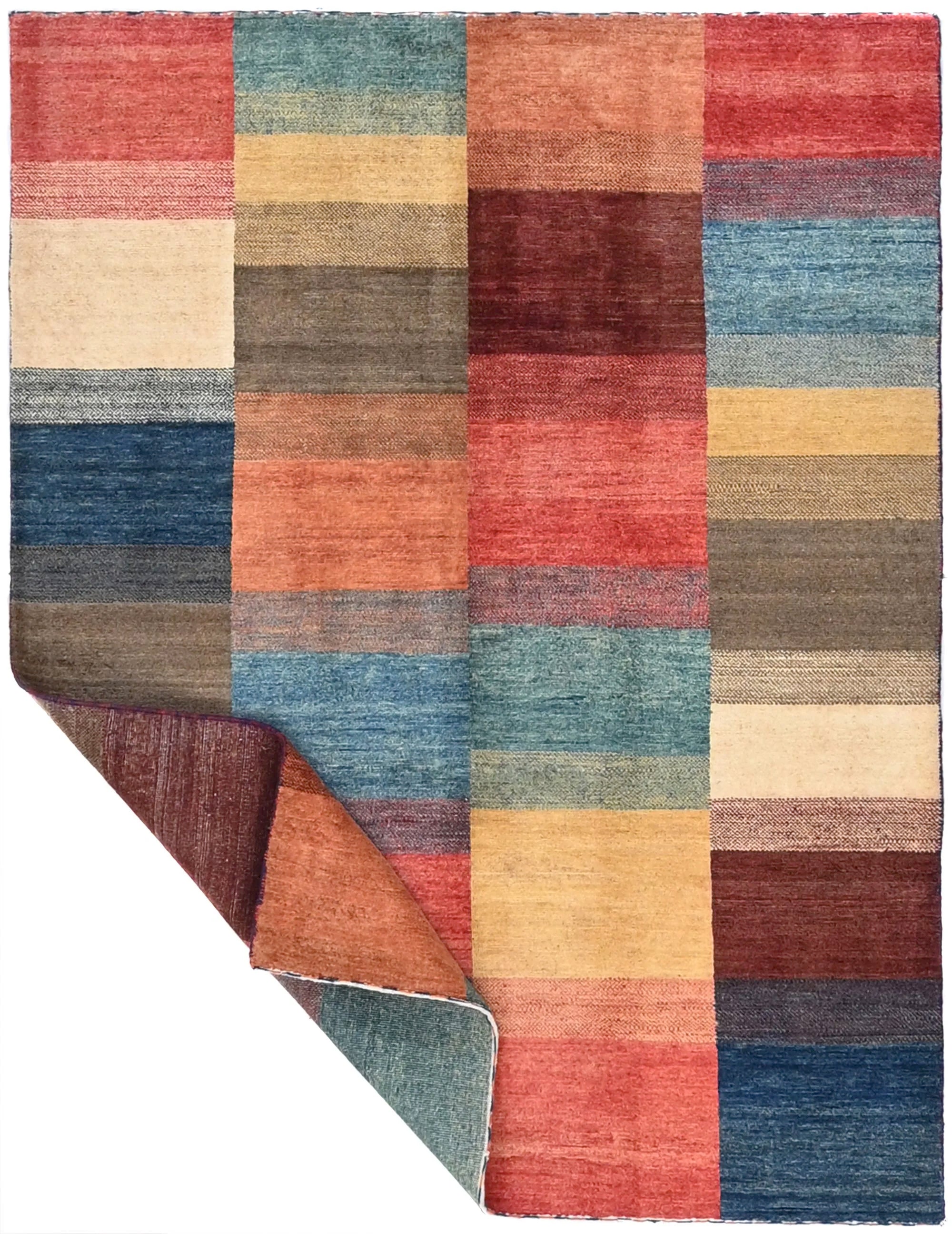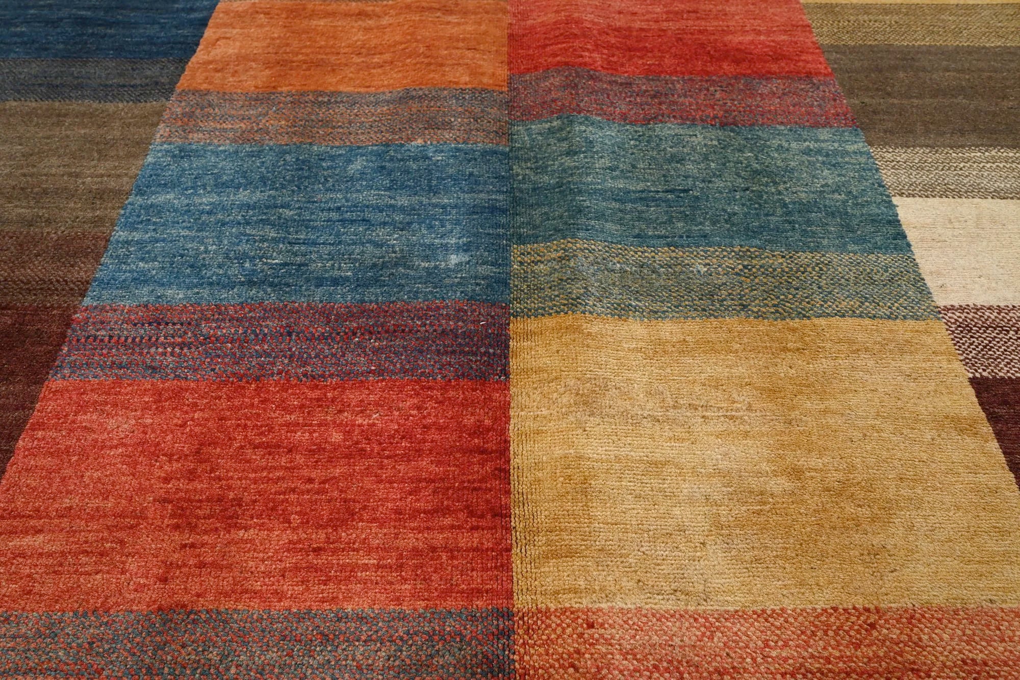 Gabbeh rugs are renowned for their unique charm and authentic craftsmanship. Due to their growing popularity, they are now also produced in Afghanistan, where skilled weavers create them with a denser knot structure and a slightly thinner profile compared to traditional Persian Gabbeh rugs. Despite the lighter construction, the same traditional knotting techniques used in the Persian originals are preserved, ensuring the rugs maintain their authentic character and durability. The result is a beautiful, lighter Gabbeh rug featuring fine detailing, natural colors, and a warm, vibrant appearance that enhances any space.