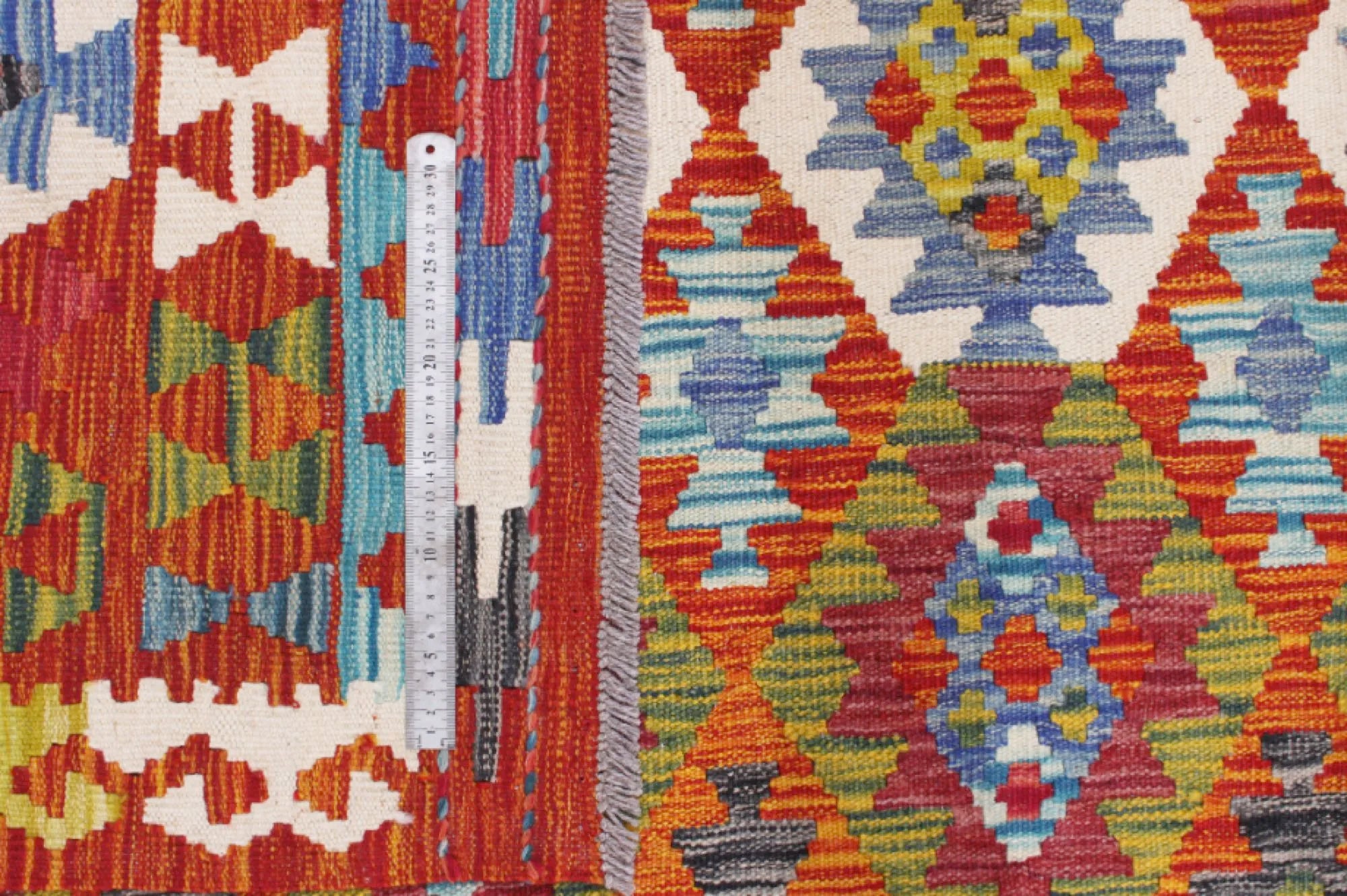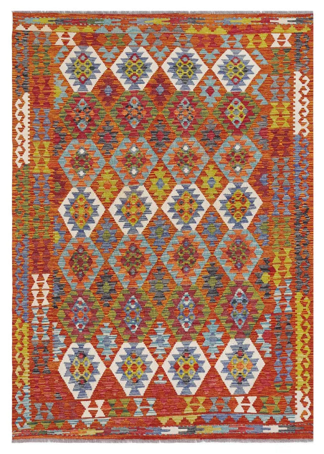 A Masterpiece of Afghan Craftsmanship with Caucasian Inspiration. Kelim Chobi rugs are a brilliant e x ample of traditional Afghan craftsmanship, combining both quality and aesthetic finesse. These rugs are uniquely handwoven in Afghanistan and carry a rich history of craftsmanship, where traditional techniques have been passed down through generations. What makes Kelim Chobi rugs particularly remarkable is their distinct design, heavily influenced by Caucasian patterns. The geometric shapes and symmetrical patterns, typical of Caucasian rugs, give Kelim Chobi rugs their unique and timeless character. The colors used in Kelim Chobi rugs are often subdued and natural, providing them with an elegant and sophisticated look. These colors are derived from natural dyes, which not only provide a durable and authentic color palette but also reflect a deep respect for nature and traditional methods. Each Kelim Chobi rug is handwoven with the utmost care and precision, ensuring high quality and durability. The rugs are flat-woven, giving them a smooth surface and making them both practical and easy to maintain. Thanks to their combination of Afghan craftsmanship and Caucasian design, Kelim Chobi rugs are a popular choice for those looking for a beautiful and timeless decorative element that can enhance any room. These rugs are not only practical floor coverings but also artworks that tell a story of tradition and culture. If you are looking for a rug that combines traditional craftsmanship with stylish design, Kelim Chobi rugs are an e x cellent choice. Their timeless beauty and durable quality make them a perfect investment for your home.