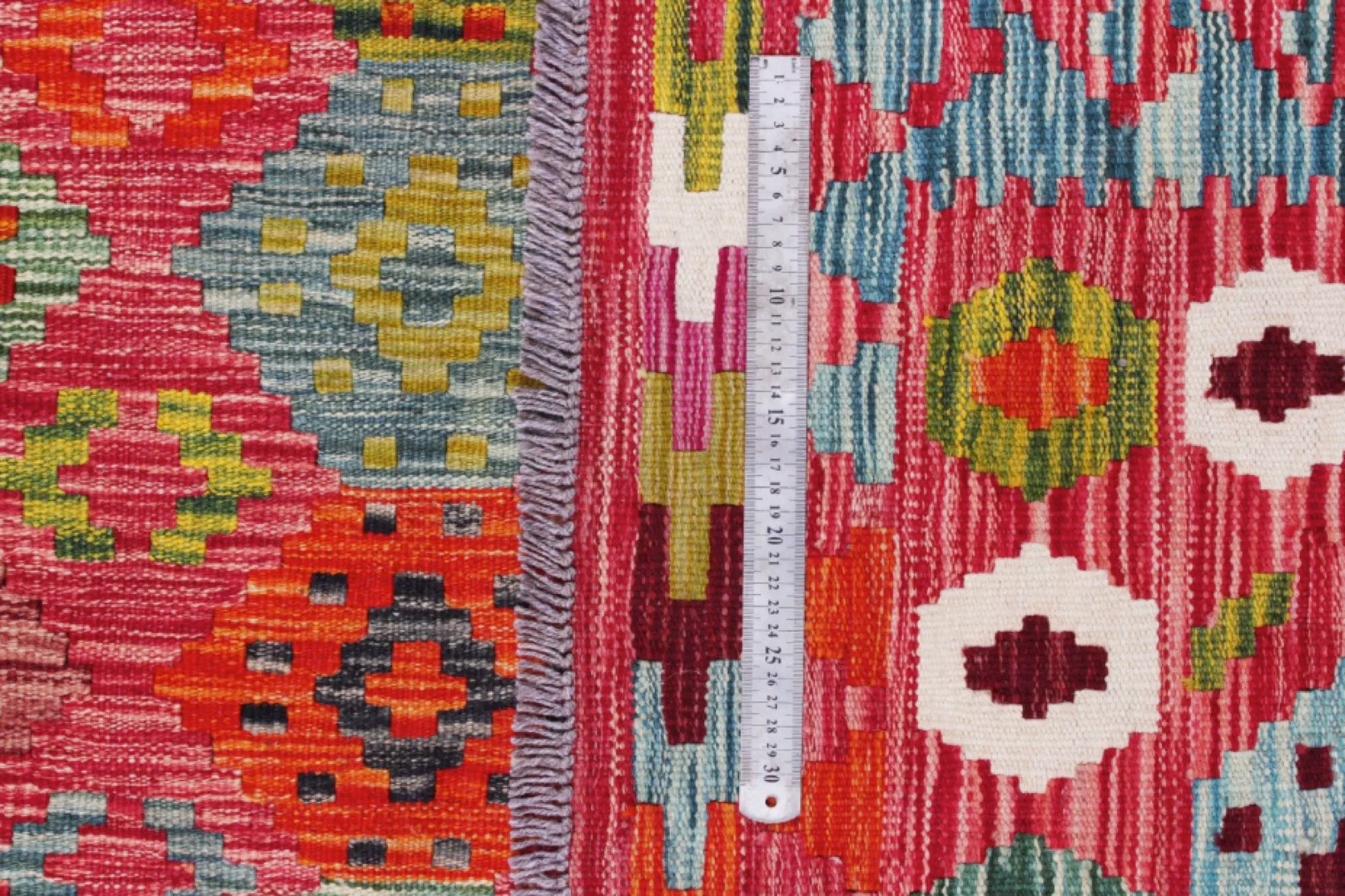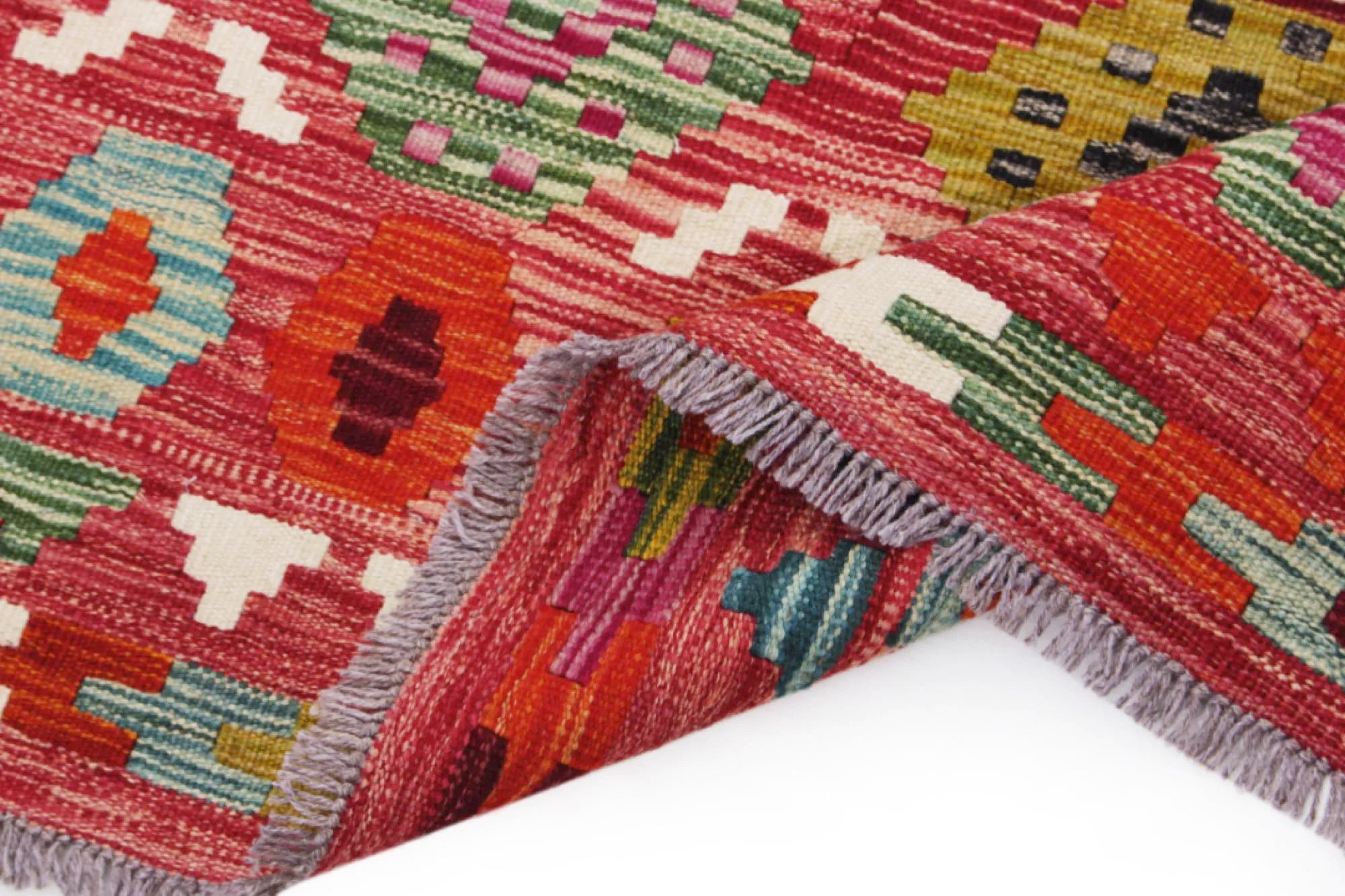 A Masterpiece of Afghan Craftsmanship with Caucasian Inspiration. Kelim Chobi rugs are a brilliant e x ample of traditional Afghan craftsmanship, combining both quality and aesthetic finesse. These rugs are uniquely handwoven in Afghanistan and carry a rich history of craftsmanship, where traditional techniques have been passed down through generations. What makes Kelim Chobi rugs particularly remarkable is their distinct design, heavily influenced by Caucasian patterns. The geometric shapes and symmetrical patterns, typical of Caucasian rugs, give Kelim Chobi rugs their unique and timeless character. The colors used in Kelim Chobi rugs are often subdued and natural, providing them with an elegant and sophisticated look. These colors are derived from natural dyes, which not only provide a durable and authentic color palette but also reflect a deep respect for nature and traditional methods. Each Kelim Chobi rug is handwoven with the utmost care and precision, ensuring high quality and durability. The rugs are flat-woven, giving them a smooth surface and making them both practical and easy to maintain. Thanks to their combination of Afghan craftsmanship and Caucasian design, Kelim Chobi rugs are a popular choice for those looking for a beautiful and timeless decorative element that can enhance any room. These rugs are not only practical floor coverings but also artworks that tell a story of tradition and culture. If you are looking for a rug that combines traditional craftsmanship with stylish design, Kelim Chobi rugs are an e x cellent choice. Their timeless beauty and durable quality make them a perfect investment for your home.