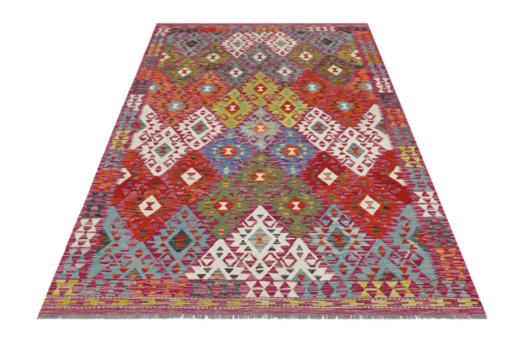 A Masterpiece of Afghan Craftsmanship with Caucasian Inspiration. Kelim Chobi rugs are a brilliant e x ample of traditional Afghan craftsmanship, combining both quality and aesthetic finesse. These rugs are uniquely handwoven in Afghanistan and carry a rich history of craftsmanship, where traditional techniques have been passed down through generations. What makes Kelim Chobi rugs particularly remarkable is their distinct design, heavily influenced by Caucasian patterns. The geometric shapes and symmetrical patterns, typical of Caucasian rugs, give Kelim Chobi rugs their unique and timeless character. The colors used in Kelim Chobi rugs are often subdued and natural, providing them with an elegant and sophisticated look. These colors are derived from natural dyes, which not only provide a durable and authentic color palette but also reflect a deep respect for nature and traditional methods. Each Kelim Chobi rug is handwoven with the utmost care and precision, ensuring high quality and durability. The rugs are flat-woven, giving them a smooth surface and making them both practical and easy to maintain. Thanks to their combination of Afghan craftsmanship and Caucasian design, Kelim Chobi rugs are a popular choice for those looking for a beautiful and timeless decorative element that can enhance any room. These rugs are not only practical floor coverings but also artworks that tell a story of tradition and culture. If you are looking for a rug that combines traditional craftsmanship with stylish design, Kelim Chobi rugs are an e x cellent choice. Their timeless beauty and durable quality make them a perfect investment for your home.