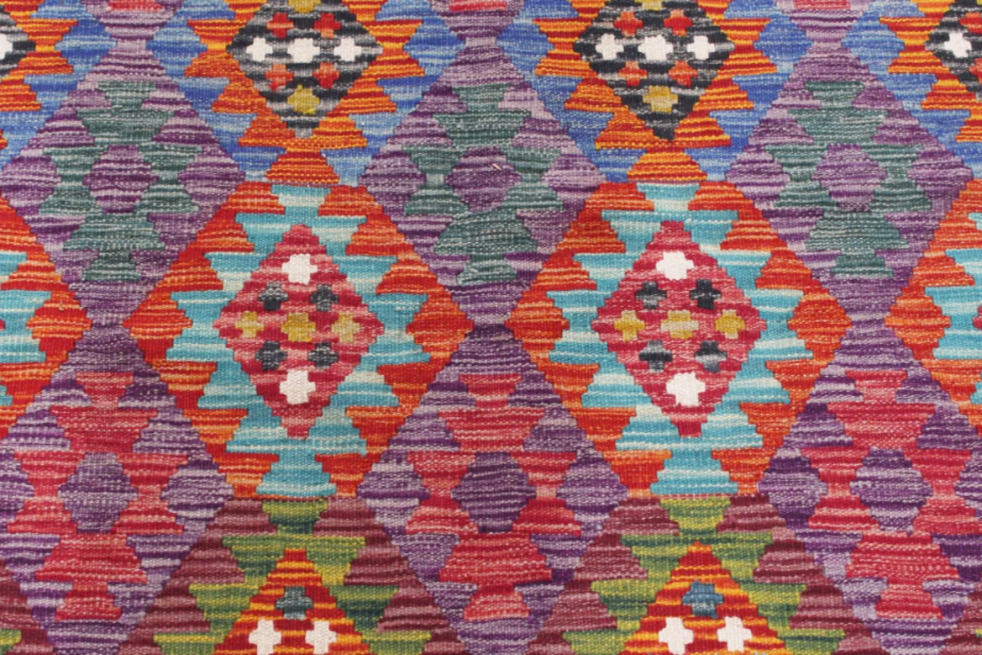 A Masterpiece of Afghan Craftsmanship with Caucasian Inspiration. Kelim Chobi rugs are a brilliant e x ample of traditional Afghan craftsmanship, combining both quality and aesthetic finesse. These rugs are uniquely handwoven in Afghanistan and carry a rich history of craftsmanship, where traditional techniques have been passed down through generations. What makes Kelim Chobi rugs particularly remarkable is their distinct design, heavily influenced by Caucasian patterns. The geometric shapes and symmetrical patterns, typical of Caucasian rugs, give Kelim Chobi rugs their unique and timeless character. The colors used in Kelim Chobi rugs are often subdued and natural, providing them with an elegant and sophisticated look. These colors are derived from natural dyes, which not only provide a durable and authentic color palette but also reflect a deep respect for nature and traditional methods. Each Kelim Chobi rug is handwoven with the utmost care and precision, ensuring high quality and durability. The rugs are flat-woven, giving them a smooth surface and making them both practical and easy to maintain. Thanks to their combination of Afghan craftsmanship and Caucasian design, Kelim Chobi rugs are a popular choice for those looking for a beautiful and timeless decorative element that can enhance any room. These rugs are not only practical floor coverings but also artworks that tell a story of tradition and culture. If you are looking for a rug that combines traditional craftsmanship with stylish design, Kelim Chobi rugs are an e x cellent choice. Their timeless beauty and durable quality make them a perfect investment for your home.