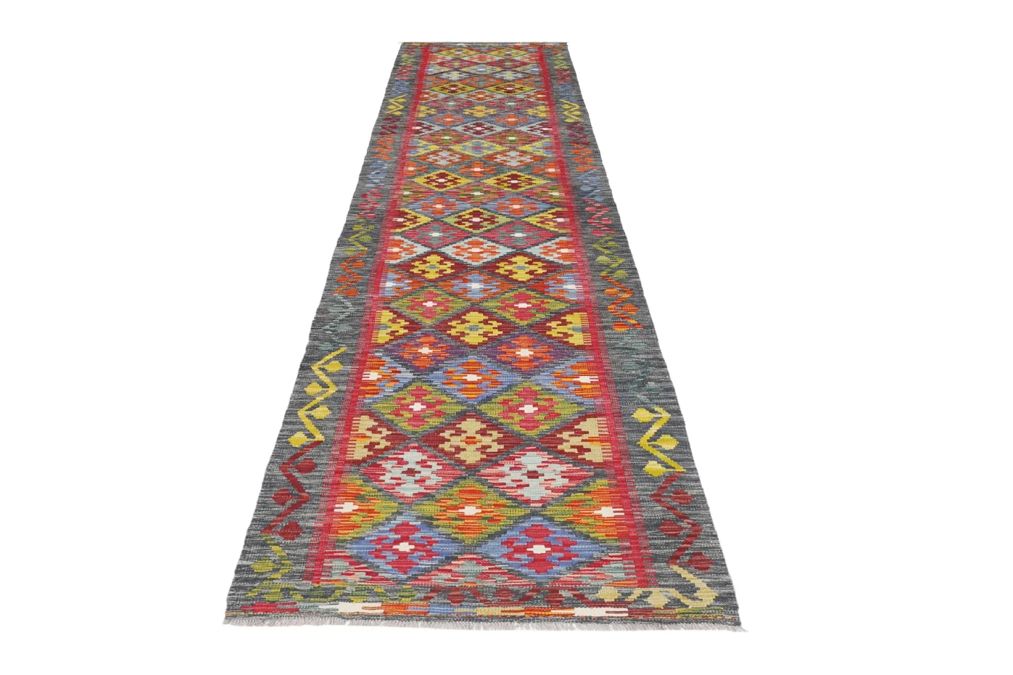 A Masterpiece of Afghan Craftsmanship with Caucasian Inspiration. Kelim Chobi rugs are a brilliant e x ample of traditional Afghan craftsmanship, combining both quality and aesthetic finesse. These rugs are uniquely handwoven in Afghanistan and carry a rich history of craftsmanship, where traditional techniques have been passed down through generations. What makes Kelim Chobi rugs particularly remarkable is their distinct design, heavily influenced by Caucasian patterns. The geometric shapes and symmetrical patterns, typical of Caucasian rugs, give Kelim Chobi rugs their unique and timeless character. The colors used in Kelim Chobi rugs are often subdued and natural, providing them with an elegant and sophisticated look. These colors are derived from natural dyes, which not only provide a durable and authentic color palette but also reflect a deep respect for nature and traditional methods. Each Kelim Chobi rug is handwoven with the utmost care and precision, ensuring high quality and durability. The rugs are flat-woven, giving them a smooth surface and making them both practical and easy to maintain. Thanks to their combination of Afghan craftsmanship and Caucasian design, Kelim Chobi rugs are a popular choice for those looking for a beautiful and timeless decorative element that can enhance any room. These rugs are not only practical floor coverings but also artworks that tell a story of tradition and culture. If you are looking for a rug that combines traditional craftsmanship with stylish design, Kelim Chobi rugs are an e x cellent choice. Their timeless beauty and durable quality make them a perfect investment for your home.