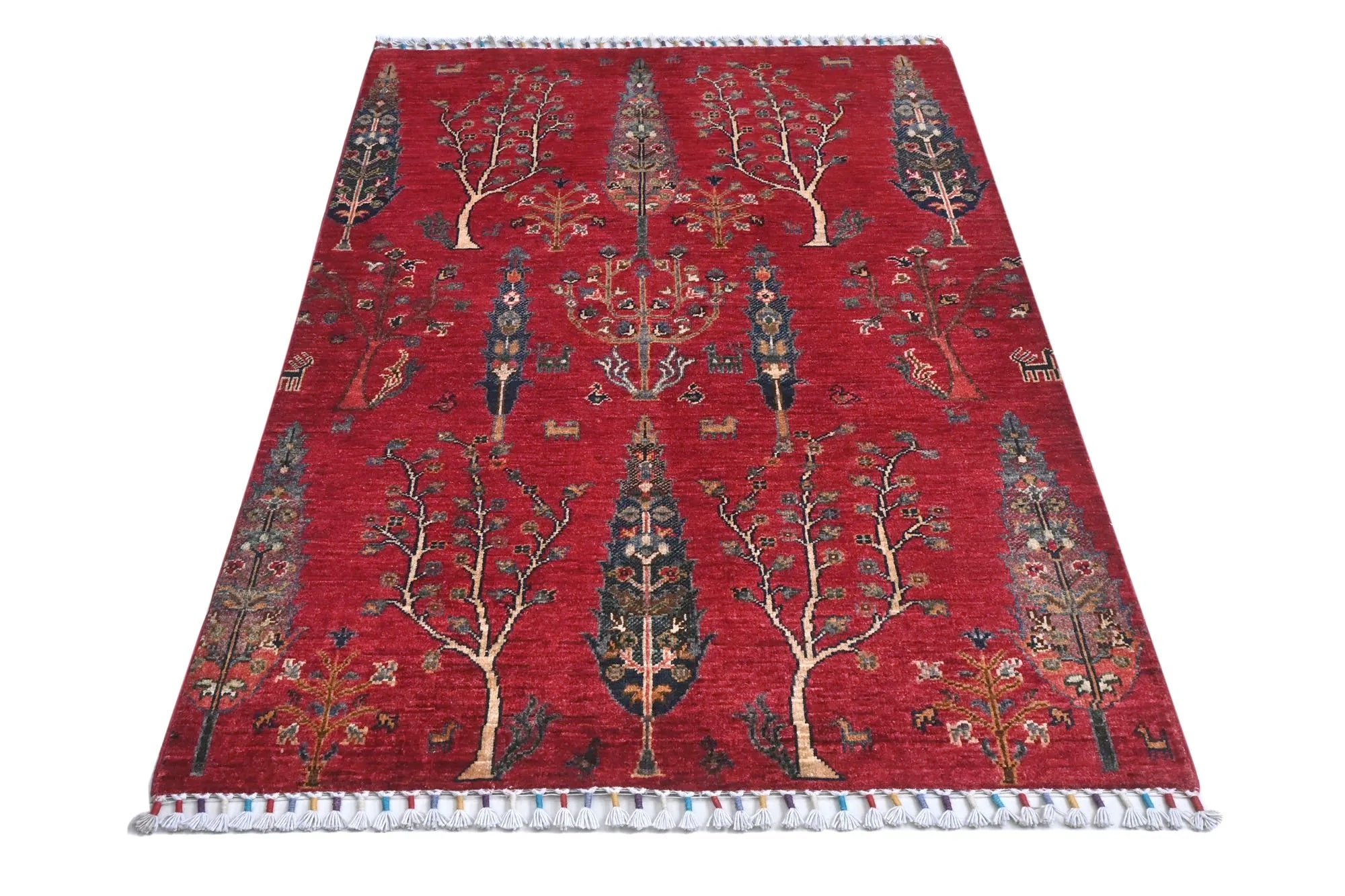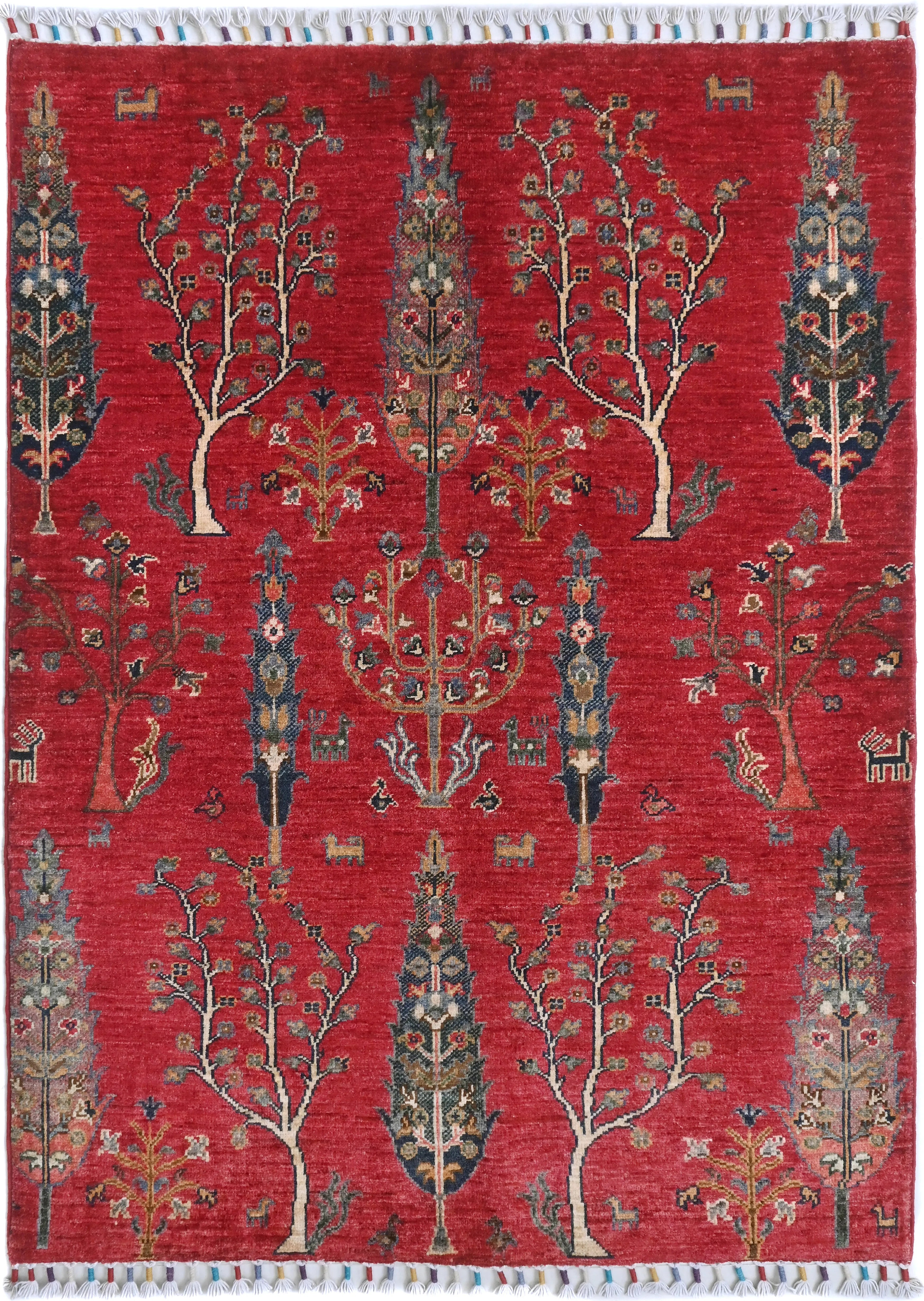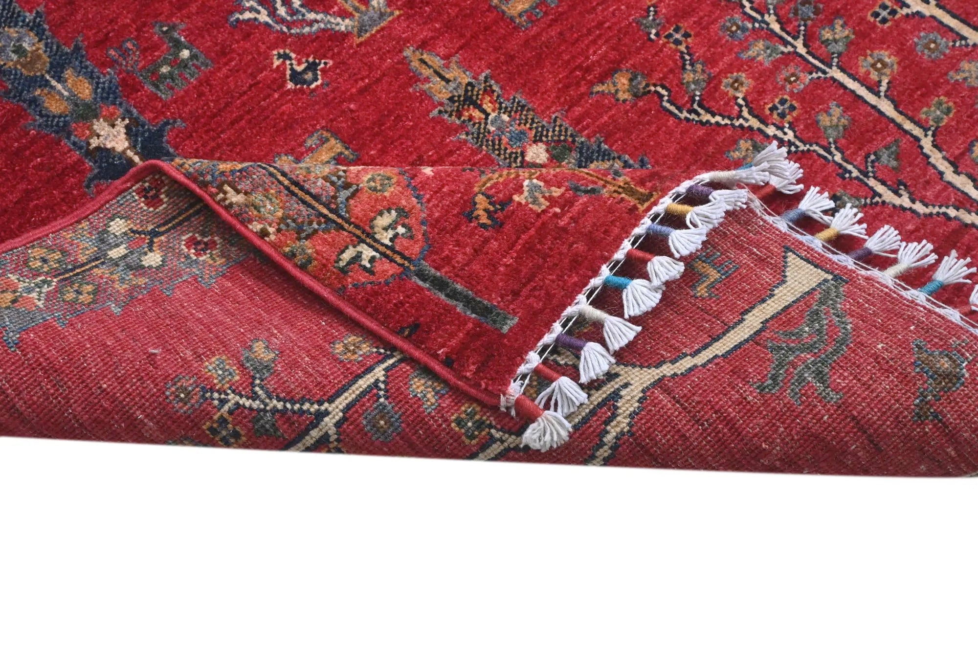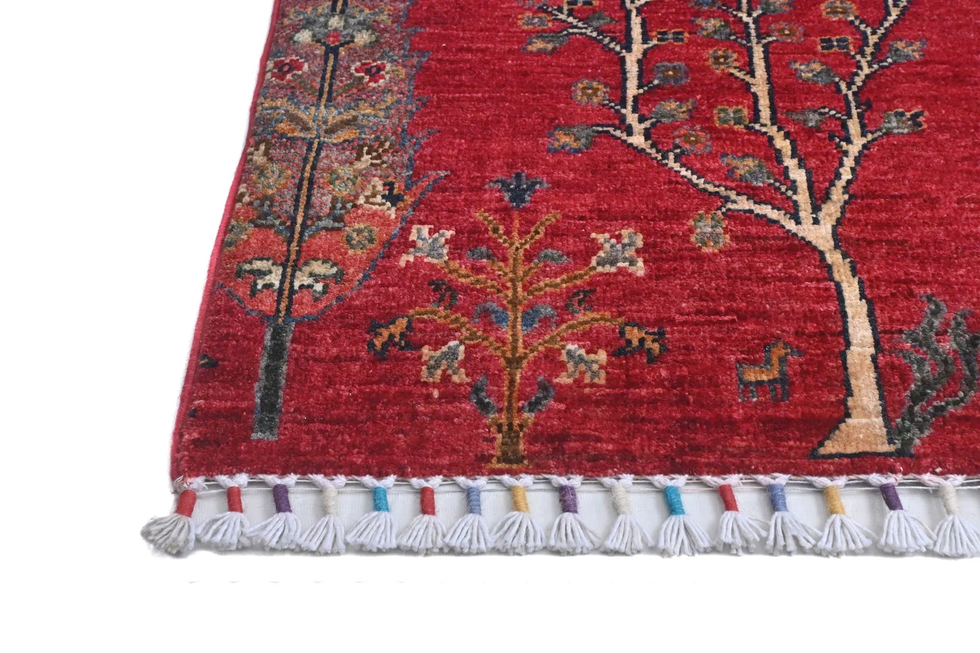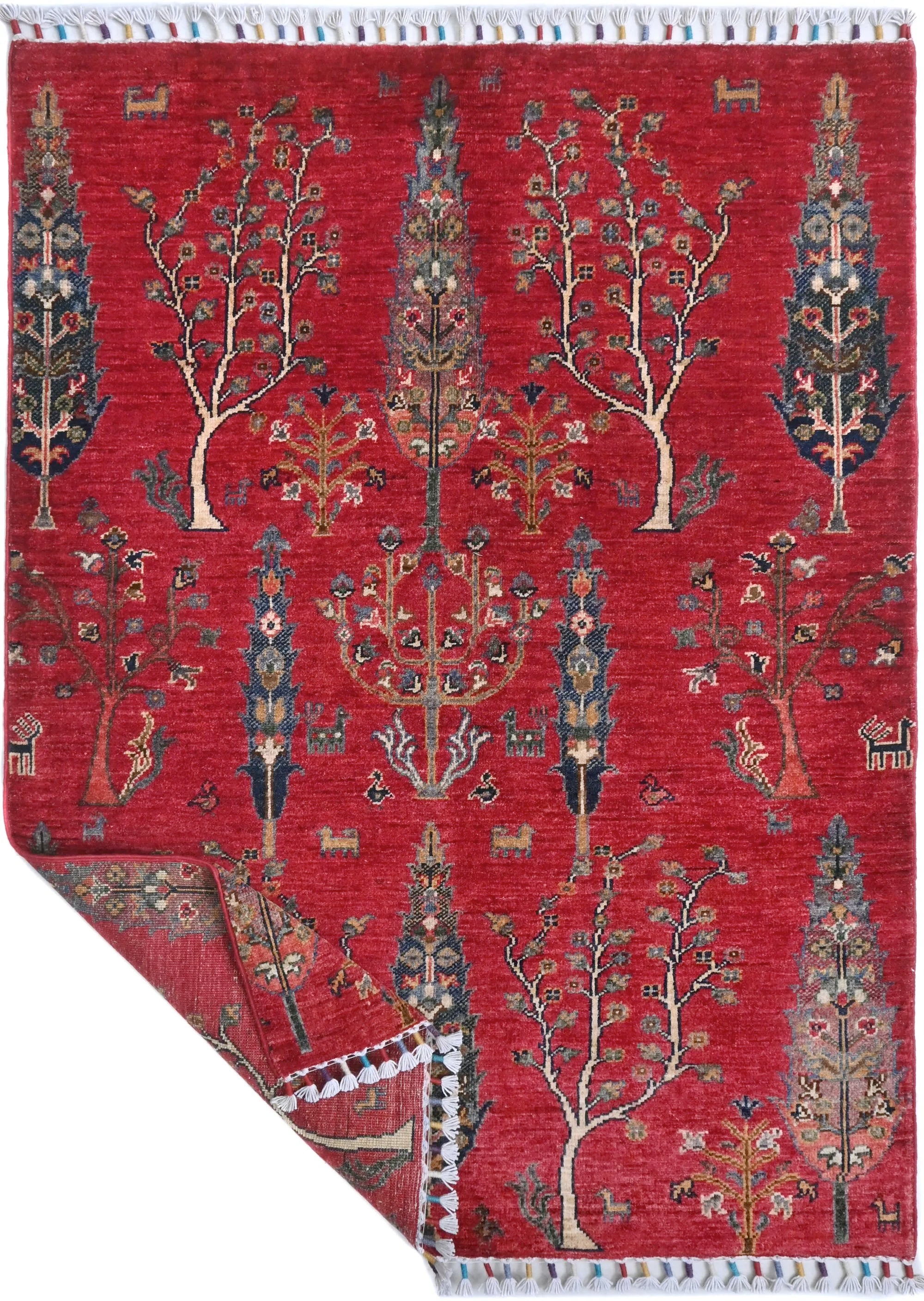Gran is an exclusive, hand-knotted Khorjin-style rug from Afghanistan, featuring a design inspired by the organic patterns of pine wood grains. The bright, cheerful colors combined with the artistic composition make this rug ideal for anyone looking for a vibrant, modern and expressive interior piece. Made from 100% hand-spun wool and dyed entirely with natural vegetable dyes, this rug offers a warm, authentic look with a beautiful natural sheen. Every knot is tied by hand by skilled Afghan artisans, ensuring a dense, durable and long-lasting rug of superior quality. The Gran rug fits perfectly in modern and classic interiors alike and serves beautifully as a statement piece in living rooms, bedrooms or workspaces. A stunning blend of traditional craftsmanship and contemporary design — for those who want a rug that truly stands out.