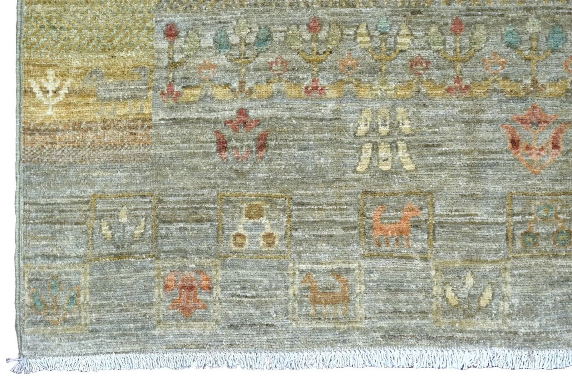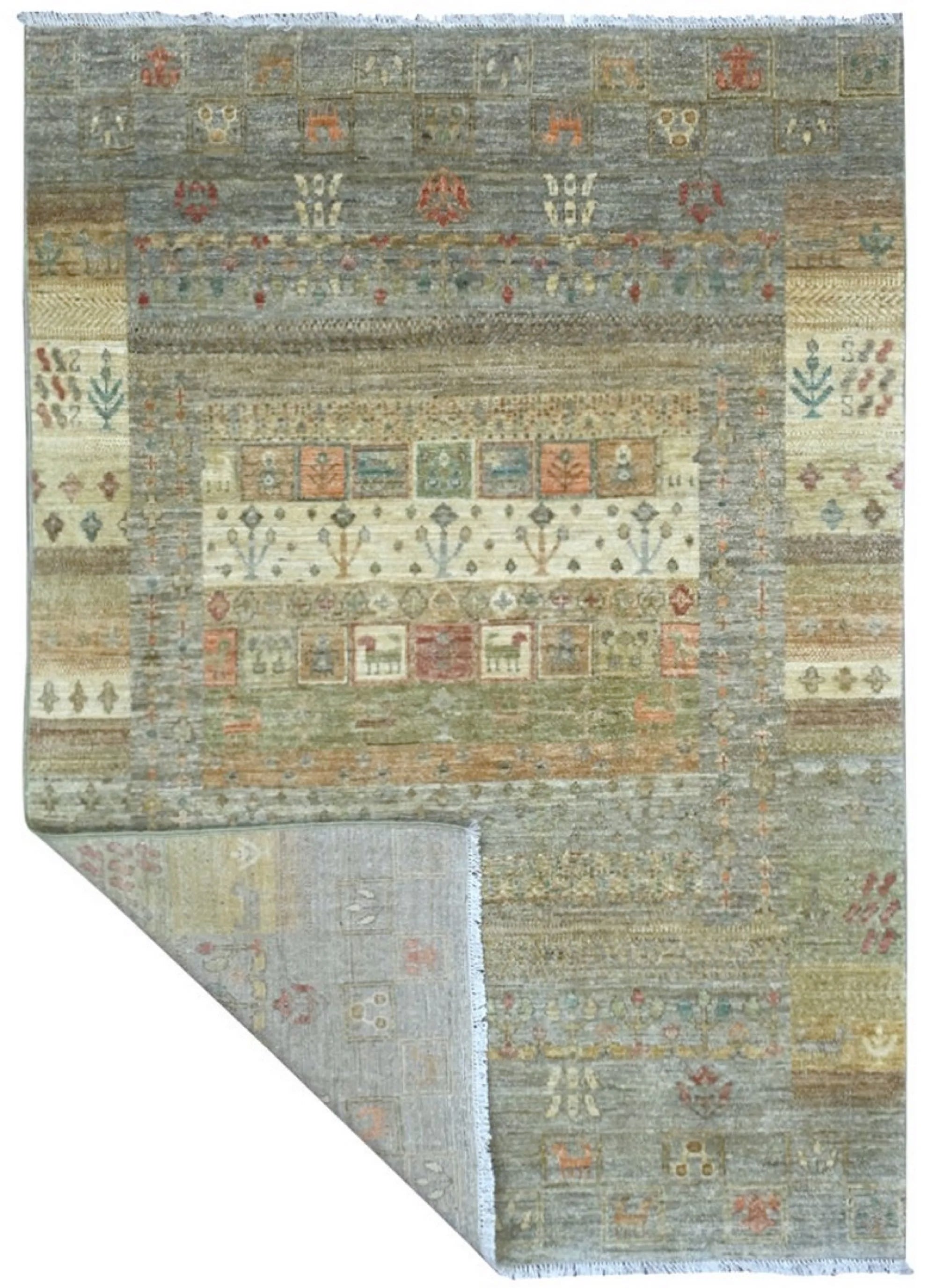 Khorjin rugs from Afghanistan are a type of traditional te x tile often used as bags or saddlebags by nomadic tribes in the region. These rugs are known for their practical uses and beautiful patterns. Originally created to be used as pack bags by nomadic people, Khorjin rugs are often designed with functionality in mind. The patterns on Khorjin rugs are often geometric and colorful, with symbolic motifs representing the tribe's culture and traditions. Common motifs include diamonds, rhombuses, and other geometric shapes, often in a rich color palette. Khorjin rugs are typically woven from wool, which makes them durable and tough enough for nomadic life. The colors in Khorjin rugs are usually natural, produced from plant dyes, giving them a warm and earthy color palette. Typical colors include red, blue, brown, and beige, but there may also be touches of green and yellow. Khorjin rugs are not just practical, but they are also artworks that tell stories about the tribe's life and culture. Each rug is unique and reflects the weaver's skill and creativity. High-quality materials and craftsmanship make Khorjin rugs long-lasting and valuable investments for customers.