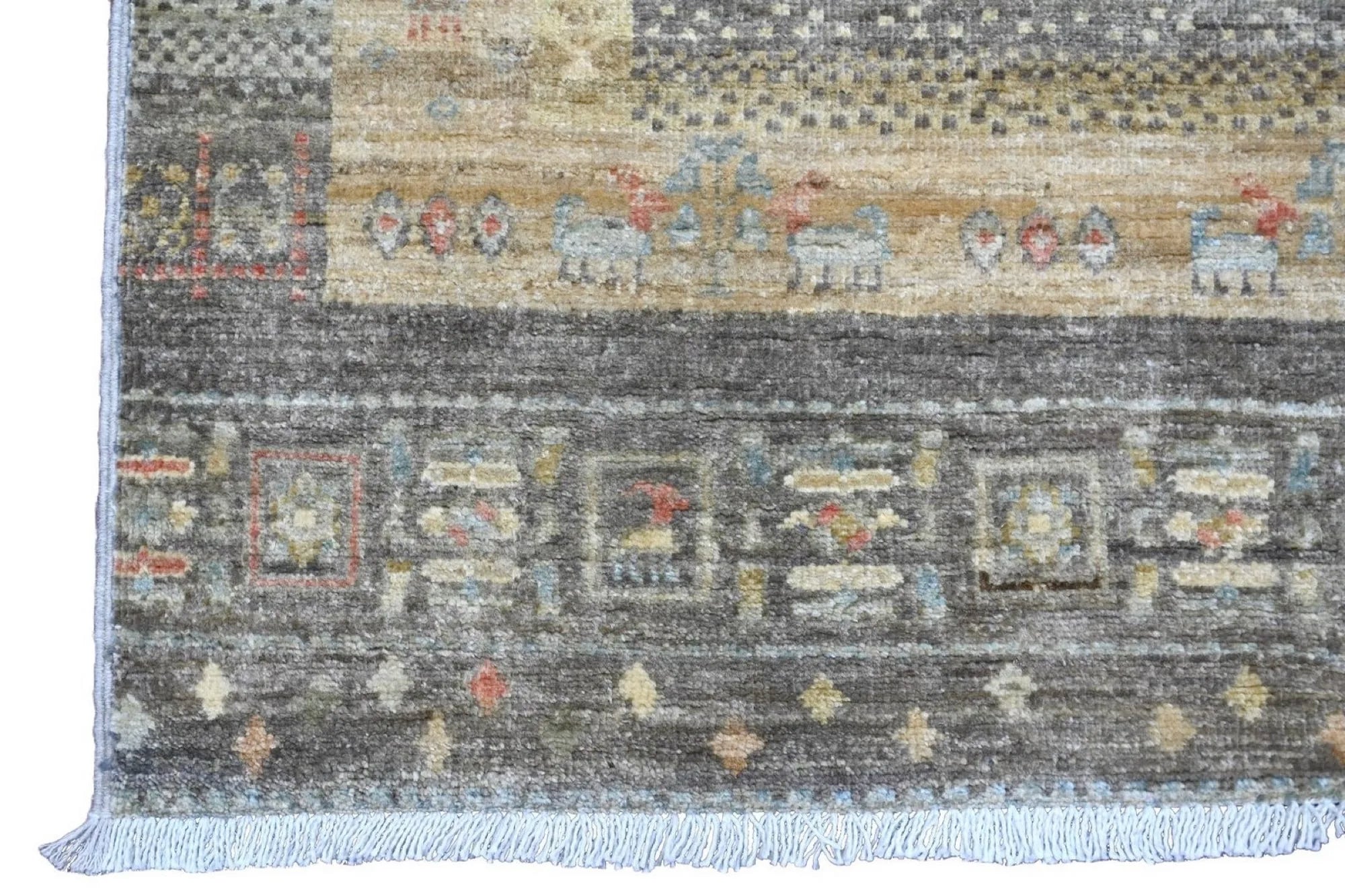 Khorjin rugs from Afghanistan are a type of traditional te x tile often used as bags or saddlebags by nomadic tribes in the region. These rugs are known for their practical uses and beautiful patterns. Originally created to be used as pack bags by nomadic people, Khorjin rugs are often designed with functionality in mind. The patterns on Khorjin rugs are often geometric and colorful, with symbolic motifs representing the tribe's culture and traditions. Common motifs include diamonds, rhombuses, and other geometric shapes, often in a rich color palette. Khorjin rugs are typically woven from wool, which makes them durable and tough enough for nomadic life. The colors in Khorjin rugs are usually natural, produced from plant dyes, giving them a warm and earthy color palette. Typical colors include red, blue, brown, and beige, but there may also be touches of green and yellow. Khorjin rugs are not just practical, but they are also artworks that tell stories about the tribe's life and culture. Each rug is unique and reflects the weaver's skill and creativity. High-quality materials and craftsmanship make Khorjin rugs long-lasting and valuable investments for customers.