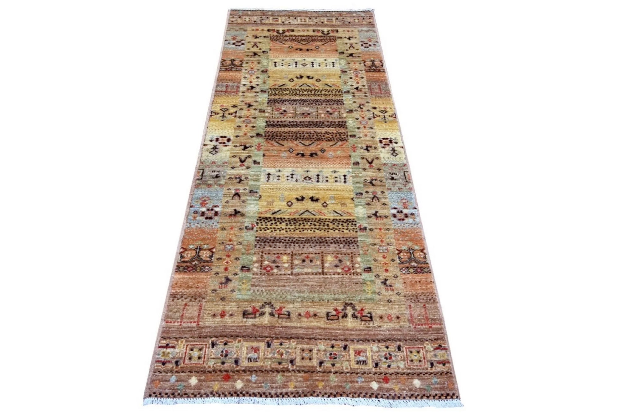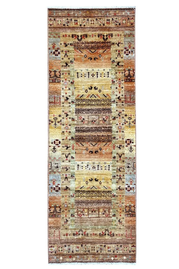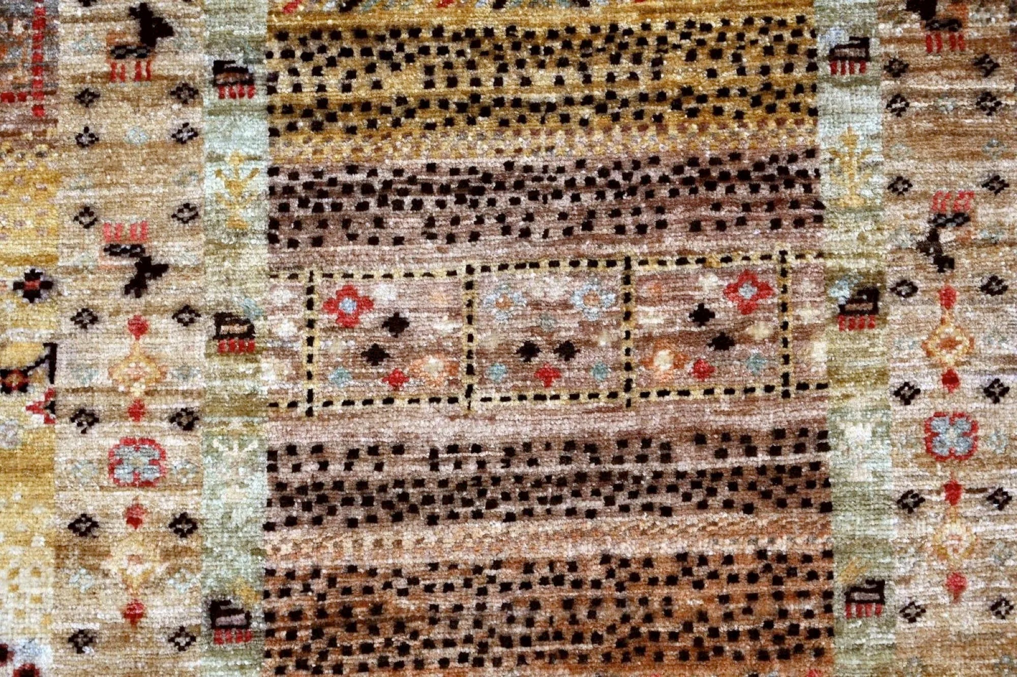 Khorjin rugs from Afghanistan are a type of traditional te x tile often used as bags or saddlebags by nomadic tribes in the region. These rugs are known for their practical uses and beautiful patterns. Originally created to be used as pack bags by nomadic people, Khorjin rugs are often designed with functionality in mind. The patterns on Khorjin rugs are often geometric and colorful, with symbolic motifs representing the tribe's culture and traditions. Common motifs include diamonds, rhombuses, and other geometric shapes, often in a rich color palette. Khorjin rugs are typically woven from wool, which makes them durable and tough enough for nomadic life. The colors in Khorjin rugs are usually natural, produced from plant dyes, giving them a warm and earthy color palette. Typical colors include red, blue, brown, and beige, but there may also be touches of green and yellow. Khorjin rugs are not just practical, but they are also artworks that tell stories about the tribe's life and culture. Each rug is unique and reflects the weaver's skill and creativity. High-quality materials and craftsmanship make Khorjin rugs long-lasting and valuable investments for customers.