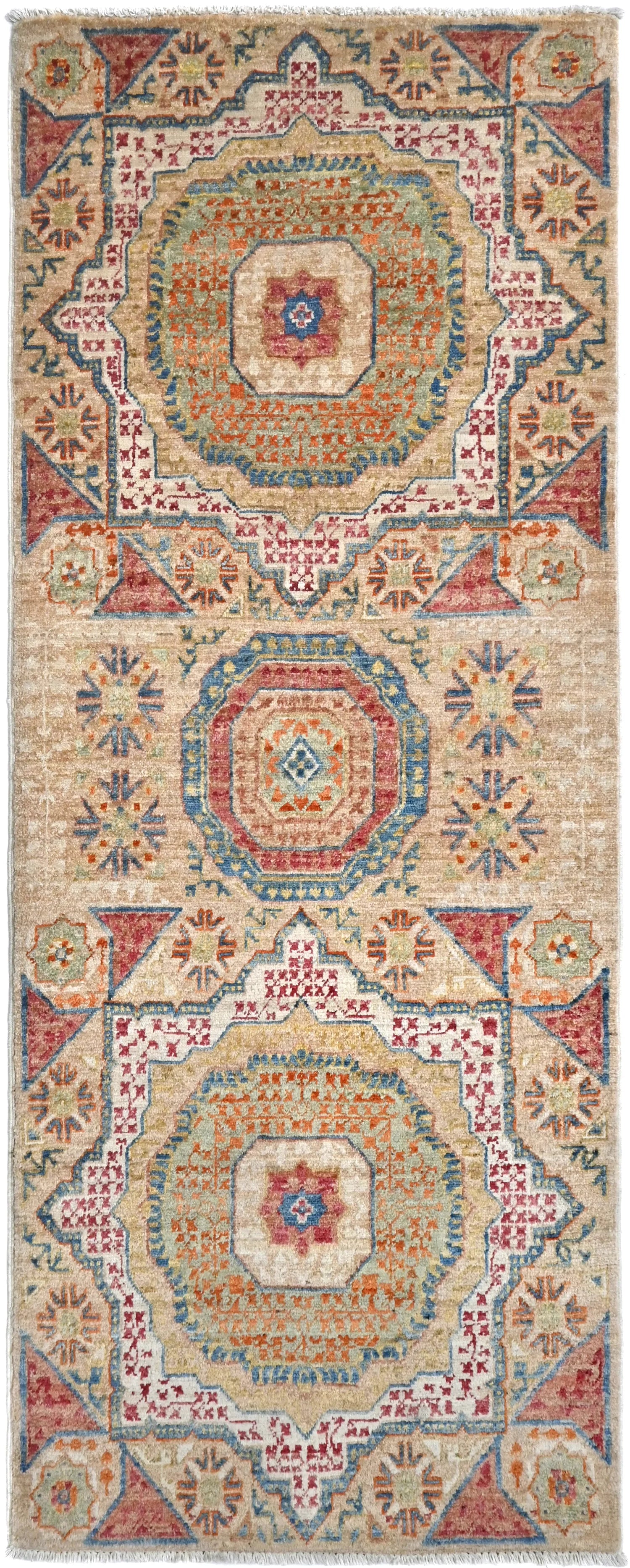 Let yourself be inspired by this rug, which is not only a decoration for your home but also a celebration of tradition and skilled artistry. Discover the timeless elegance of our Mamlok rug, a masterpiece that blends traditional craftsmanship with a modern touch. Hand-knotted with e x ceptional care in Afghanistan and Pakistan, it represents the pinnacle of quality in genuine rugs. Intricate designs: Each Mamlok rug is adorned with detailed, vibrant patterns that captivate the eye and create a unique ambiance. Bright colors: Natural plant-based dyes give the rug a radiant and enduring sheen. Dense knots: Double knots ensure outstanding durability and a lu x urious feel. Premium materials: Crafted from the finest high-quality wool, offering a soft yet durable finish. Fits any style: Whether your home has a modern or classic interior, the Mamlok rug is the perfect accent to elevate the room.