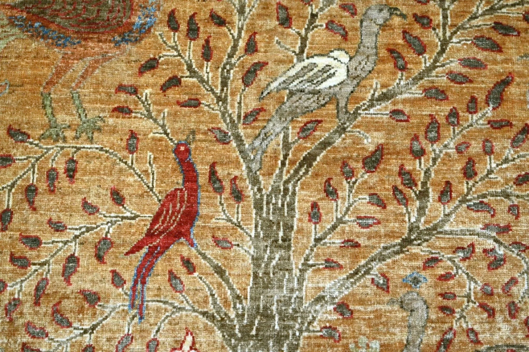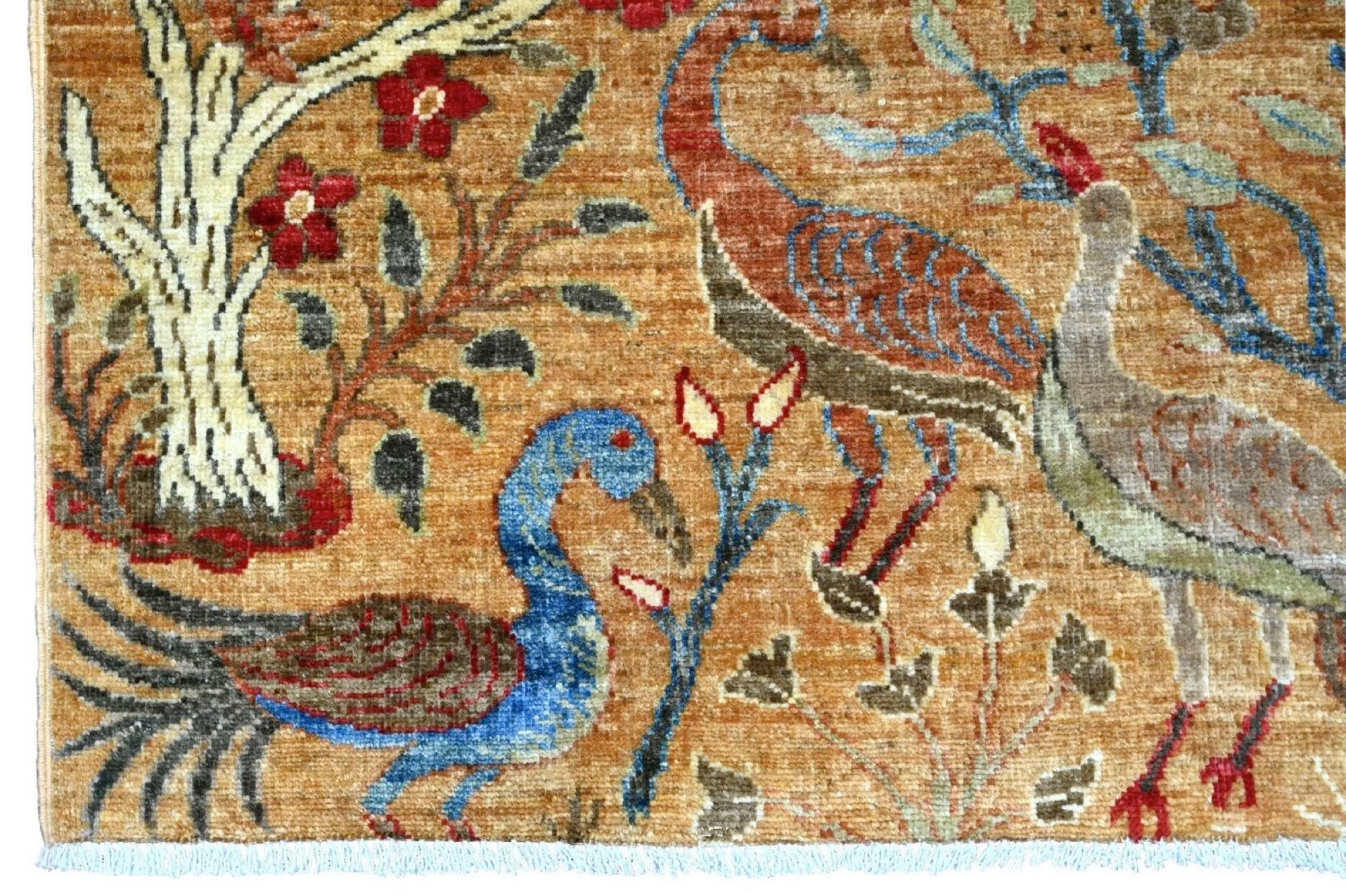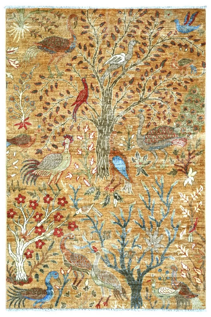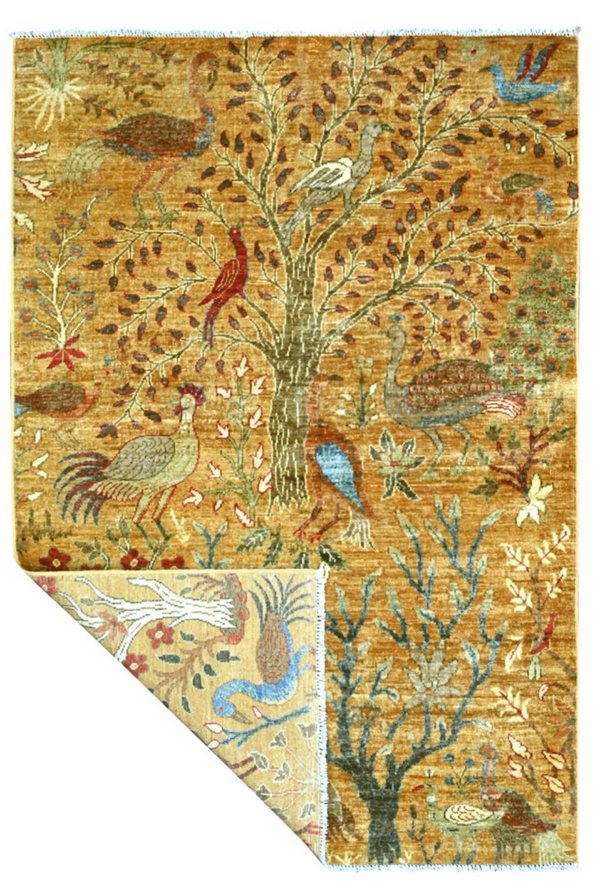 Nirvana is an extraordinary hand-knotted rug that blends traditional oriental weaving heritage with the poetic beauty of nature. Inspired by the classical Khorjin style, this masterpiece introduces a fresh interpretation where birds, foliage, and natural motifs create a harmonious, lively pattern across the entire rug. Every detail is crafted with artistic precision, giving the piece depth, rhythm, and movement. Woven from 100% hand-spun wool and dyed exclusively with natural vegetable dyes, Nirvana offers a rich, vibrant color palette that feels both joyful and timeless. The natural sheen of the wool enhances the colors beautifully under different lighting conditions, turning the rug into a true statement piece. This rug is not just décor -it is a textile artwork that brings warmth, character, and a sense of balance into any home. For those seeking a unique, soulful, and expressive rug with deep craftsmanship and artistic flair, Nirvana is the perfect choice.