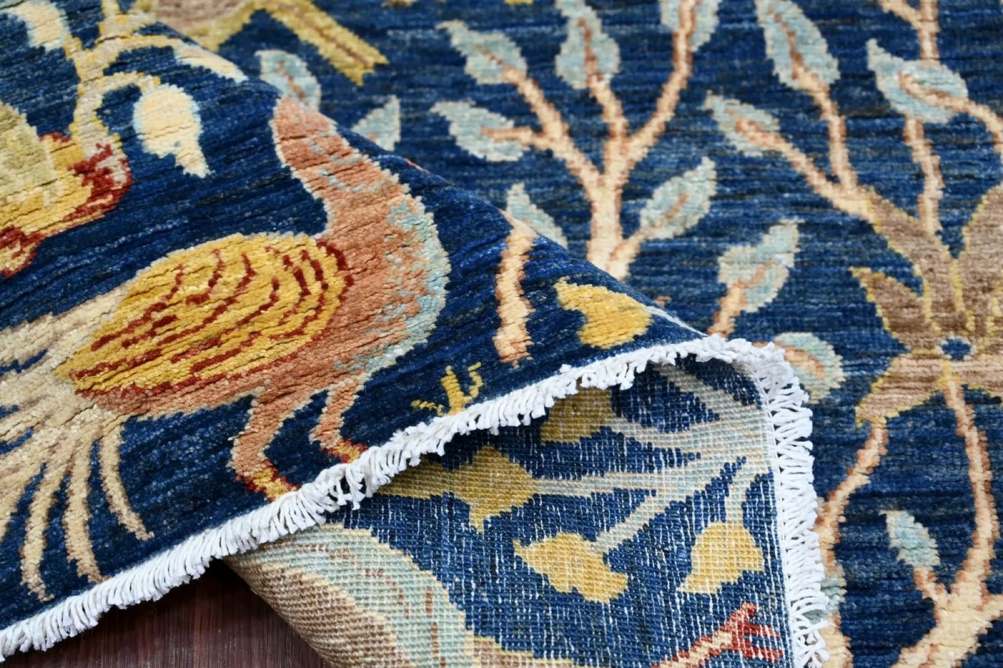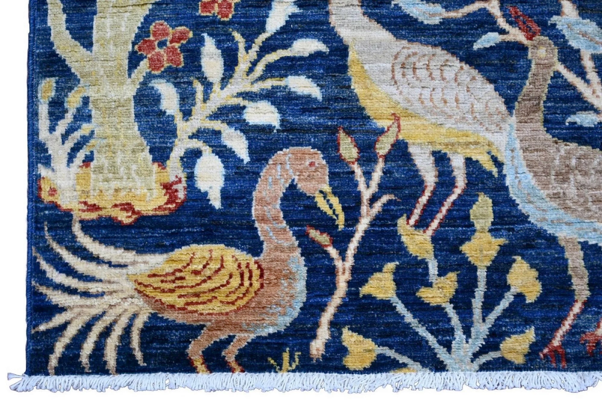 Nirvana is an extraordinary hand-knotted rug that blends traditional oriental weaving heritage with the poetic beauty of nature. Inspired by the classical Khorjin style, this masterpiece introduces a fresh interpretation where birds, foliage, and natural motifs create a harmonious, lively pattern across the entire rug. Every detail is crafted with artistic precision, giving the piece depth, rhythm, and movement. Woven from 100% hand-spun wool and dyed exclusively with natural vegetable dyes, Nirvana offers a rich, vibrant color palette that feels both joyful and timeless. The natural sheen of the wool enhances the colors beautifully under different lighting conditions, turning the rug into a true statement piece. This rug is not just décor -it is a textile artwork that brings warmth, character, and a sense of balance into any home. For those seeking a unique, soulful, and expressive rug with deep craftsmanship and artistic flair, Nirvana is the perfect choice.