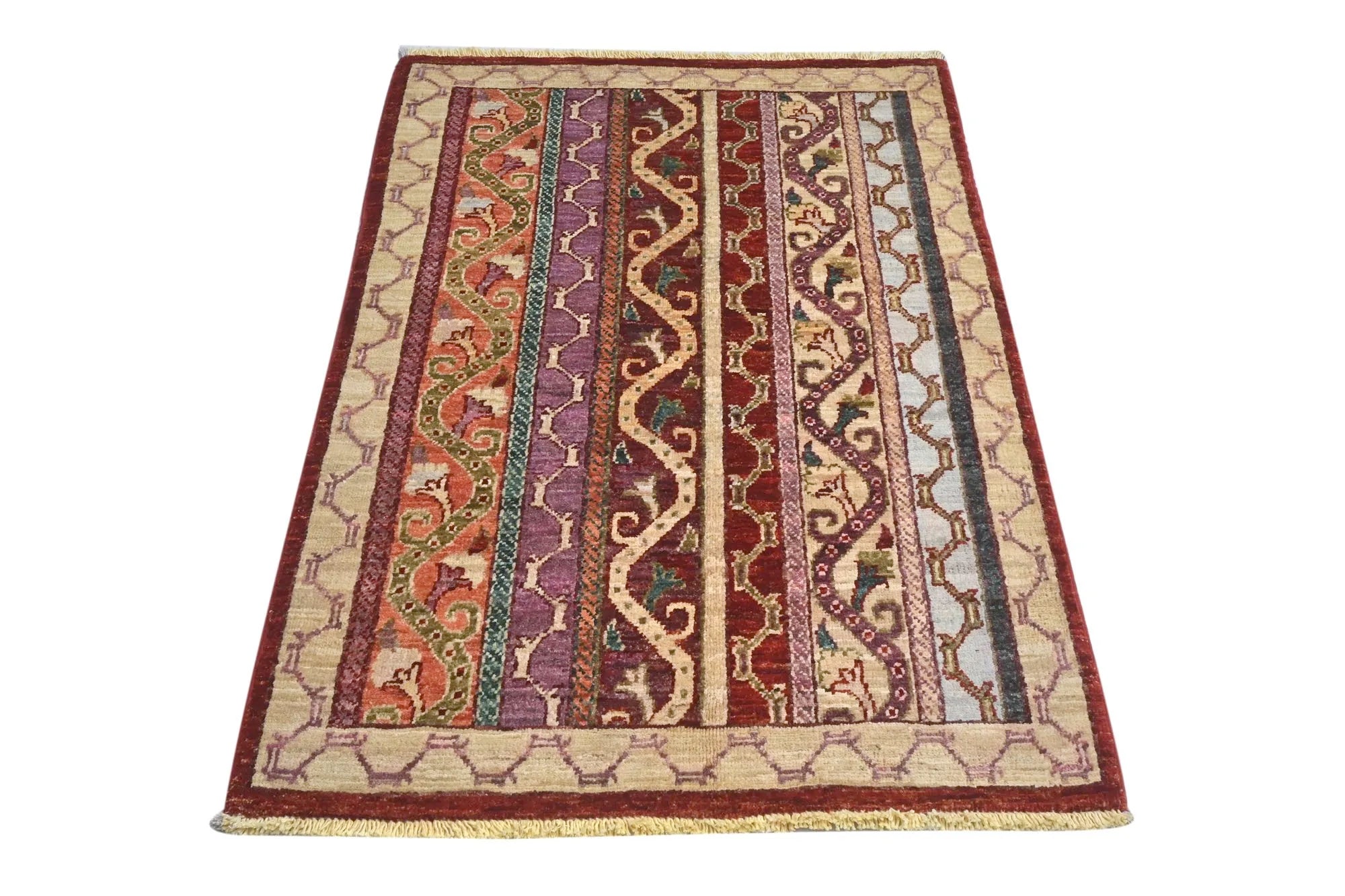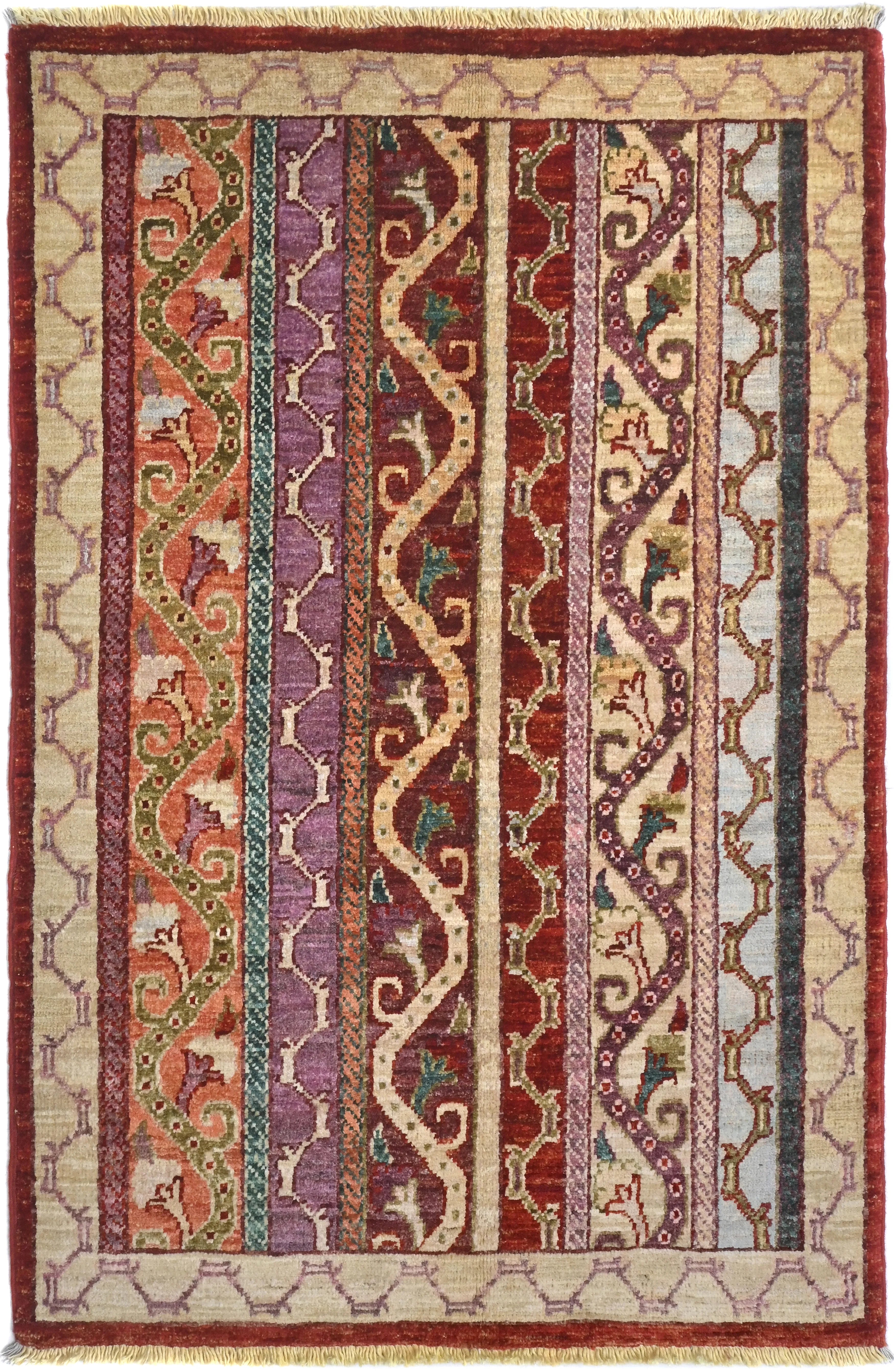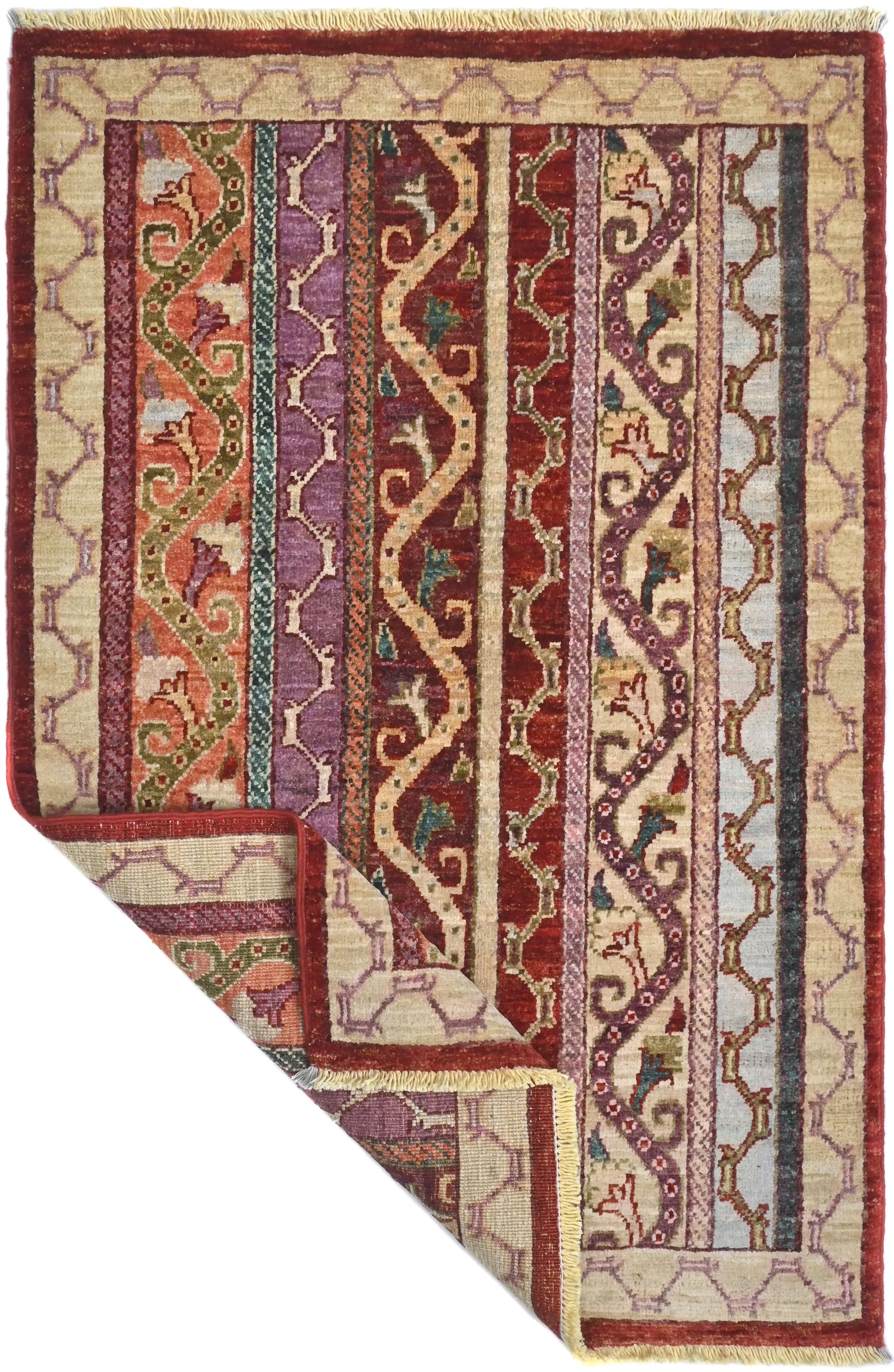 Shal rugs from Afghanistan are a type of traditional te x tile often used as bags or saddlebags by nomadic tribes in the region. These rugs are known for their practical uses and beautiful designs. Originally created for use as pack bags by nomadic people, Shal rugs are often designed with functionality in mind. The patterns on Shal rugs are often colorful, with symbolic motifs representing the tribe's culture and traditions. Typically knotted from wool, Shal rugs are durable and sturdy for nomadic life. The colors in Shal rugs are usually natural, made from plant dyes, giving them a warm and earthy color palette. Typical colors include red, blue, brown, and beige, but there may also be hints of green and yellow. Shal rugs are not only practical but also works of art that tell stories about the tribe's life and culture. Each rug is unique and reflects the weaver's skill and creativity. High-quality materials and craftsmanship make Shal rugs long-lasting and valuable investments for customers.
