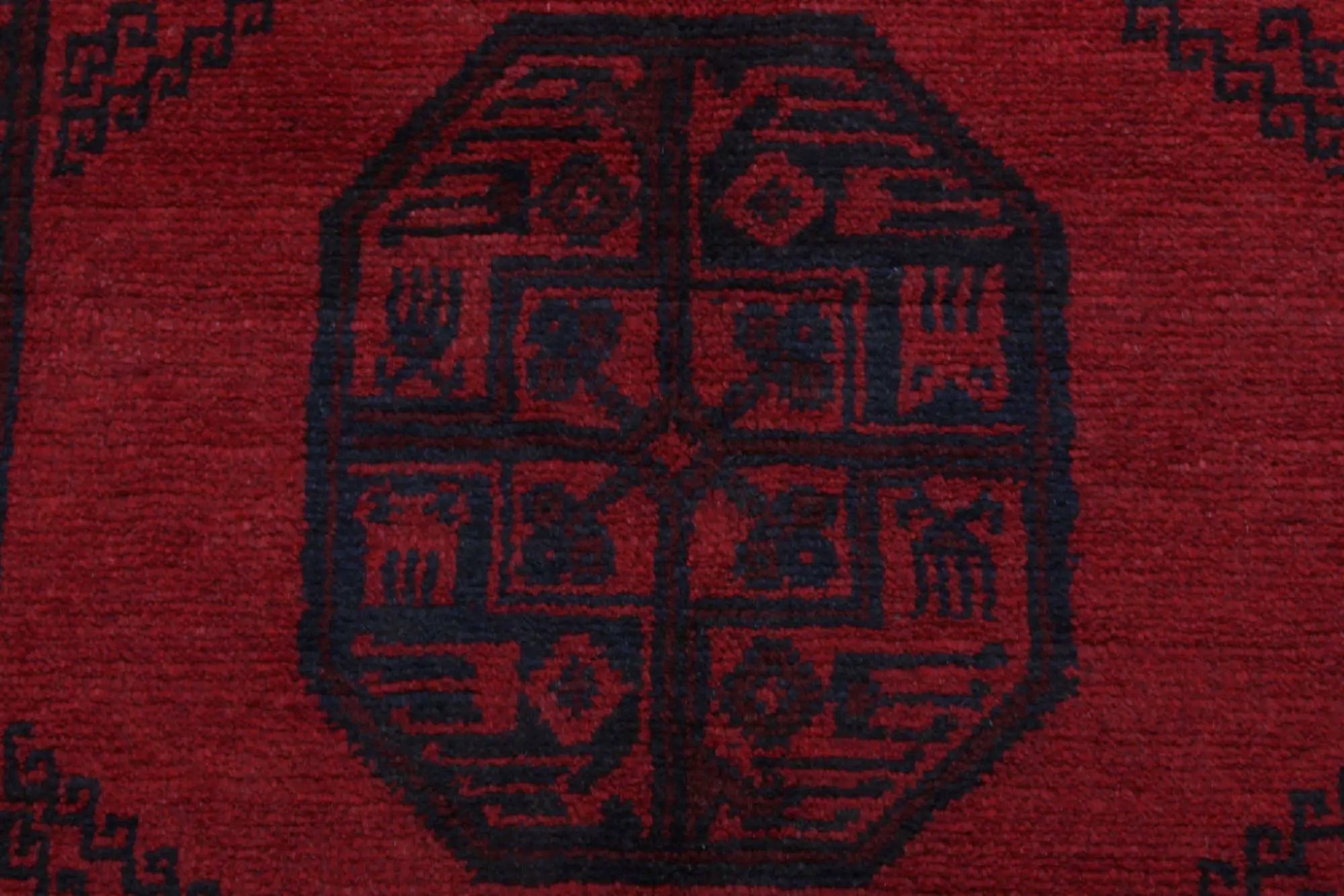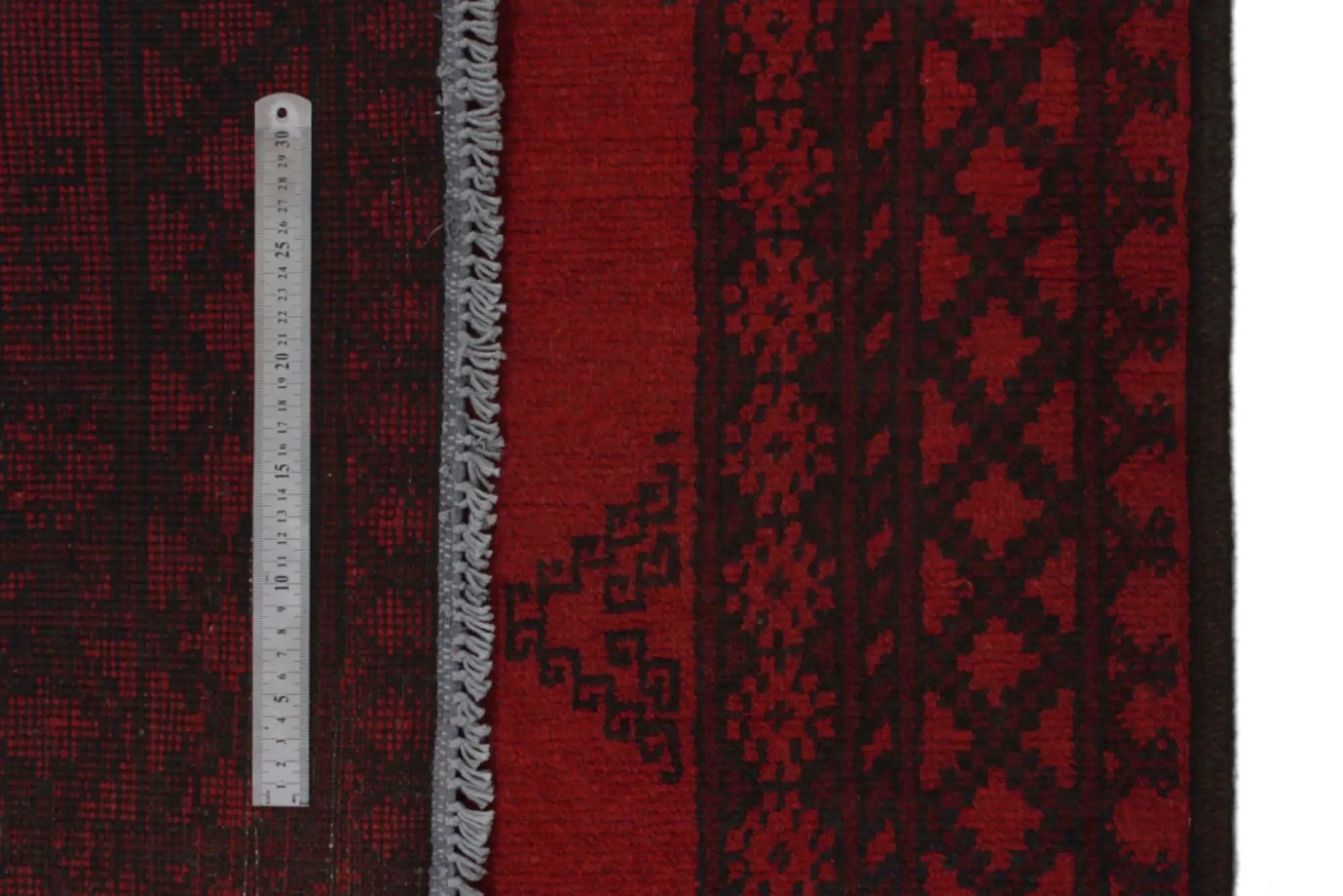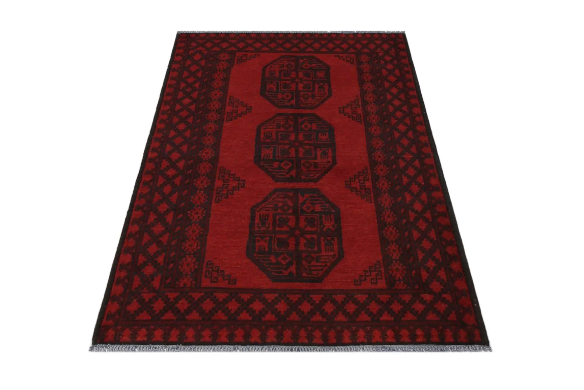 Discover this exquisite hand-knotted Akche rug from Afghanistan, crafted in rich, deep red and black tones that bring warmth and elegance to any interior. Made from 100% pure wool, including the fringes, it contains no synthetic materials, giving it a naturally soft, durable, and authentic feel. The traditional “elephant foot” motif, characteristic of Akche rugs, adds a timeless and culturally rich expression. A perfect choice for anyone seeking a rug that unites craftsmanship, character, and classic oriental beauty.