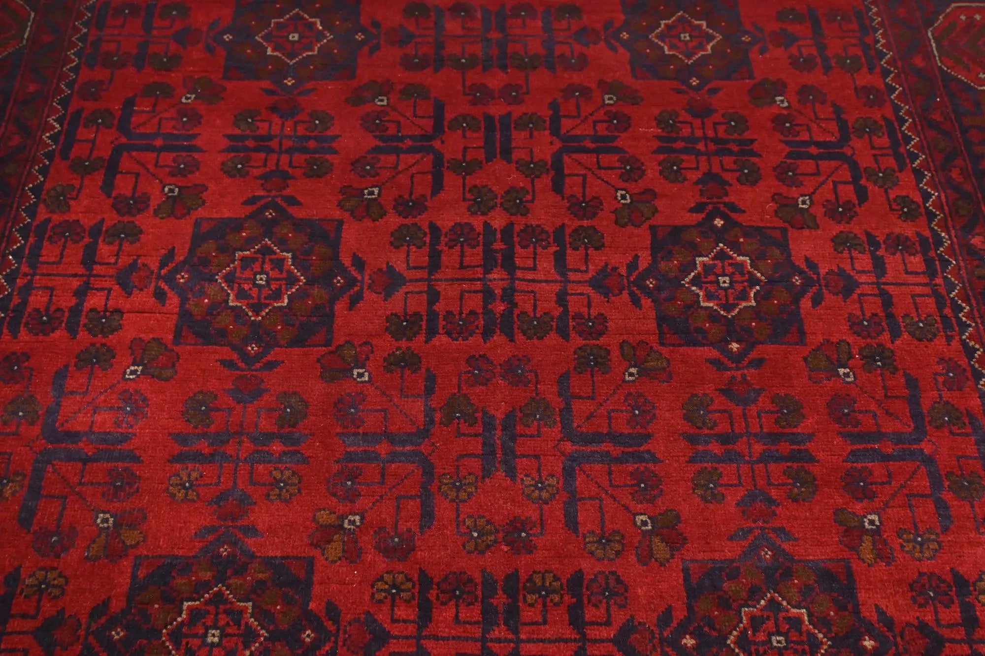 Traditional Afghan rugs are known for their rich history and skilled craftsmanship. These rugs have a long tradition that spans centuries and form an integral part of Afghanistan's cultural heritage. Traditional Afghan rugs are often characterized by geometric patterns and bold colors, and are usually handmade by local artists using traditional methods and materials. The wool used is typically of high quality, which gives the rugs a unique feel and durability. The patterns on these rugs can vary depending on the region and ethnic group that produces them. For e x ample, you might find rugs from different parts of Afghanistan, such as Herat, Kabul, Mazar-i-Sharif, and each region may have its own distinctive styles and patterns. Although traditional Afghan rugs are often woven to be used as floor coverings, they have also become popular as decorative elements in homes and offices around the world thanks to their beauty and distinctive appearance.