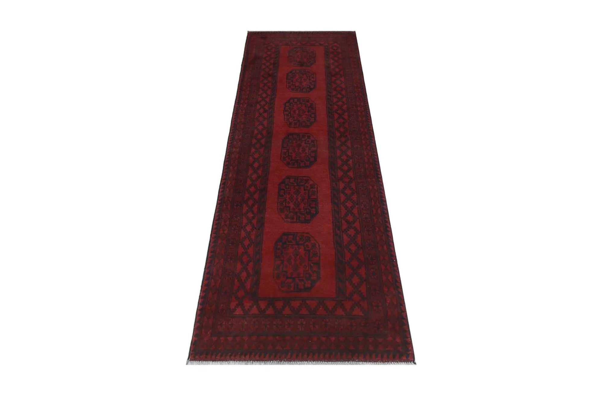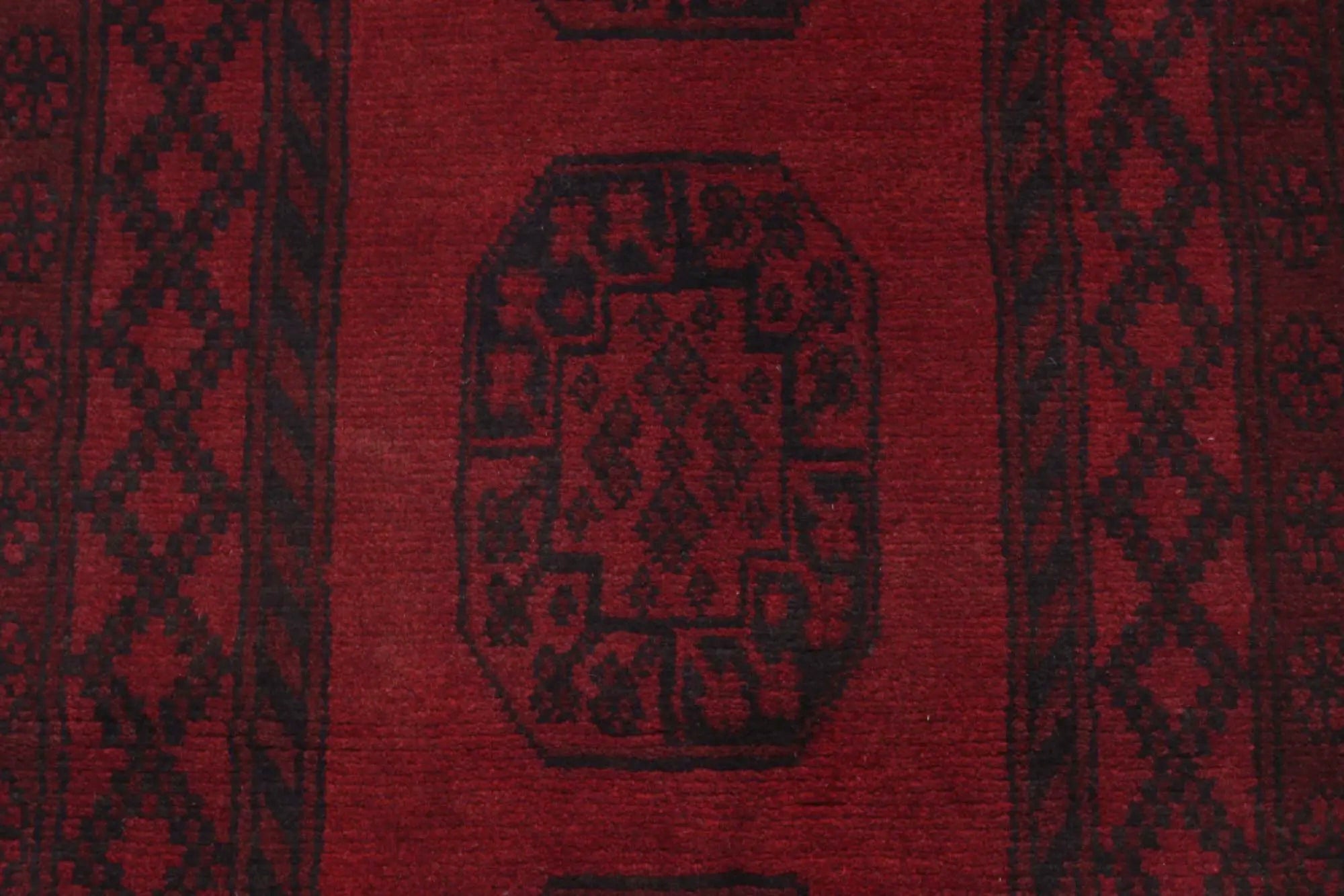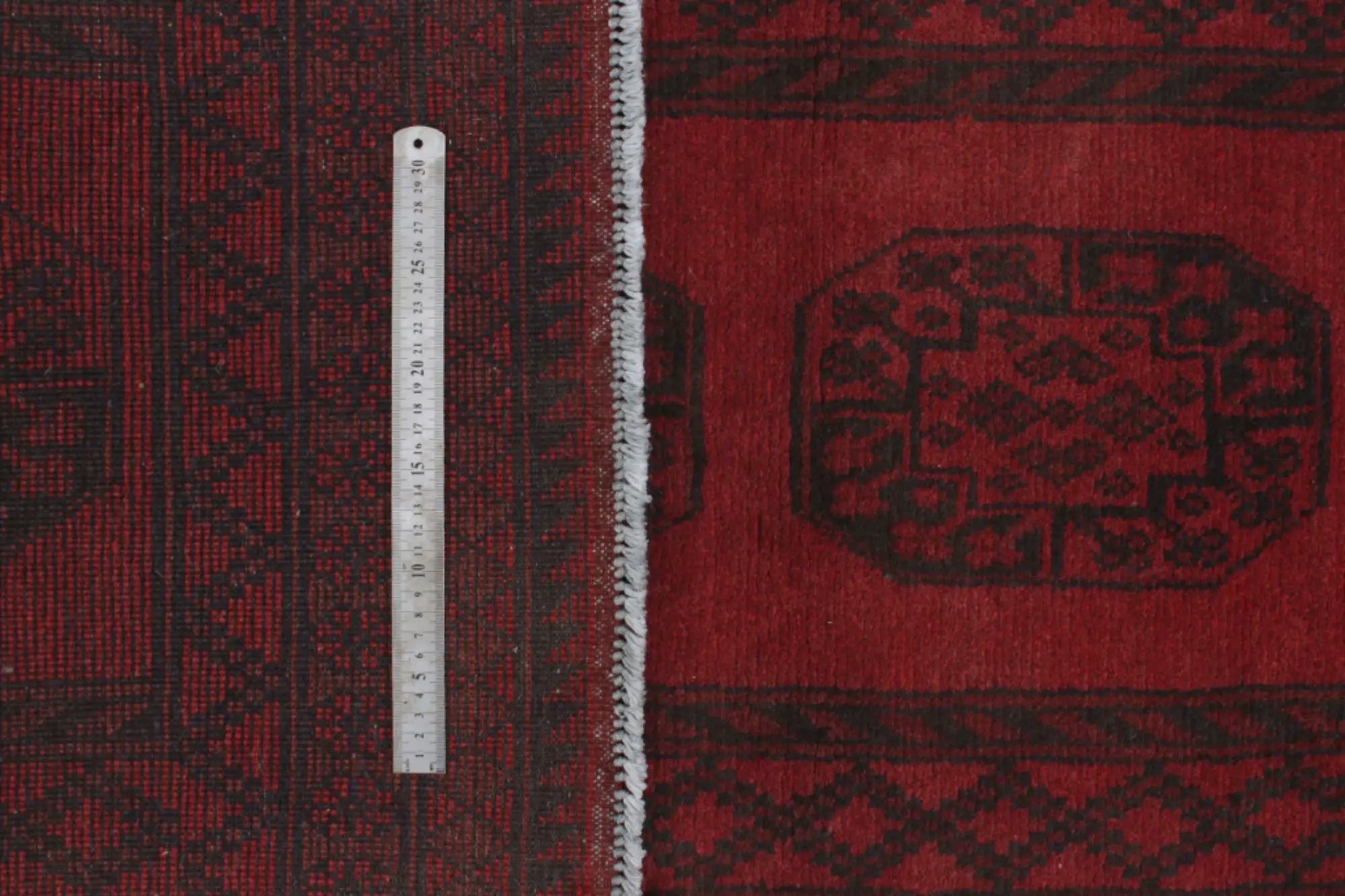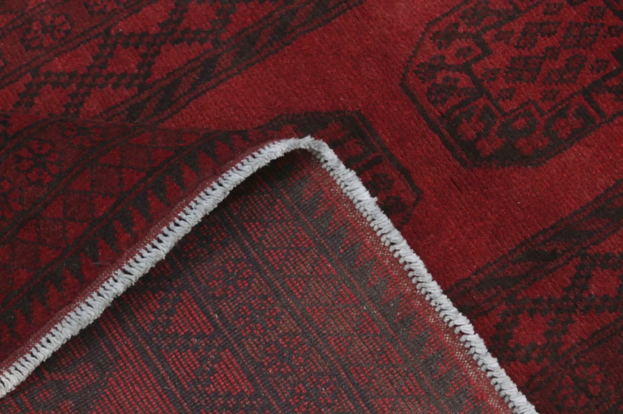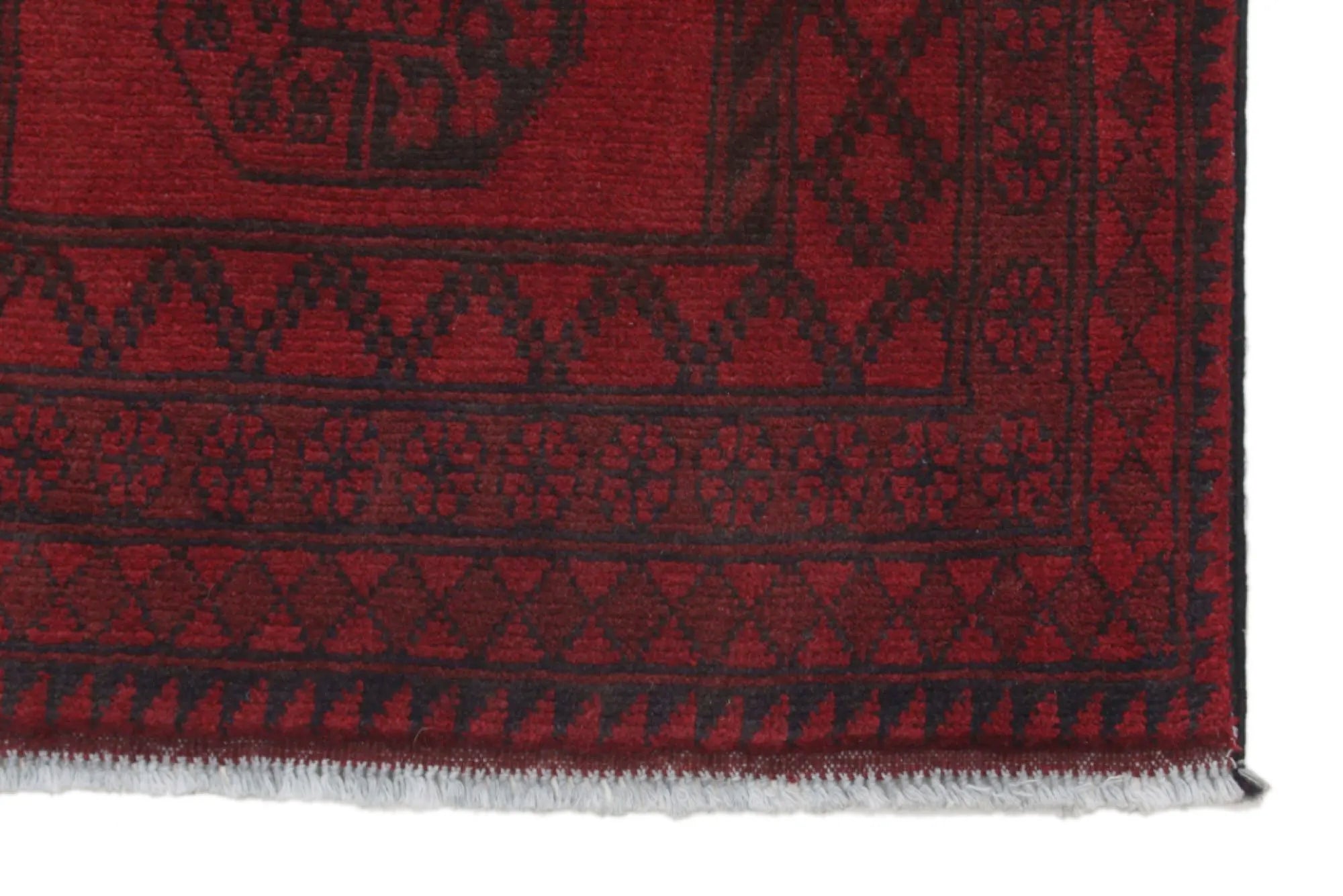 Discover this exquisite hand-knotted Akche rug from Afghanistan, crafted in rich, deep red and black tones that bring warmth and elegance to any interior. Made from 100% pure wool, including the fringes, it contains no synthetic materials, giving it a naturally soft, durable, and authentic feel. The traditional “elephant foot” motif, characteristic of Akche rugs, adds a timeless and culturally rich expression. A perfect choice for anyone seeking a rug that unites craftsmanship, character, and classic oriental beauty.