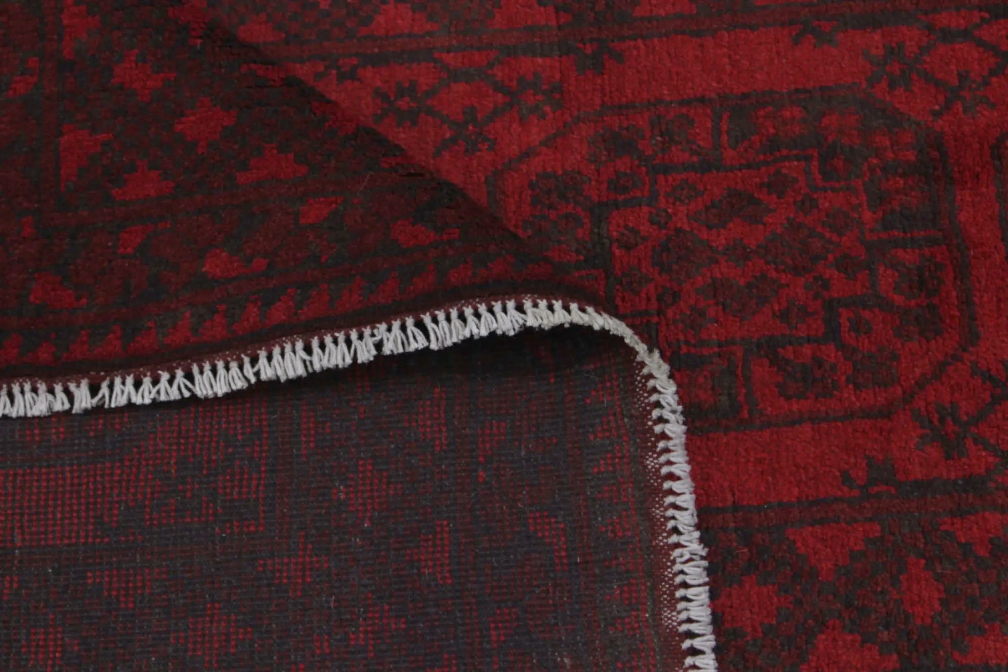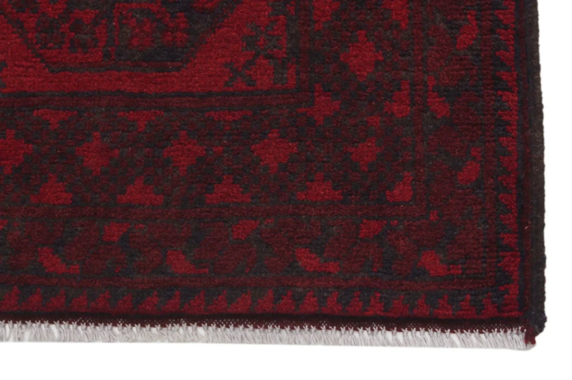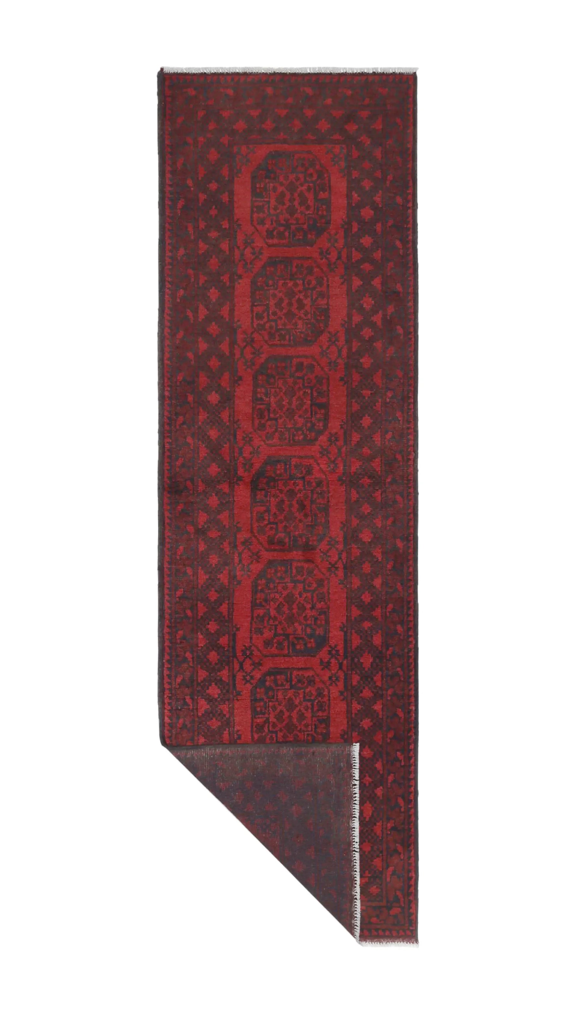 Discover this exquisite hand-knotted Akche rug from Afghanistan, crafted in rich, deep red and black tones that bring warmth and elegance to any interior. Made from 100% pure wool, including the fringes, it contains no synthetic materials, giving it a naturally soft, durable, and authentic feel. The traditional “elephant foot” motif, characteristic of Akche rugs, adds a timeless and culturally rich expression. A perfect choice for anyone seeking a rug that unites craftsmanship, character, and classic oriental beauty.