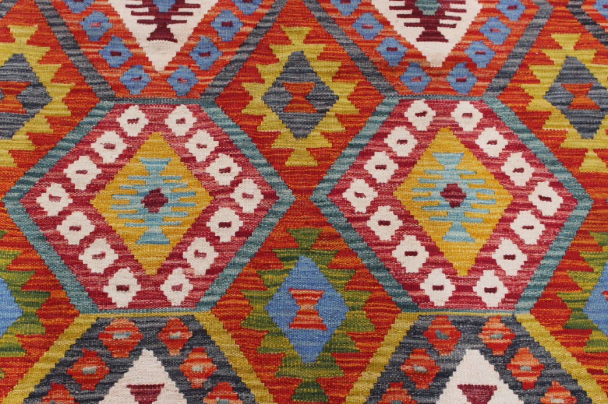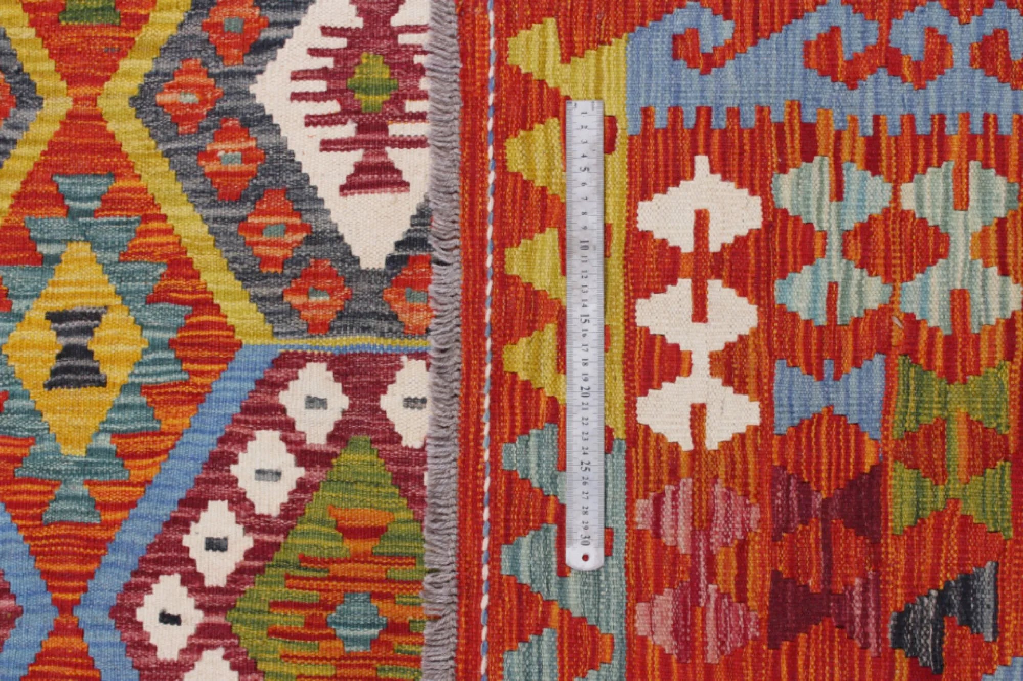 A Masterpiece of Afghan Craftsmanship with Caucasian Inspiration. Kelim Chobi rugs are a brilliant e x ample of traditional Afghan craftsmanship, combining both quality and aesthetic finesse. These rugs are uniquely handwoven in Afghanistan and carry a rich history of craftsmanship, where traditional techniques have been passed down through generations. What makes Kelim Chobi rugs particularly remarkable is their distinct design, heavily influenced by Caucasian patterns. The geometric shapes and symmetrical patterns, typical of Caucasian rugs, give Kelim Chobi rugs their unique and timeless character. The colors used in Kelim Chobi rugs are often subdued and natural, providing them with an elegant and sophisticated look. These colors are derived from natural dyes, which not only provide a durable and authentic color palette but also reflect a deep respect for nature and traditional methods. Each Kelim Chobi rug is handwoven with the utmost care and precision, ensuring high quality and durability. The rugs are flat-woven, giving them a smooth surface and making them both practical and easy to maintain. Thanks to their combination of Afghan craftsmanship and Caucasian design, Kelim Chobi rugs are a popular choice for those looking for a beautiful and timeless decorative element that can enhance any room. These rugs are not only practical floor coverings but also artworks that tell a story of tradition and culture. If you are looking for a rug that combines traditional craftsmanship with stylish design, Kelim Chobi rugs are an e x cellent choice. Their timeless beauty and durable quality make them a perfect investment for your home.