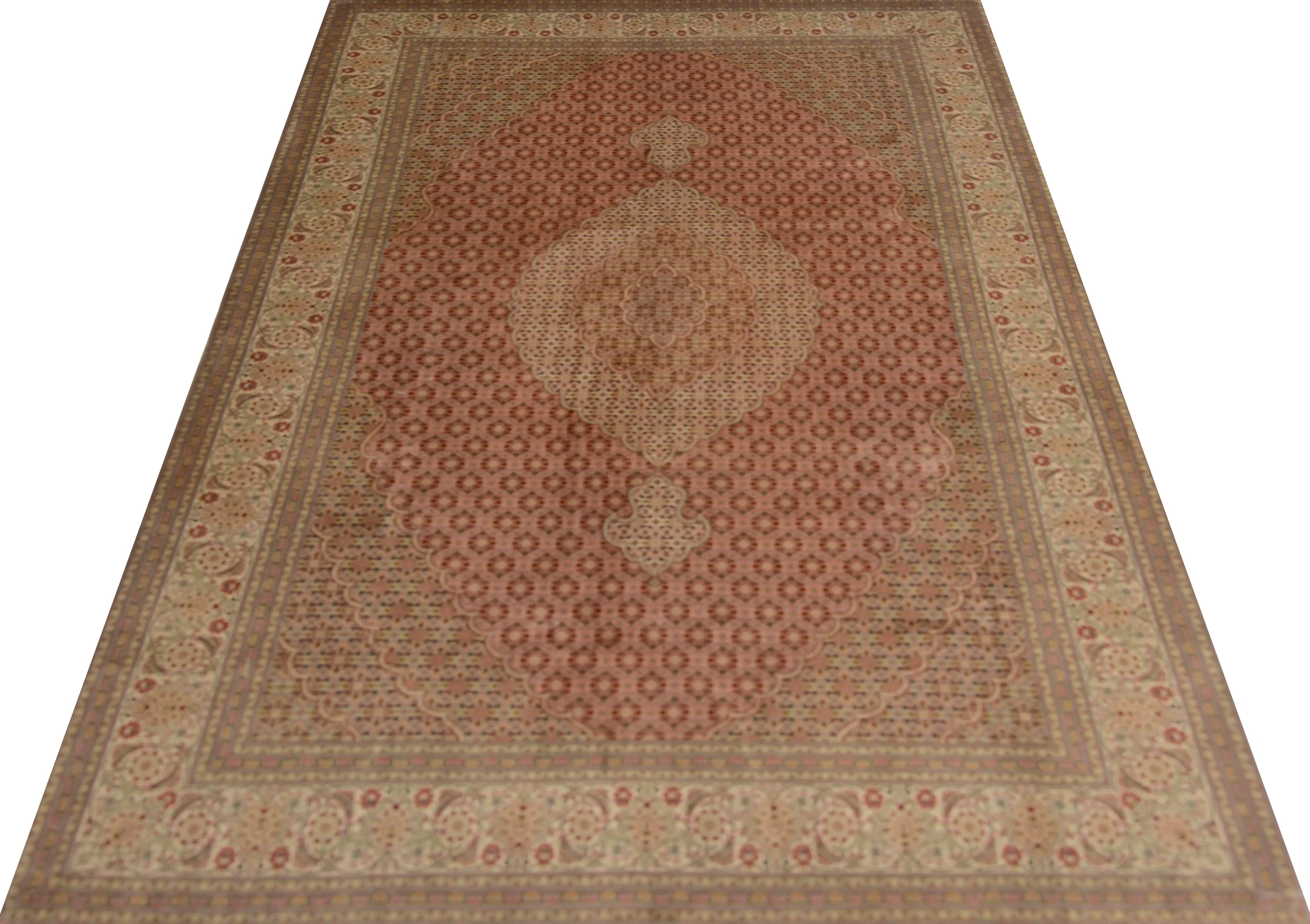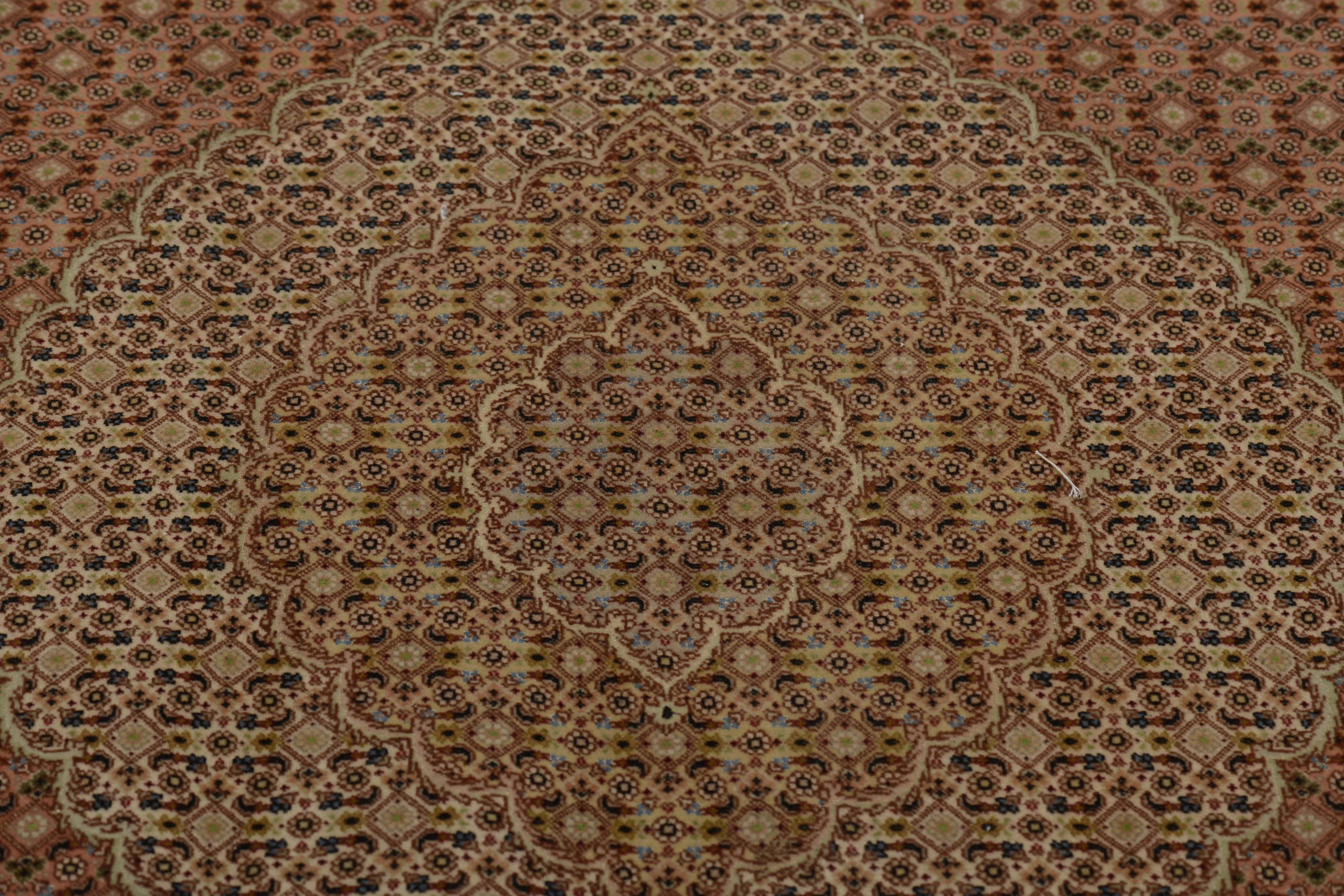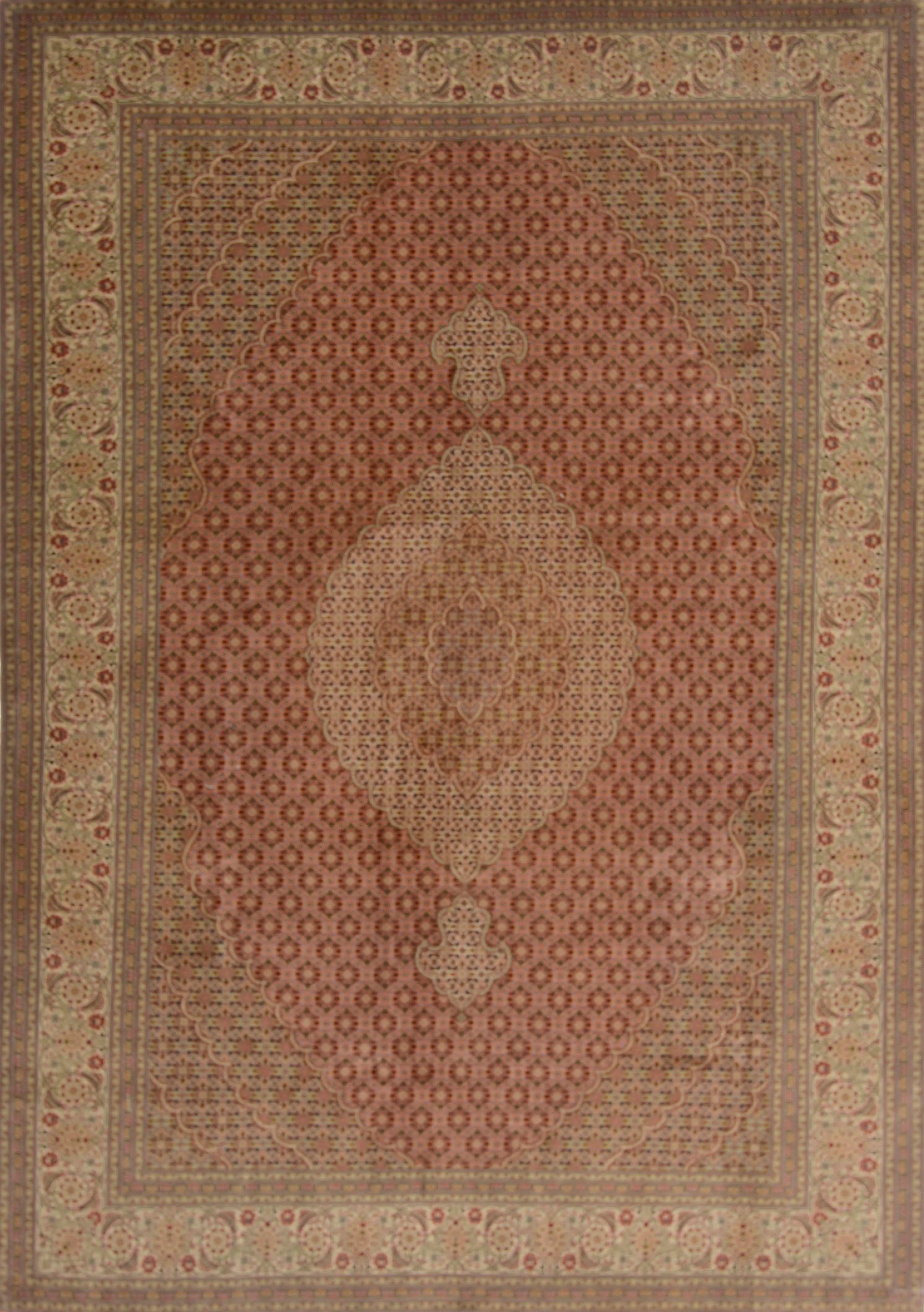 Tabriz rugs are a well-known type of hand-knotted rugs produced in the city of Tabriz, located in the northwest of Iran, in the Azarbaijan province of Persia. These rugs have a long tradition of craftsmanship and are considered some of the finest and most sought-after Persian rugs on the market. Typically made from the finest wool, Tabriz rugs provide a soft and durable surface. Sometimes, they may also incorporate silk threads, particularly in the details of the pattern or to add extra luster to the rug. The production of Tabriz rugs involves a meticulous hand-knotting technique that has been passed down from generation to generation. This traditional craft is crucial for creating the rugs' detailed patterns and high quality. Typical patterns on Tabriz rugs can vary but often include medallions, flowers, arabesques, and geometric figures. The patterns are usually intricate and symmetrical, which lends the rugs an aesthetically pleasing character. The color palette in Tabriz rugs is rich and may include traditional colors such as red, blue, green, beige, and other earthy tones. Known for their elegance, fine craftsmanship, and classic oriental style, Tabriz rugs' versatility makes them suitable for both traditional and modern interior styles. These rugs are usually medium to large in size and suitable for various applications, including living rooms, bedrooms, and formal rooms. Tabriz rugs are highly coveted in the international rug market for their high quality and authentic craftsmanship. They are considered valuable collectibles and investment opportunities due to their beauty and artistic value.